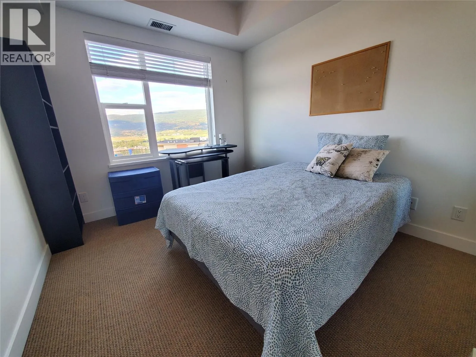 This TOP FLOOR CORNER SUITE offers panoramic views of UBCO and the surrounding area. This condo is offered as TURN KEY, floorplan includes two bedrooms, two full baths plus den. The den can easily be converted into a third bedroom, making this unit perfect for families or roommates. Located in Academy Hill, this condo is just steps away from the University, making it an ideal choice for students or faculty members. The ground level commercial space offers added convenience with a variety of amenities right at your doorstep. With over 950 sq. ft. of living space, this condo is spacious and well-appointed. The large primary bedroom features a full ensuite and walk-through closet, while the second bedroom offers privacy on the opposite side of the unit. The den, full-size washer & dryer, kitchen island, built-in desk nook, and generous living area make this condo both functional and comfortable. With the potential for good rental income as a three-bedroom, two-bath unit, this condo is a wise choice for investors looking to capitalize on the high demand for housing near the University. Conveniently located near public transit, the airport, and shopping centers, this condo offers easy access to everything you need. Donât miss out on the chance to experience the best of UBCO living in this beautiful corner suite. (id:27476)