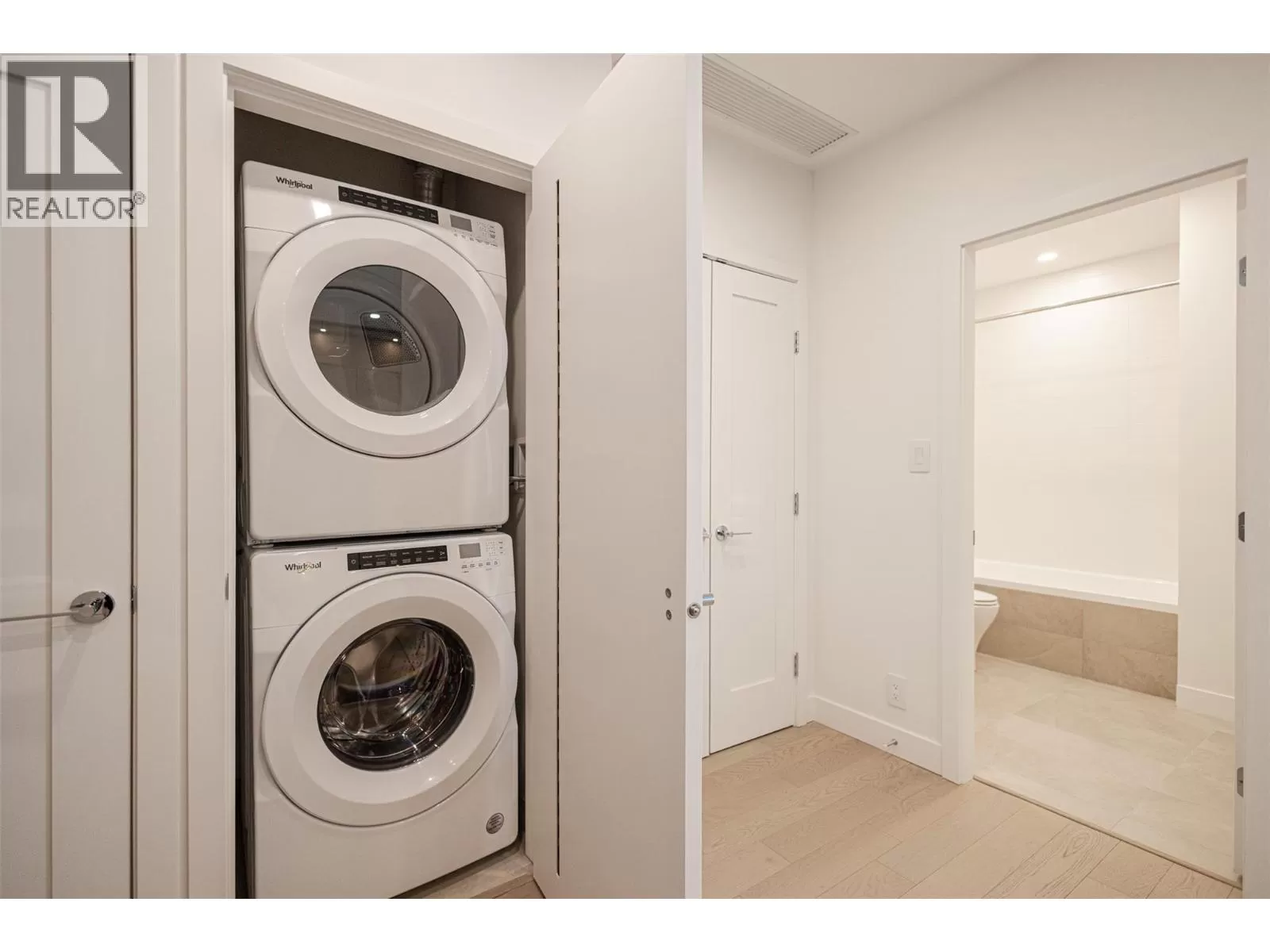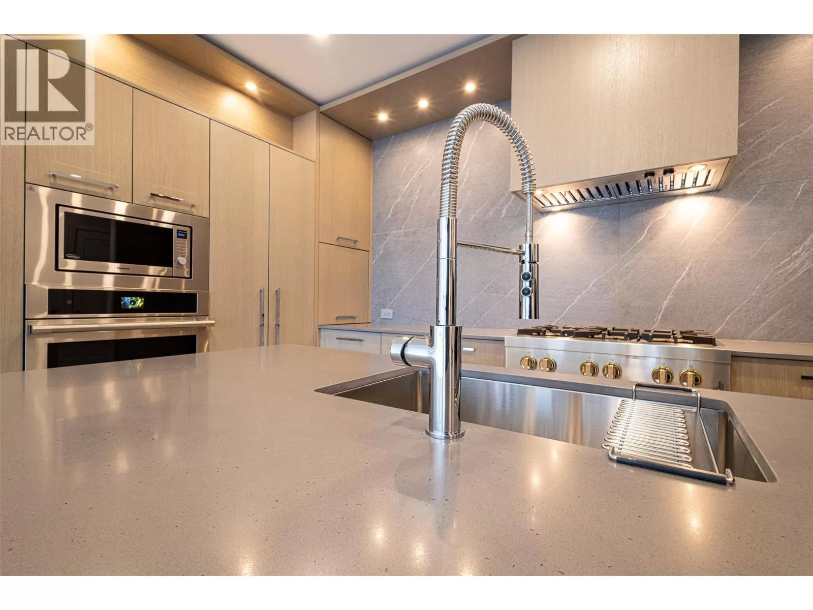 Beach front 2 bedroom 2 bathroom unit with all the amenities. This apartment with lake views and a resort like atmosphere is located in the new and upcoming area of Pandosy; everything you could need just steps away from your front door. The unit is well appointed with open living space and a chef's kitchen with top end appliances and custom cabinets with all the bells and whistles. The primary bedroom boasts an unbelievable ensuite with custom built in cabinets with room for all your belongings. This unit is one floor above the inground heated pool and hot tub area. The building boasts a private gym and amazing Cabana's to enjoy the Okanagan summers. One parking stall with EV charging station. Don't miss out on this Okanagan dream property. (id:27476)