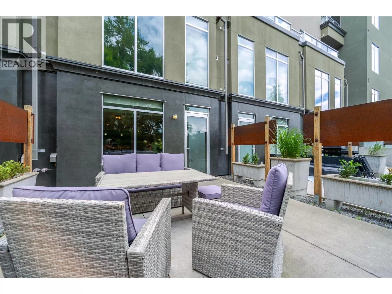 OPEN HOUSE SUNDAY NOVEMBER 2, 2025 2-4 PM Hosted By JENNIFER SCHWITZER, Flex Realty. 250-258-3967. Urban Living Meets Tranquil Luxury! Discover your serene oasis nestled in one of Kelowna's most sought after neighorhoods. This thoughtfully designed townhome blends sleek modern living with peaceful spa inspired main entrance. Enjoy the privacy of your own entrance and unwind on your patio perfect for coffee or quiet evenings or relax at the rooftop fire pit area with great views. This 1 bedroom, 2 bath is designed for function and flow. The open concept layout offers stylish finishes and space to live, work and relax. Take advantage of the resort style amenities: pool, sauna and fitness spaces designed to elevate your lifestyle. In addition you can conduct meetings in the formal boardroom. This low maintenance luxury lifestyle is perfect for everyone! Book your private viewing to see all that this property has to offer! (id:27476)