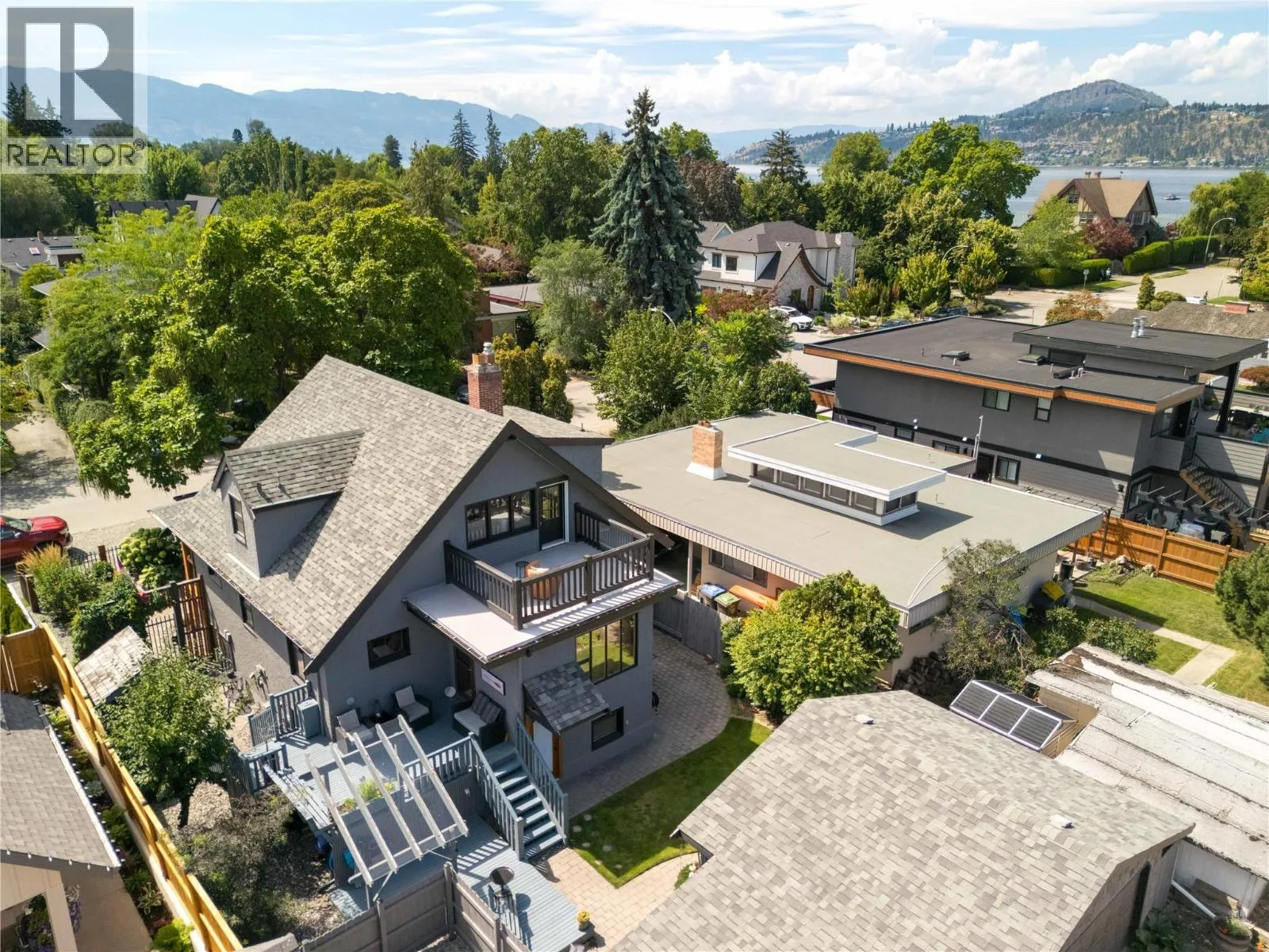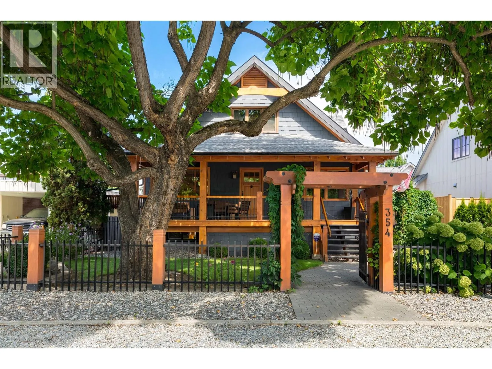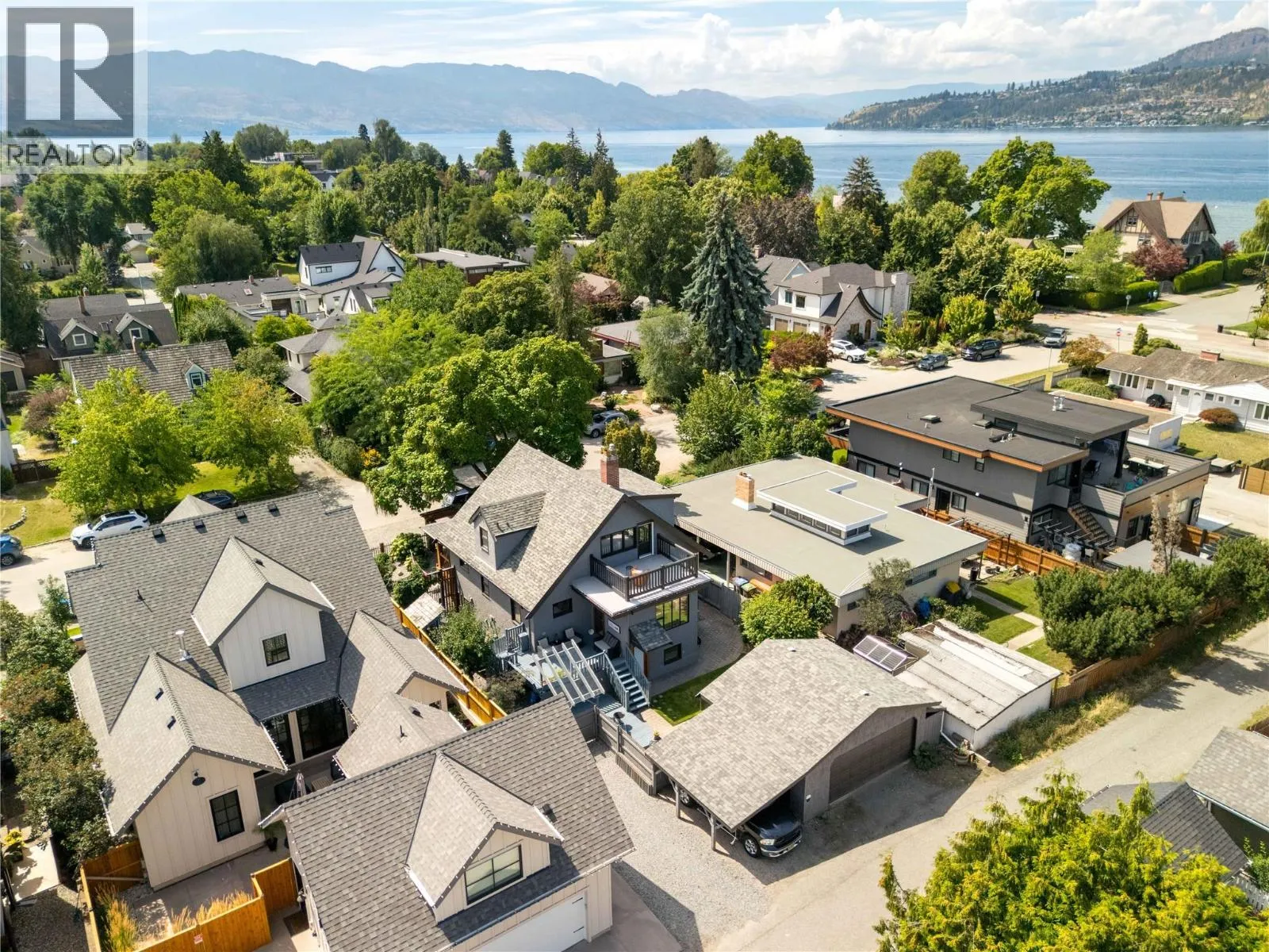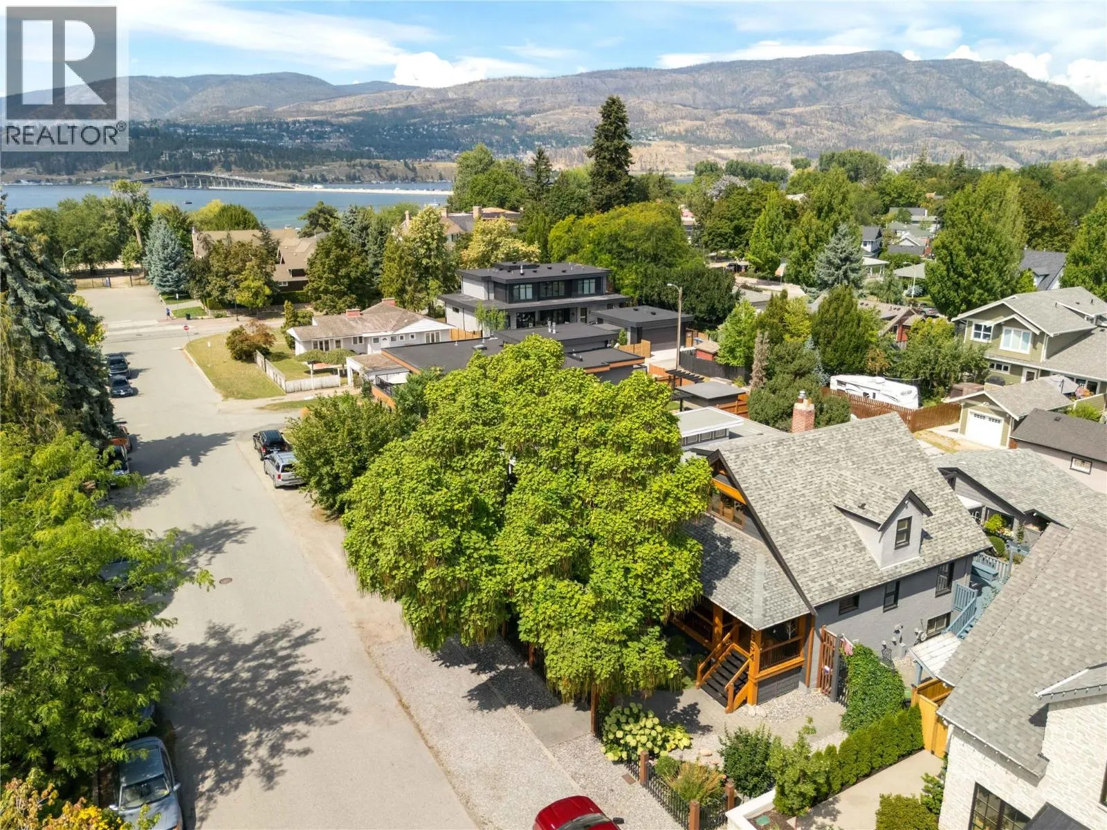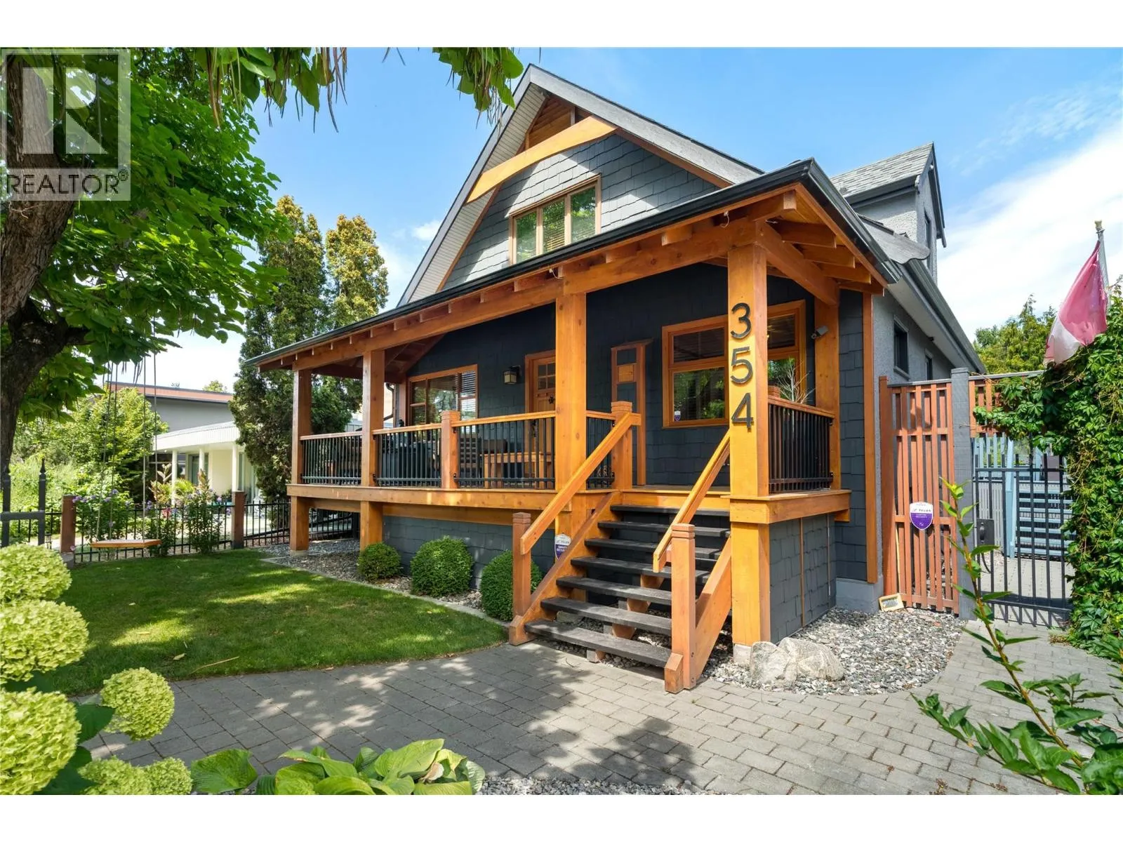 A rare offering just steps to the sandâwhere timeless design meets daily luxury in one of Kelownaâs most coveted neighbourhoods!! Privately nestled beneath a canopy of mature trees, this distinctive residence blends West Coast charm with elevated elegance. Thoughtfully & meticulously cared for, the home offers warmth, versatility & unmatched lifestyle just one block from the lake. Crafted for both beauty & function, the custom Glen Canyon kitchen is a true showpieceâfeaturing natural stone countertops, heated flooring, accent lighting, built-in display shelving, gas range & custom wood cabinetry. Refinished maple hardwood flows seamlessly through the main living spaces, framed by crown moulding, tray ceilings & rich wood accents. Large windows flood the home with natural light, creating a calm, airy feel throughout. Offering 4 bedrooms in totalâincluding a main-level bedroom & two upâthe home also includes a fully self-contained one-bedroom in-law suite with a private entrance. Outdoor living is at its finest with a covered front porch, sun-filled terrace & hot tub-ready private yard with wood burning stoveâall surrounded by lush, low-maintenance landscaping. A detached double garage/studio with 220 power, alley access & zoning for a carriage home offers incredible long-term potential. Parking is abundant, with space for a boat or RV. This is a legacy property in a location that rarely becomes availableâwalk to the beach, schools, parks & Kelownaâs vibrant downtown core. (id:27476)