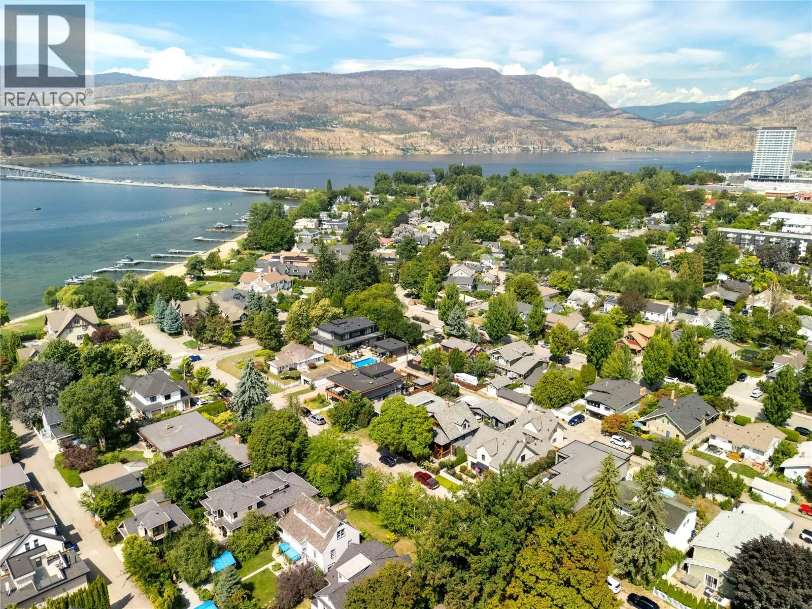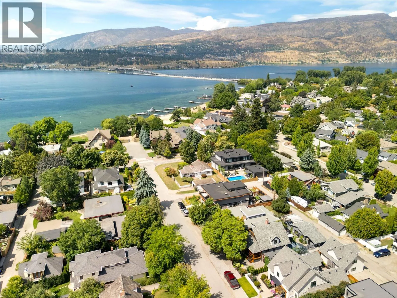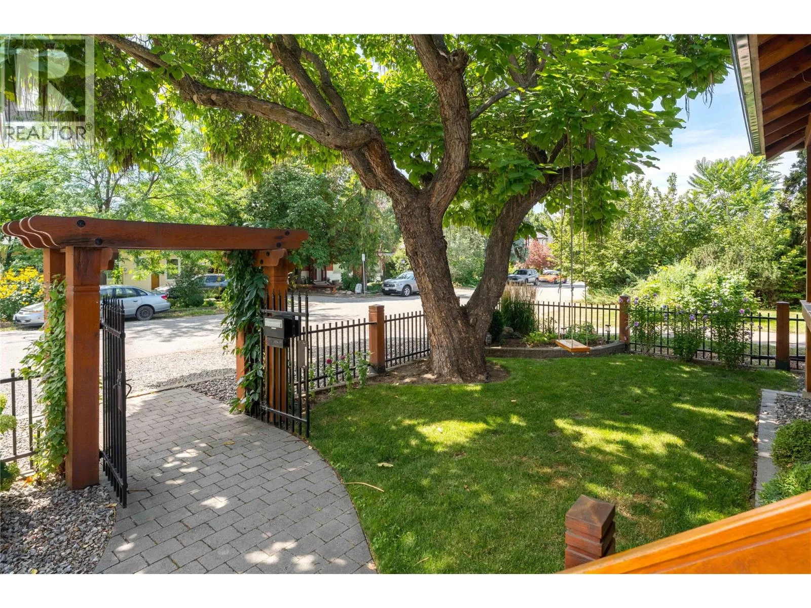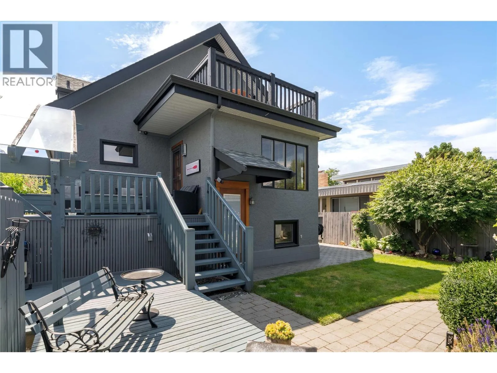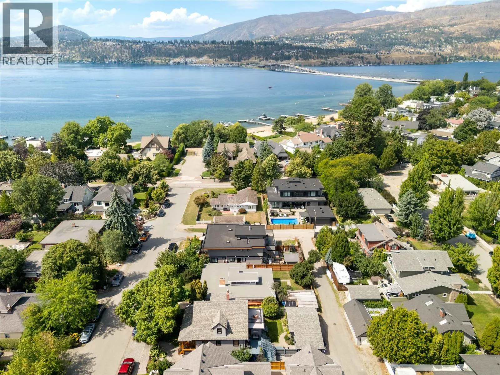 A rare offering just steps to the sandâwhere timeless design meets daily luxury in one of Kelownaâs most coveted neighbourhoods!! Privately nestled beneath a canopy of mature trees, this distinctive residence blends West Coast charm with elevated elegance. Thoughtfully & meticulously cared for, the home offers warmth, versatility & unmatched lifestyle just one block from the lake. Crafted for both beauty & function, the custom Glen Canyon kitchen is a true showpieceâfeaturing natural stone countertops, heated flooring, accent lighting, built-in display shelving, gas range & custom wood cabinetry. Refinished maple hardwood flows seamlessly through the main living spaces, framed by crown moulding, tray ceilings & rich wood accents. Large windows flood the home with natural light, creating a calm, airy feel throughout. Offering 4 bedrooms in totalâincluding a main-level bedroom & two upâthe home also includes a fully self-contained one-bedroom in-law suite with a private entrance. Outdoor living is at its finest with a covered front porch, sun-filled terrace & hot tub-ready private yard with wood burning stoveâall surrounded by lush, low-maintenance landscaping. A detached double garage/studio with 220 power, alley access & zoning for a carriage home offers incredible long-term potential. Parking is abundant, with space for a boat or RV. This is a legacy property in a location that rarely becomes availableâwalk to the beach, schools, parks & Kelownaâs vibrant downtown core. (id:27476)