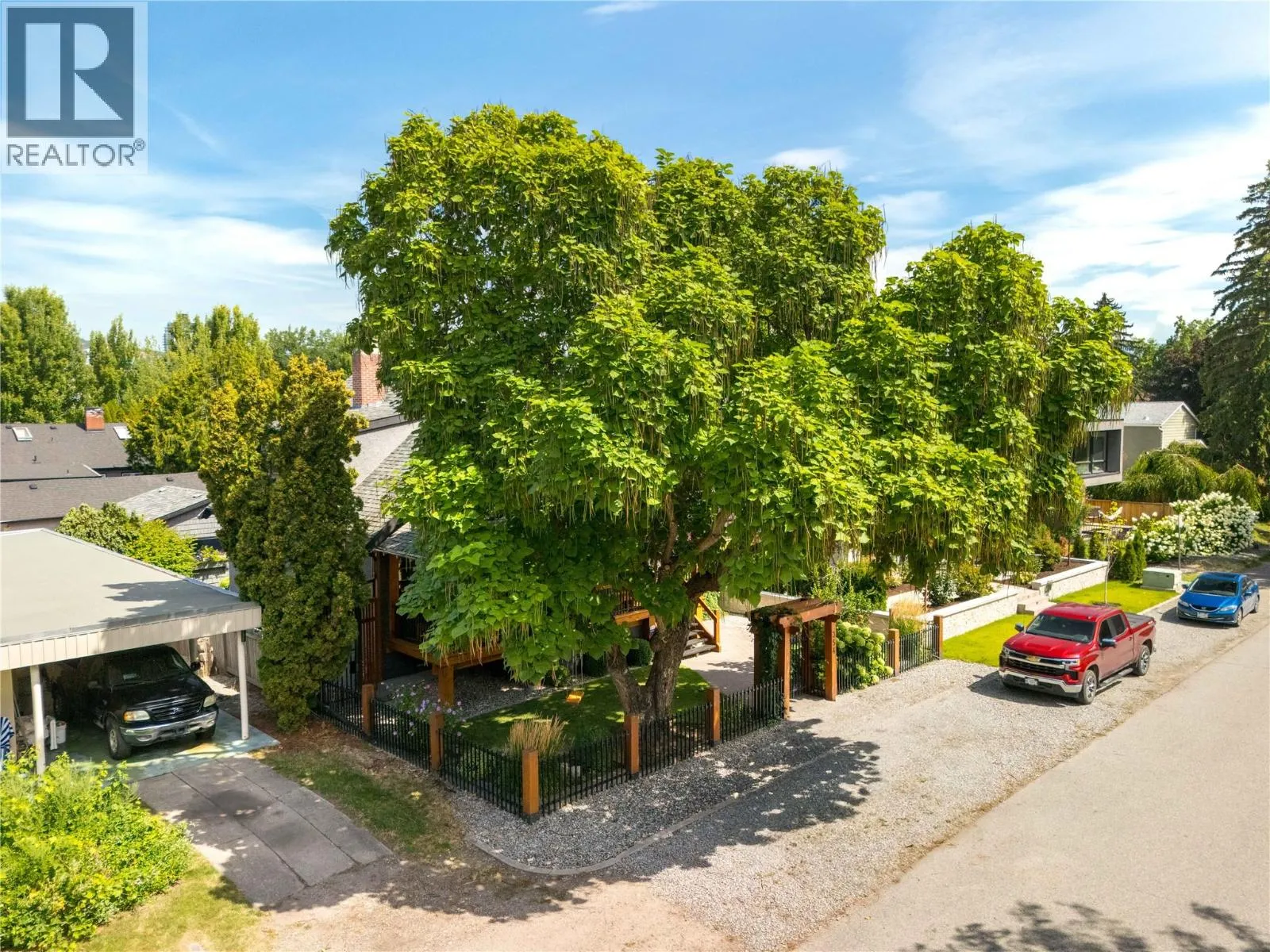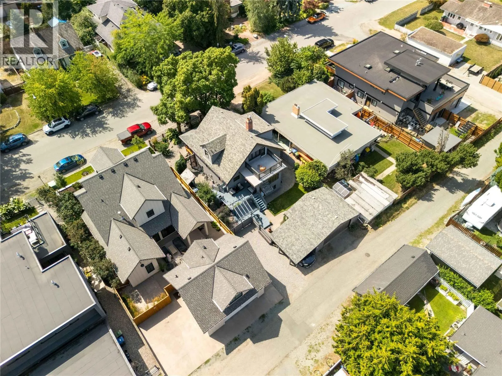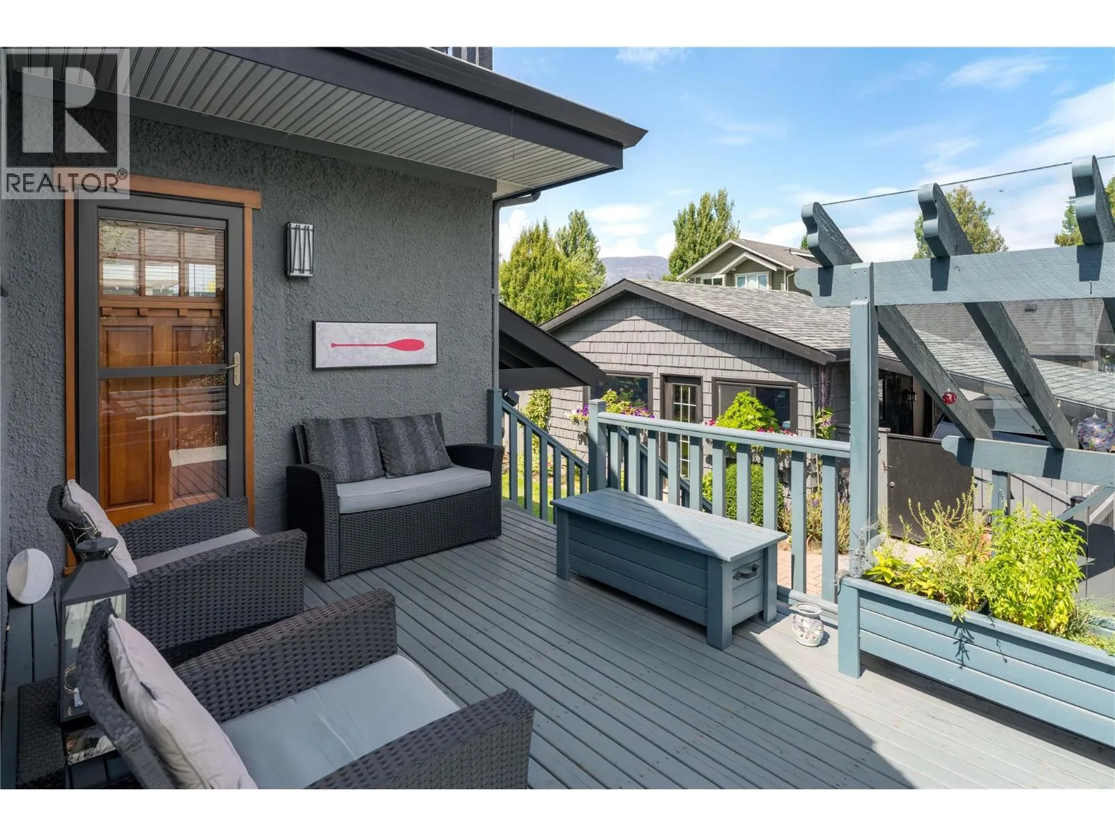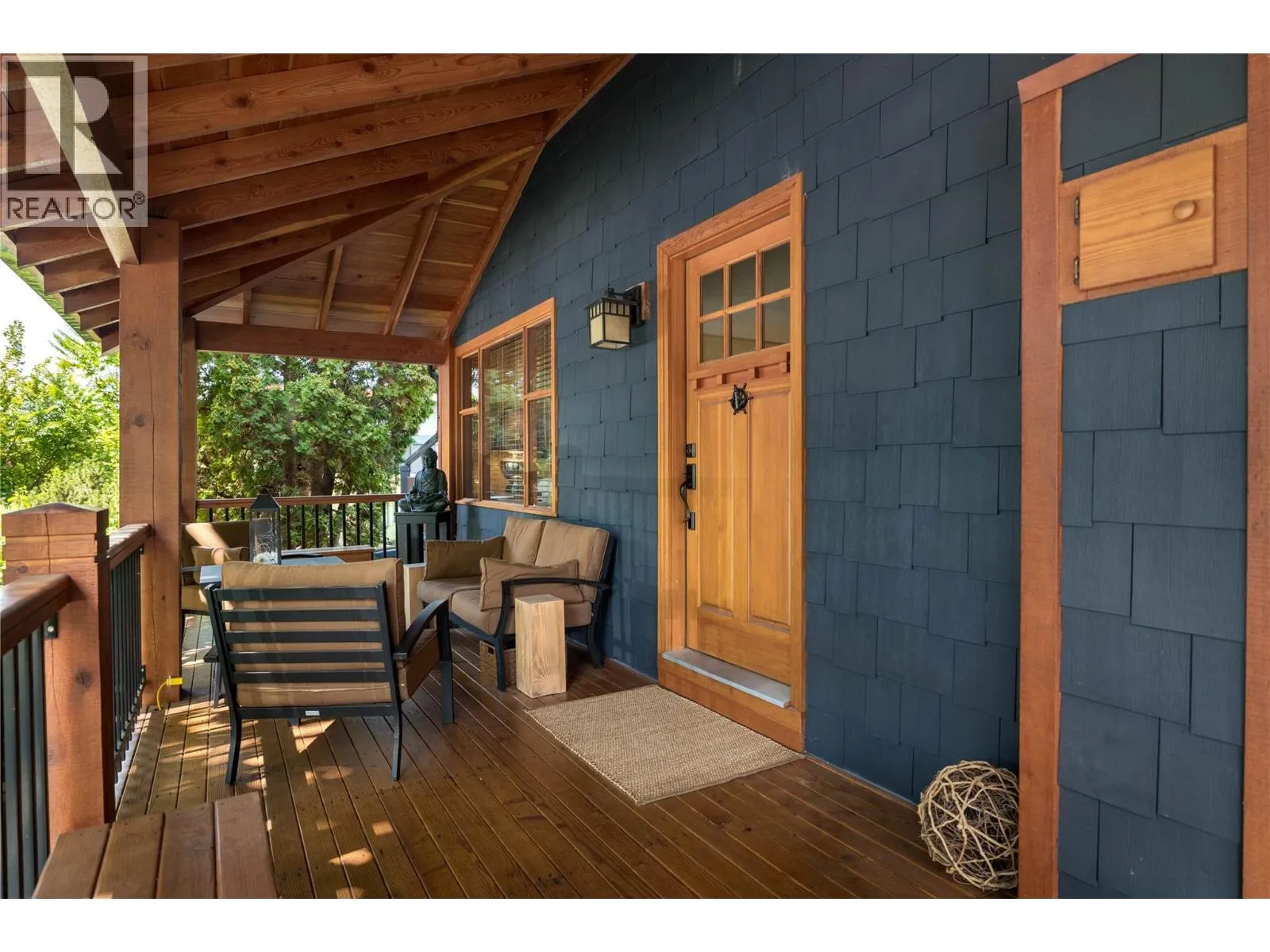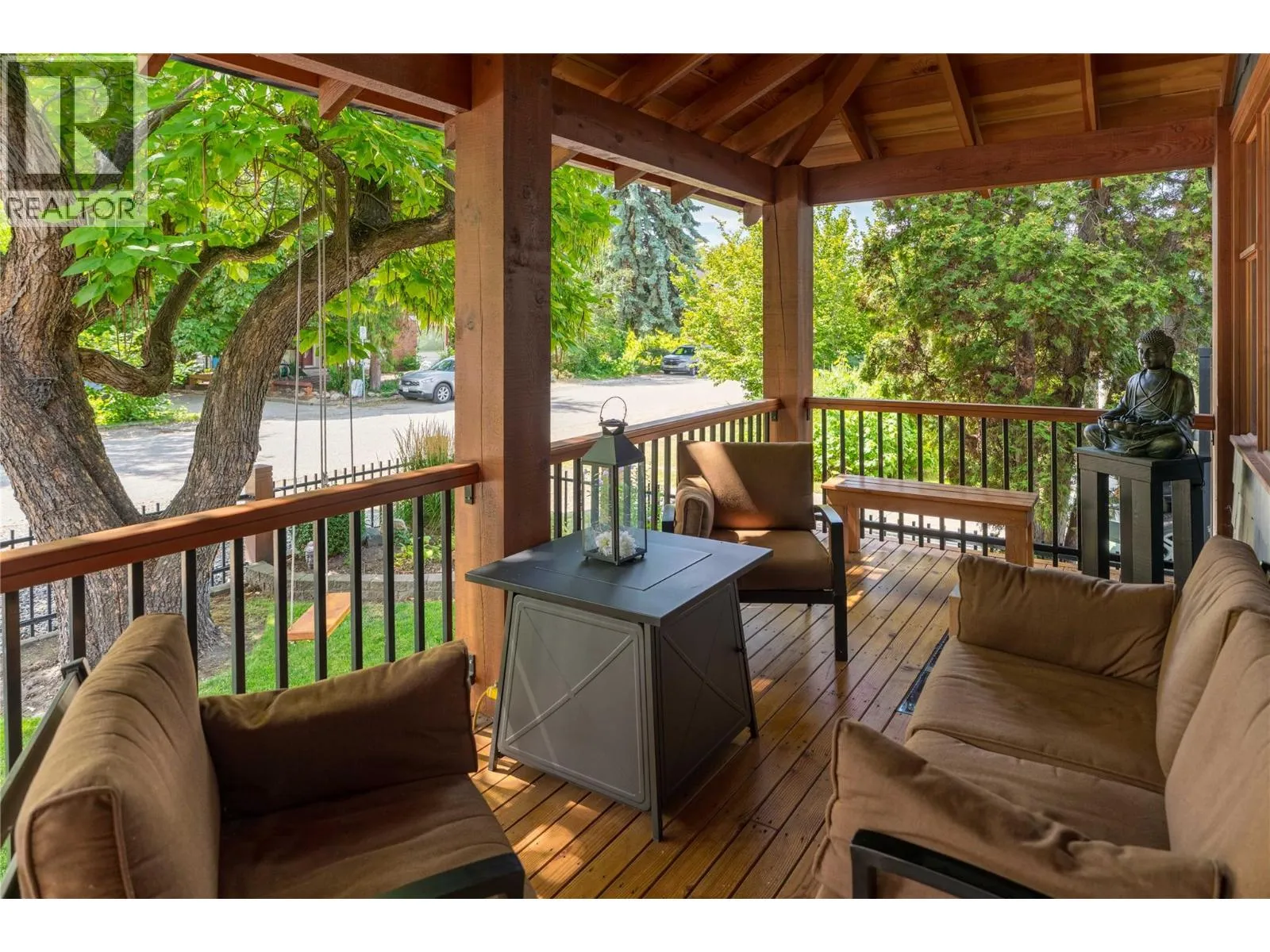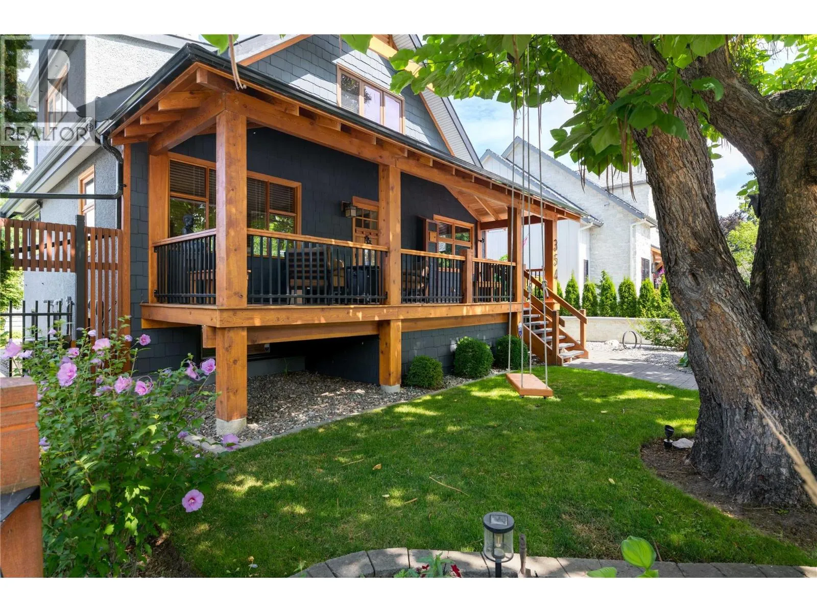 A rare offering just steps to the sandâwhere timeless design meets daily luxury in one of Kelownaâs most coveted neighbourhoods!! Privately nestled beneath a canopy of mature trees, this distinctive residence blends West Coast charm with elevated elegance. Thoughtfully & meticulously cared for, the home offers warmth, versatility & unmatched lifestyle just one block from the lake. Crafted for both beauty & function, the custom Glen Canyon kitchen is a true showpieceâfeaturing natural stone countertops, heated flooring, accent lighting, built-in display shelving, gas range & custom wood cabinetry. Refinished maple hardwood flows seamlessly through the main living spaces, framed by crown moulding, tray ceilings & rich wood accents. Large windows flood the home with natural light, creating a calm, airy feel throughout. Offering 4 bedrooms in totalâincluding a main-level bedroom & two upâthe home also includes a fully self-contained one-bedroom in-law suite with a private entrance. Outdoor living is at its finest with a covered front porch, sun-filled terrace & hot tub-ready private yard with wood burning stoveâall surrounded by lush, low-maintenance landscaping. A detached double garage/studio with 220 power, alley access & zoning for a carriage home offers incredible long-term potential. Parking is abundant, with space for a boat or RV. This is a legacy property in a location that rarely becomes availableâwalk to the beach, schools, parks & Kelownaâs vibrant downtown core. (id:27476)