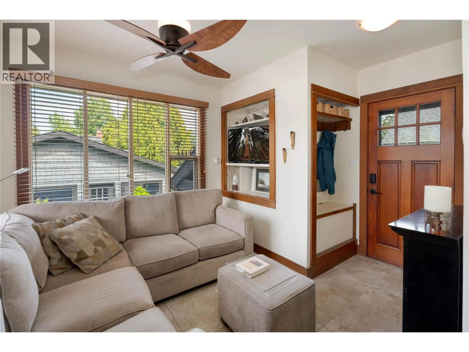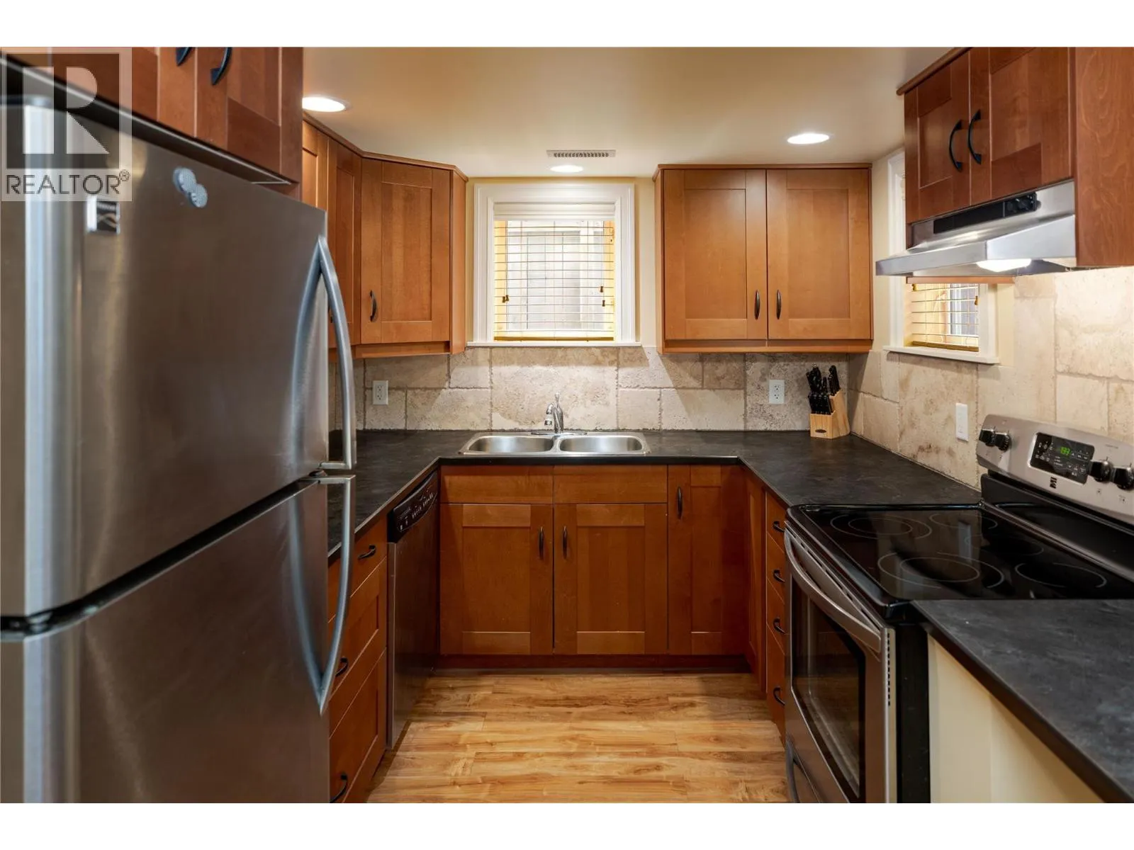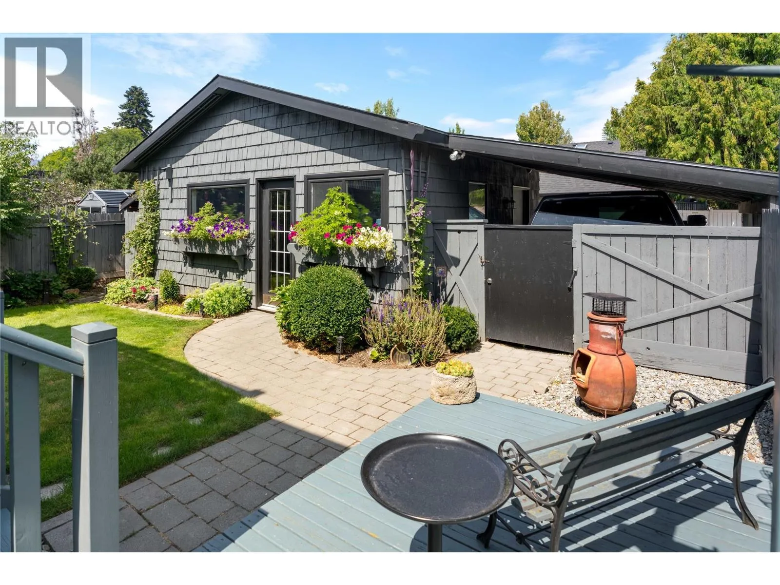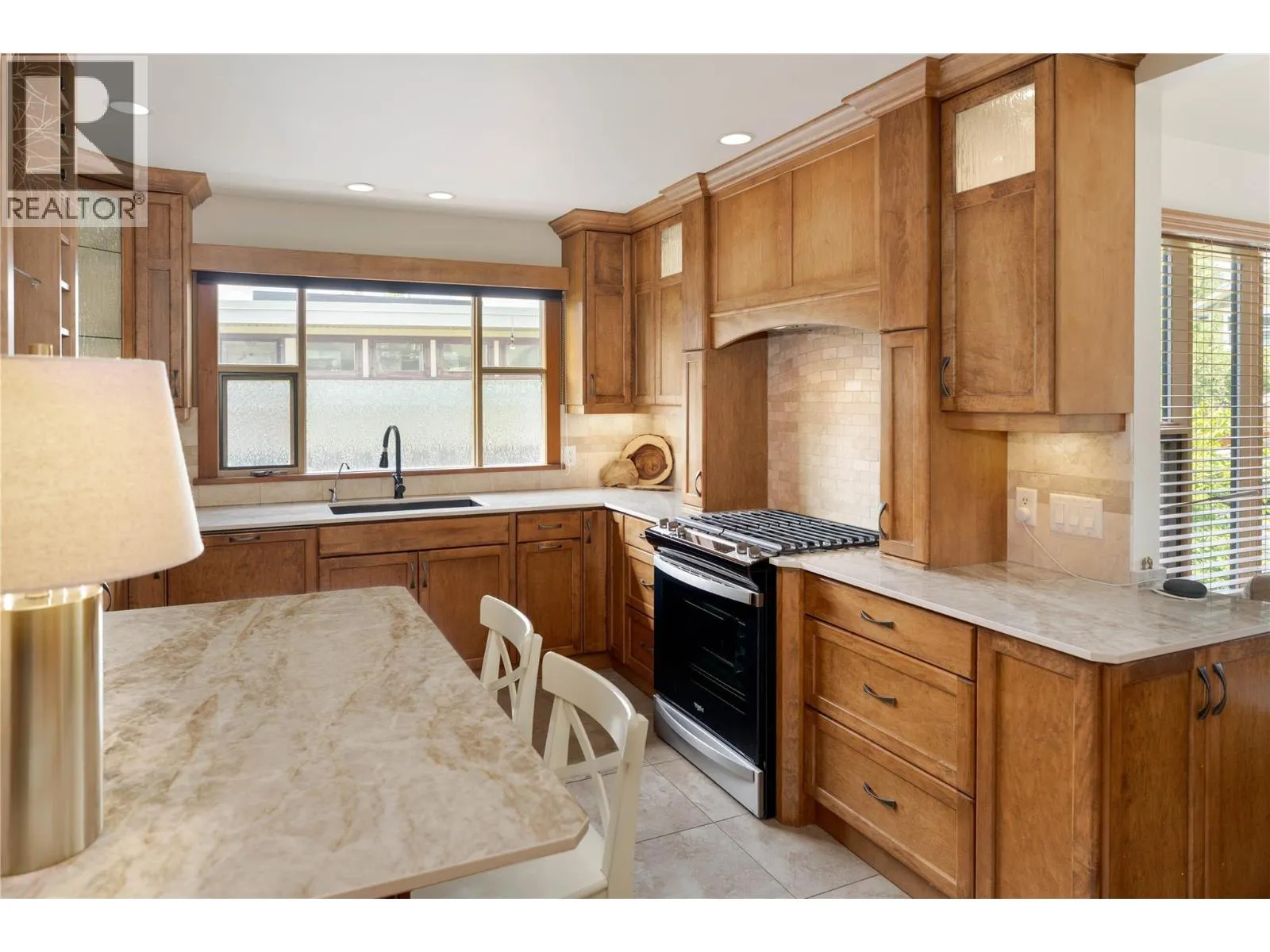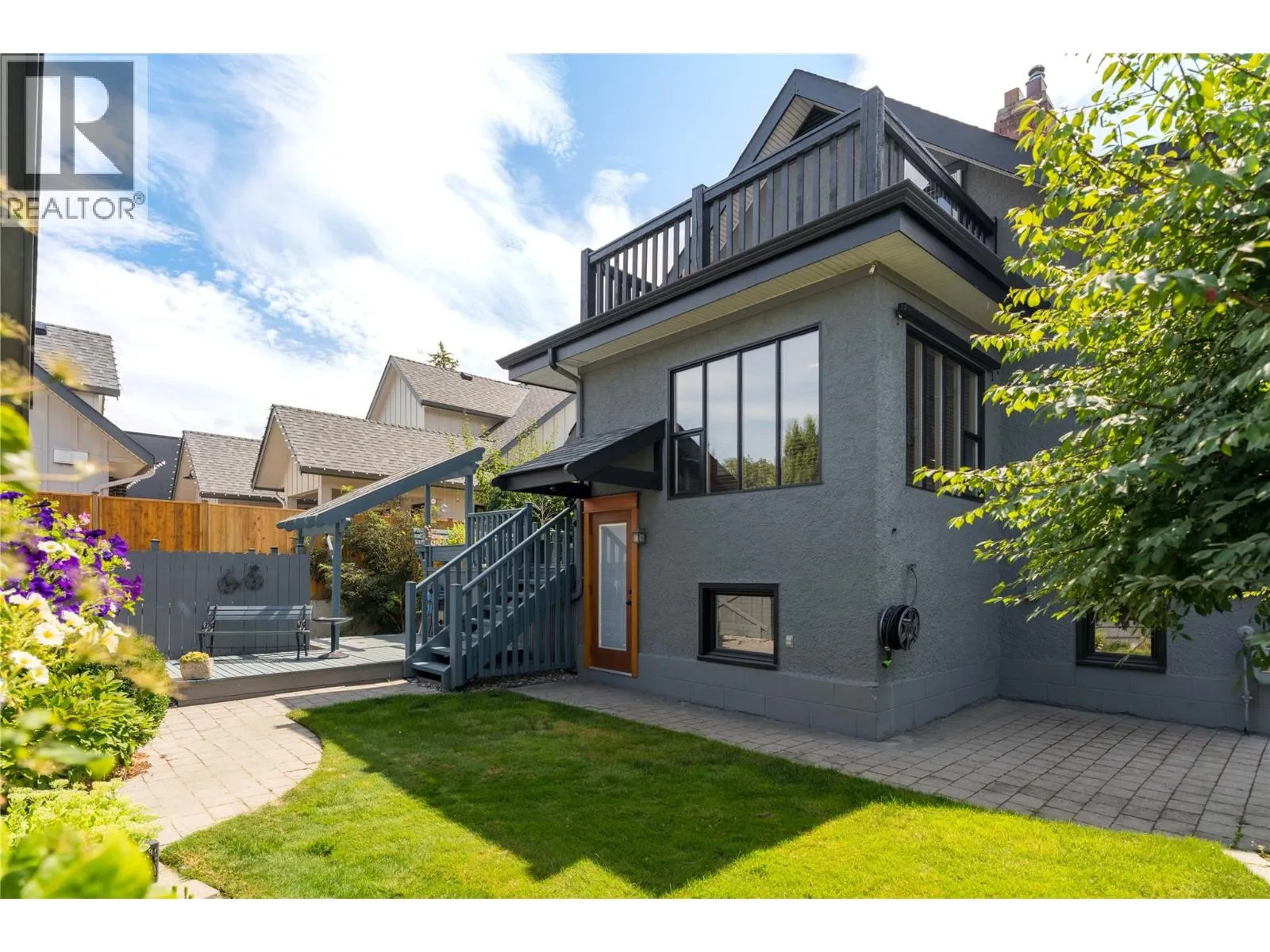 A rare offering just steps to the sandâwhere timeless design meets daily luxury in one of Kelownaâs most coveted neighbourhoods!! Privately nestled beneath a canopy of mature trees, this distinctive residence blends West Coast charm with elevated elegance. Thoughtfully & meticulously cared for, the home offers warmth, versatility & unmatched lifestyle just one block from the lake. Crafted for both beauty & function, the custom Glen Canyon kitchen is a true showpieceâfeaturing natural stone countertops, heated flooring, accent lighting, built-in display shelving, gas range & custom wood cabinetry. Refinished maple hardwood flows seamlessly through the main living spaces, framed by crown moulding, tray ceilings & rich wood accents. Large windows flood the home with natural light, creating a calm, airy feel throughout. Offering 4 bedrooms in totalâincluding a main-level bedroom & two upâthe home also includes a fully self-contained one-bedroom in-law suite with a private entrance. Outdoor living is at its finest with a covered front porch, sun-filled terrace & hot tub-ready private yard with wood burning stoveâall surrounded by lush, low-maintenance landscaping. A detached double garage/studio with 220 power, alley access & zoning for a carriage home offers incredible long-term potential. Parking is abundant, with space for a boat or RV. This is a legacy property in a location that rarely becomes availableâwalk to the beach, schools, parks & Kelownaâs vibrant downtown core. (id:27476)