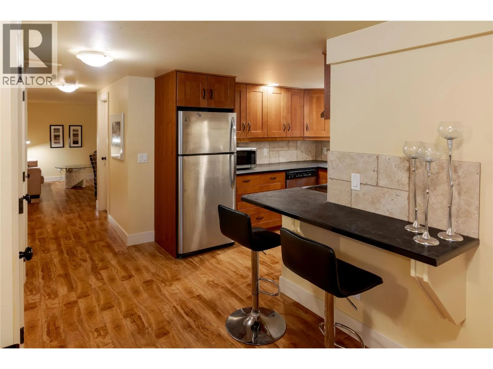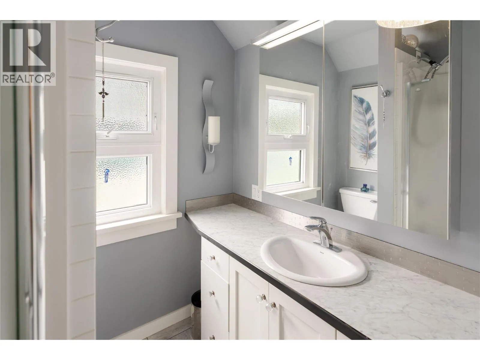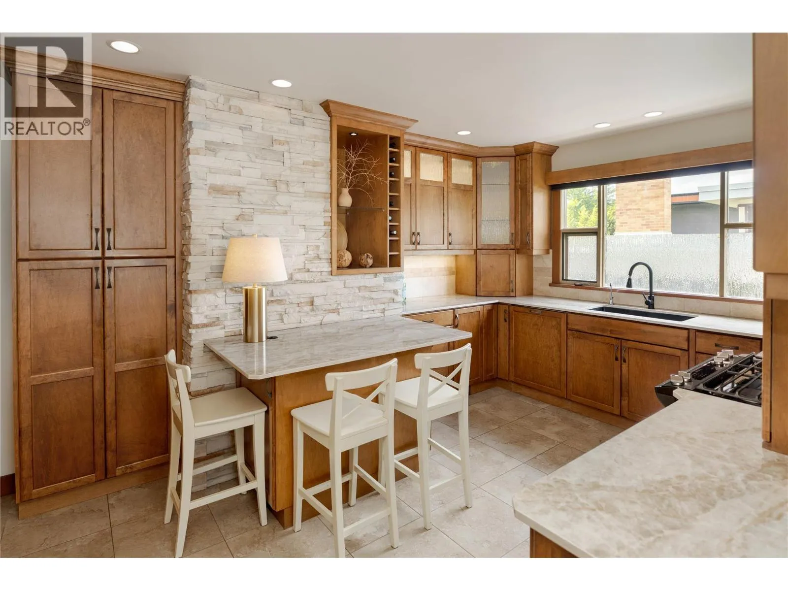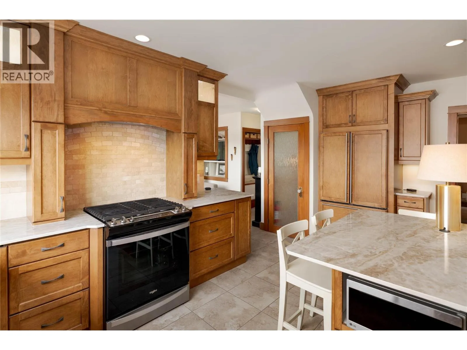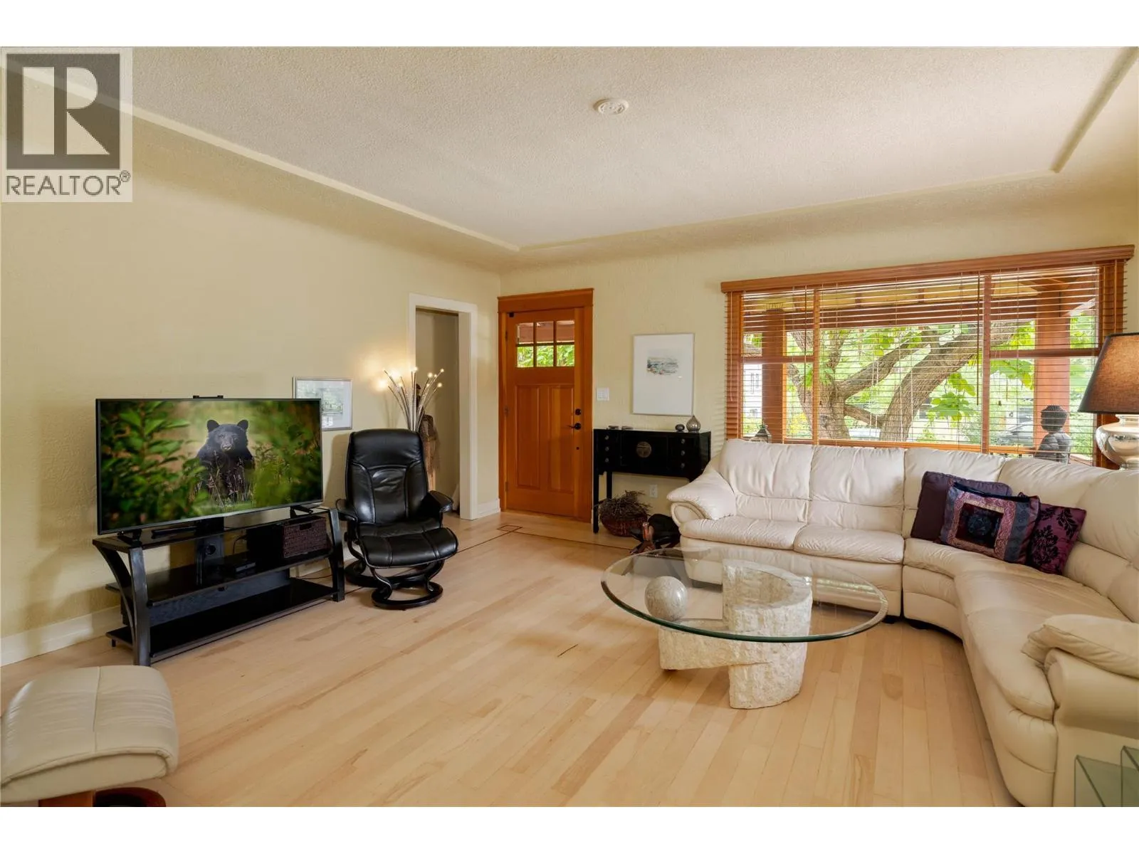 A rare offering just steps to the sandâwhere timeless design meets daily luxury in one of Kelownaâs most coveted neighbourhoods!! Privately nestled beneath a canopy of mature trees, this distinctive residence blends West Coast charm with elevated elegance. Thoughtfully & meticulously cared for, the home offers warmth, versatility & unmatched lifestyle just one block from the lake. Crafted for both beauty & function, the custom Glen Canyon kitchen is a true showpieceâfeaturing natural stone countertops, heated flooring, accent lighting, built-in display shelving, gas range & custom wood cabinetry. Refinished maple hardwood flows seamlessly through the main living spaces, framed by crown moulding, tray ceilings & rich wood accents. Large windows flood the home with natural light, creating a calm, airy feel throughout. Offering 4 bedrooms in totalâincluding a main-level bedroom & two upâthe home also includes a fully self-contained one-bedroom in-law suite with a private entrance. Outdoor living is at its finest with a covered front porch, sun-filled terrace & hot tub-ready private yard with wood burning stoveâall surrounded by lush, low-maintenance landscaping. A detached double garage/studio with 220 power, alley access & zoning for a carriage home offers incredible long-term potential. Parking is abundant, with space for a boat or RV. This is a legacy property in a location that rarely becomes availableâwalk to the beach, schools, parks & Kelownaâs vibrant downtown core. (id:27476)