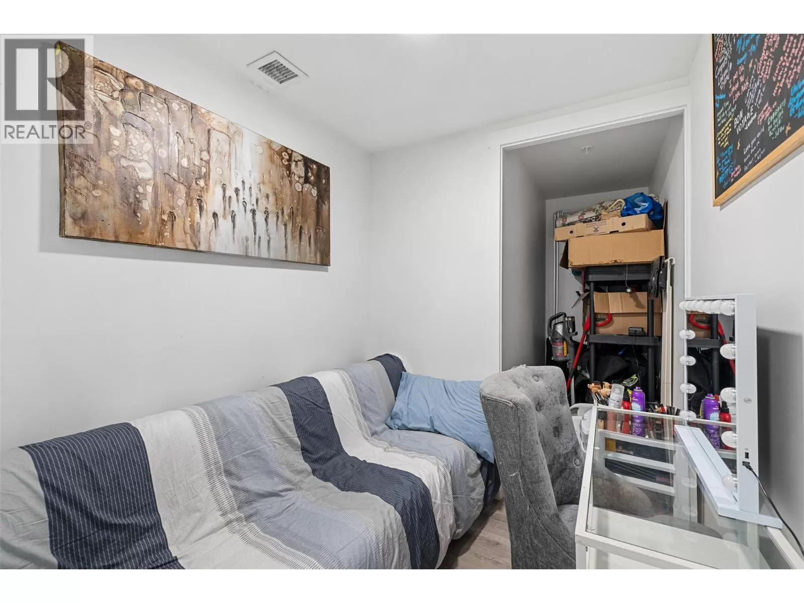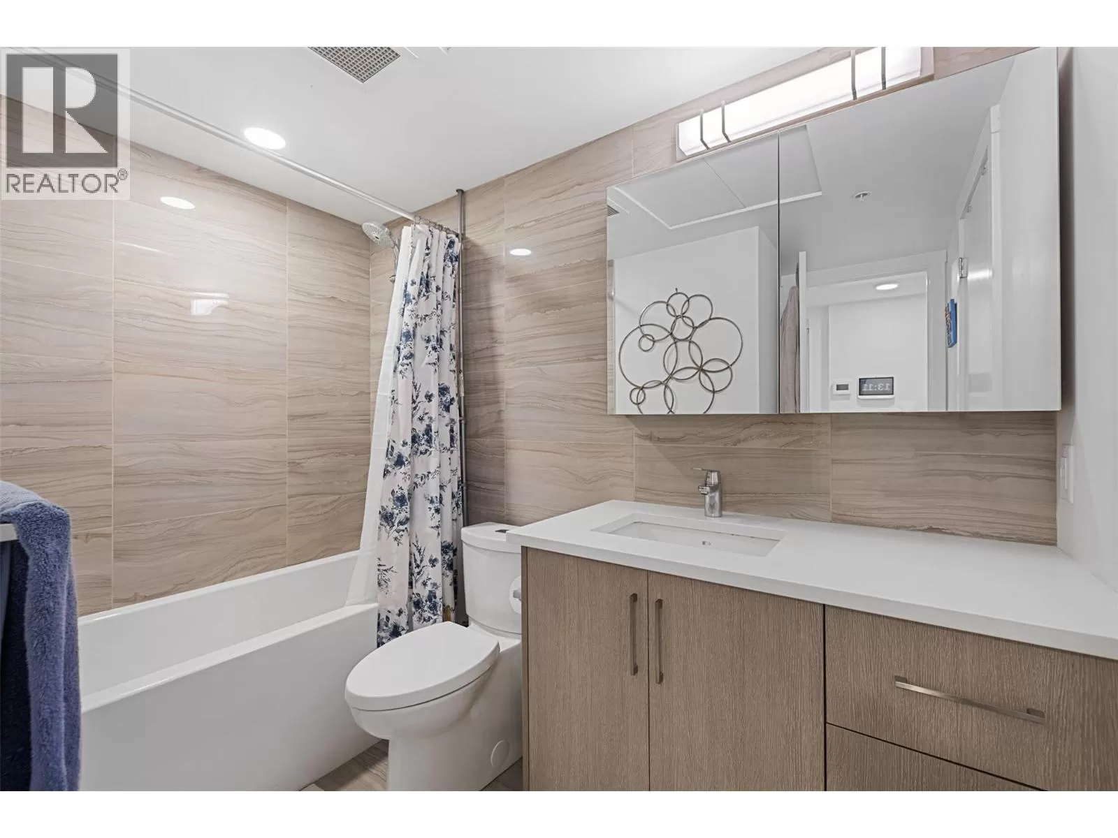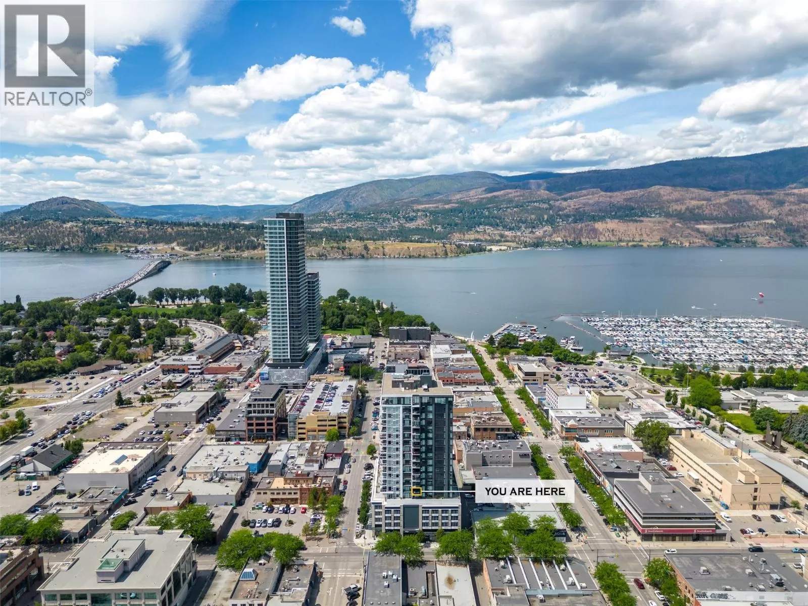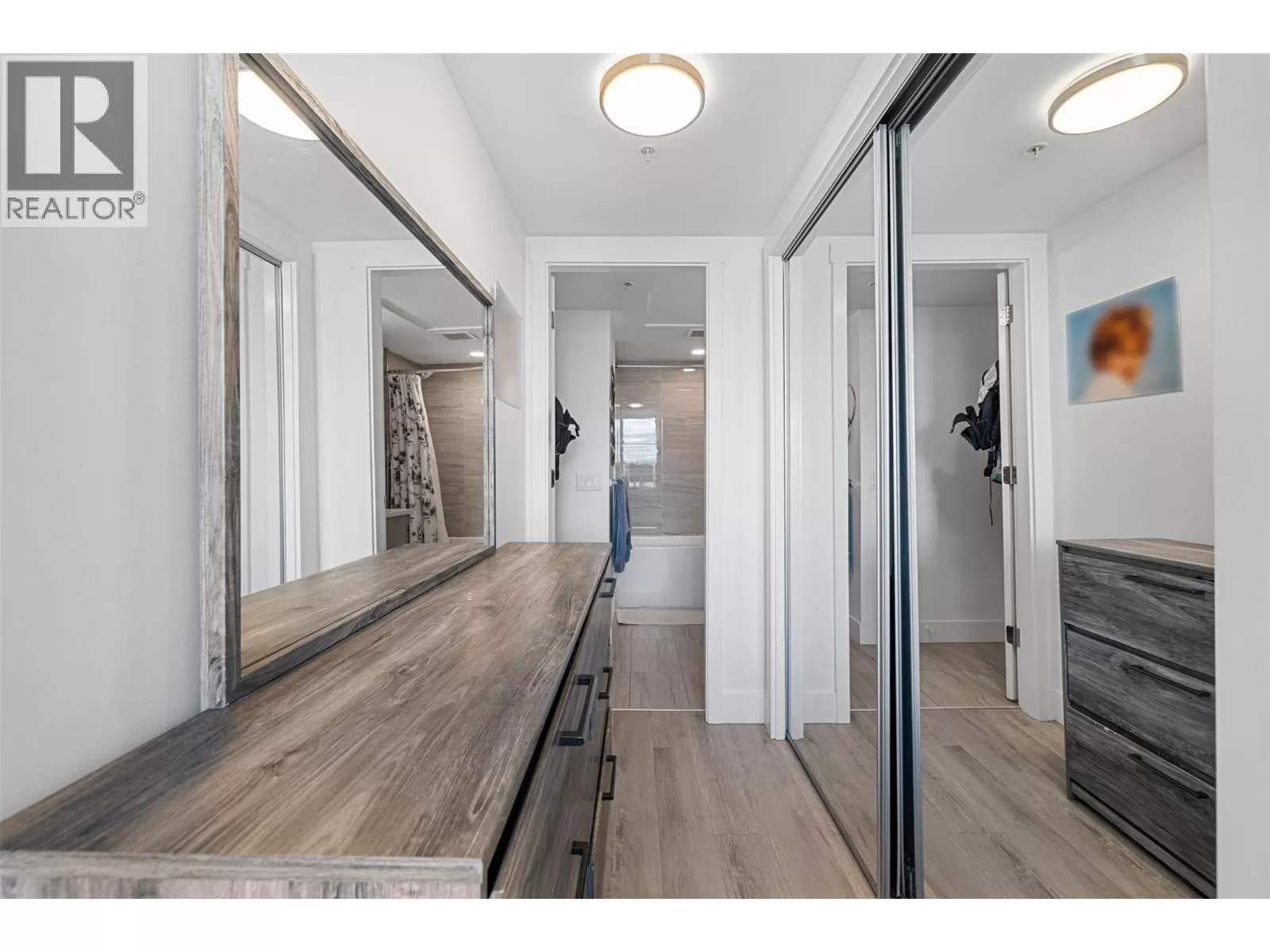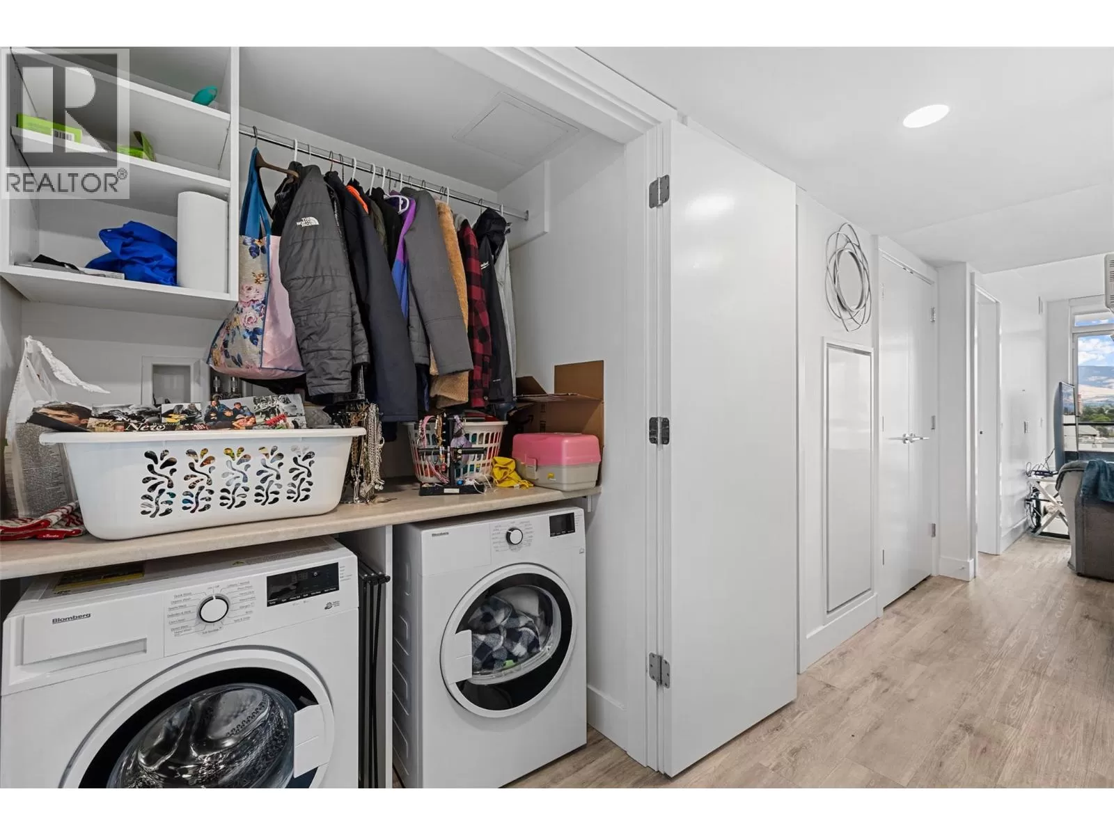 Extraordinary value at ELLA, Kelownaâs most central downtown luxury condo building. This bright East facing one bedroom and den home offers lovely city and mountain views from the 7th floor. Finishings by Award-winning interior design i3 Design Group include quartz countertops throughout the home, soft vinyl plank flooring, surround ceramic tile in the bathroom and under cabinet lighting in the kitchen. Cook gourmet meals on your gas range with quartz backsplash and enjoy the sleek and designer aesthetic of the integrated paneled refrigerator. Located on the corner of Ellis street & Lawrence Ave, this home comes with 1 parking stall in the secure parkade plus 1 secure storage locker. Electric vehicle charging stations are available for ELLA residentsâ exclusive use. The building boasts a bike & pet washing station, resident bike storage & guest suite for residentâs visitors. This home offers an in-suite washer & dryer along with ample storage and closet space to make this a functional and comfortable condo. This is the perfect home for affordable downtown living or the savvy investor looking for great value. (id:27476)
