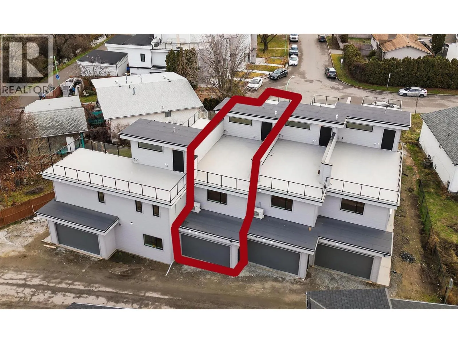 THE BUILDER IS OFFERING THIS UNBELIEVABLE PRICE OF $899,900 (INITIALLY VALUED AT $1,200,000) FOR UNIT #3. BONUS OF NEW HOME PROPERTY TRANSFER TAX EXEMPTION, NO GST FOR FIRST TIME BUYERS, PLUS LOCATION - LOCATION â LOCATION. The South Pandosy (SOPA) lifestyle at its best on a quiet street. Approximately 2,200 sq. ft. pet-friendly homes offer modern style in this bright & quiet fourplex. Each home has an attached side-by-side double garage (roughed for EV Charger), front & rear roof-top decks (approx. 1,000 sq. ft.) plumbed for hot tub & outdoor kitchen. Quality contemporary finishings in this 3-bedroom + den, 3-bathroom home with 10 ft. ceilings (on the main), plus a laundry room with sink, cupboards & sorting counter, plus an abundance of storage. A 5â10-minute walk to beaches, parks, shopping, cafes, restaurants, stores, schools (Raymer Elementary, Kelowna Secondary School, Okanagan College, KLO Middle School), banking, medical facilities & City Transit. This is a quiet crescent with lovely city/mountain/valley views, please consider making one of these units your new home. Standard Strata Bylaws to be adopted with the owners to decide on pet & rental restrictions over the longer term. GST will be applicable on top of the purchase price. Enervision Enviromatcis Group Energy Advisor states a 33.5% increase in energy efficiency than what is required. Some images are physically staged. #2 has SOLD #s 1 & 4 also available. These homes are worth a look. (id:27476)