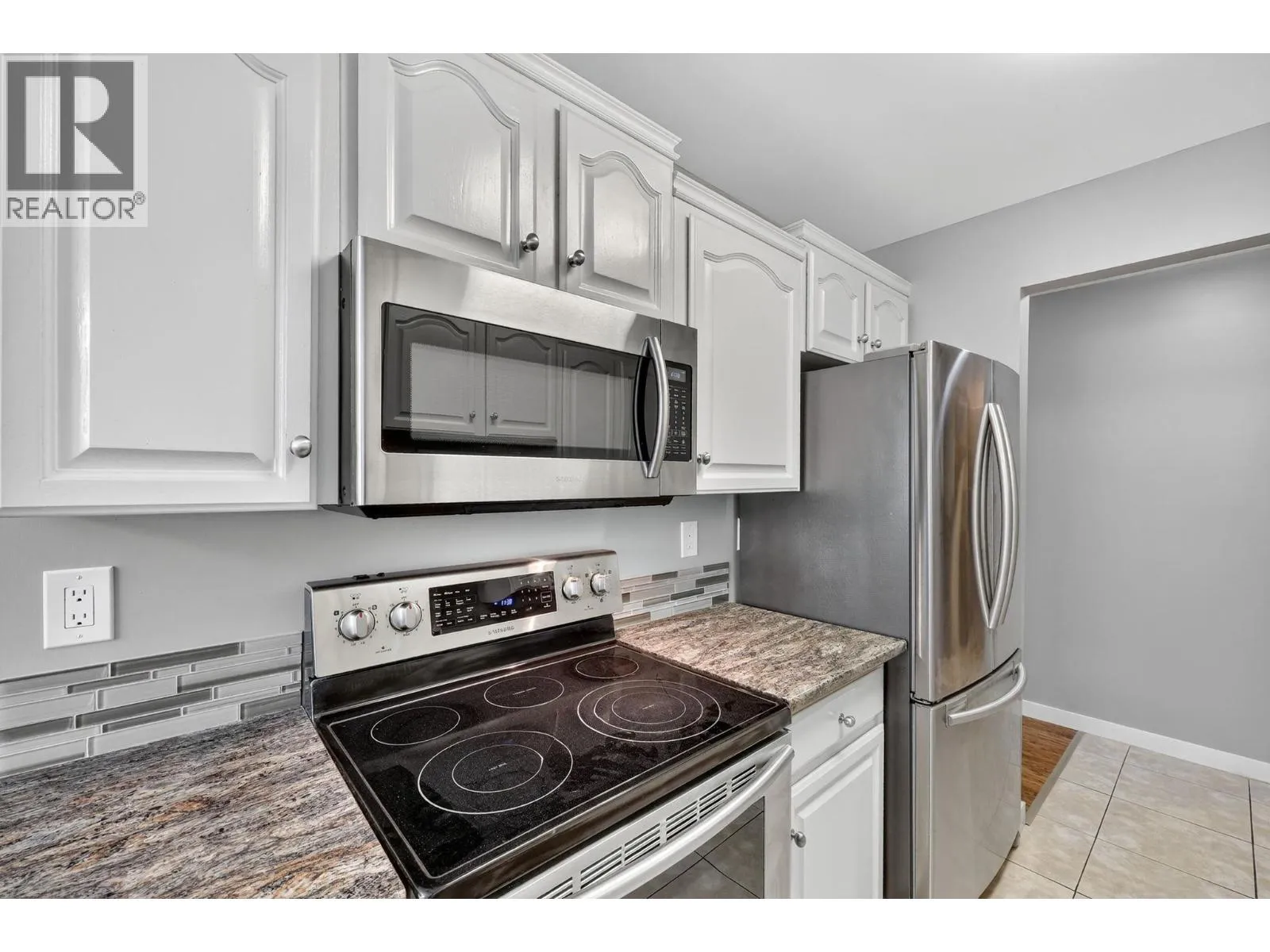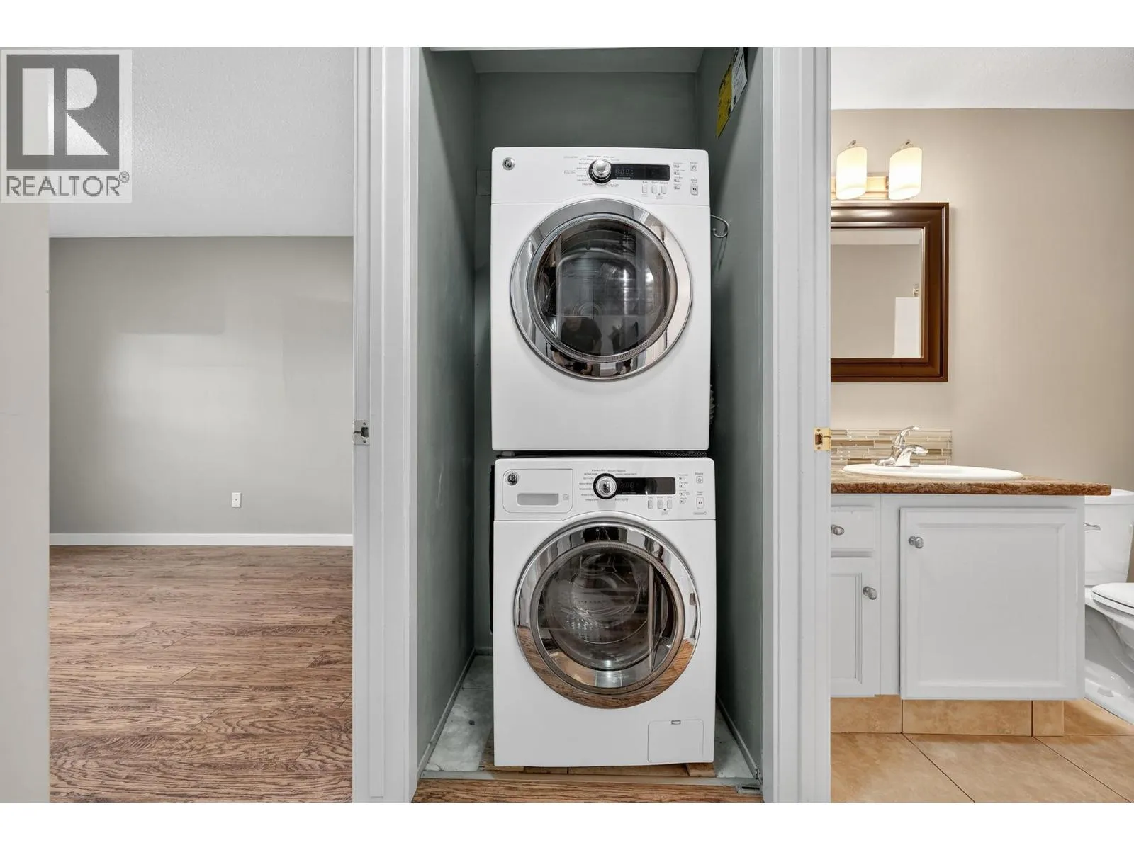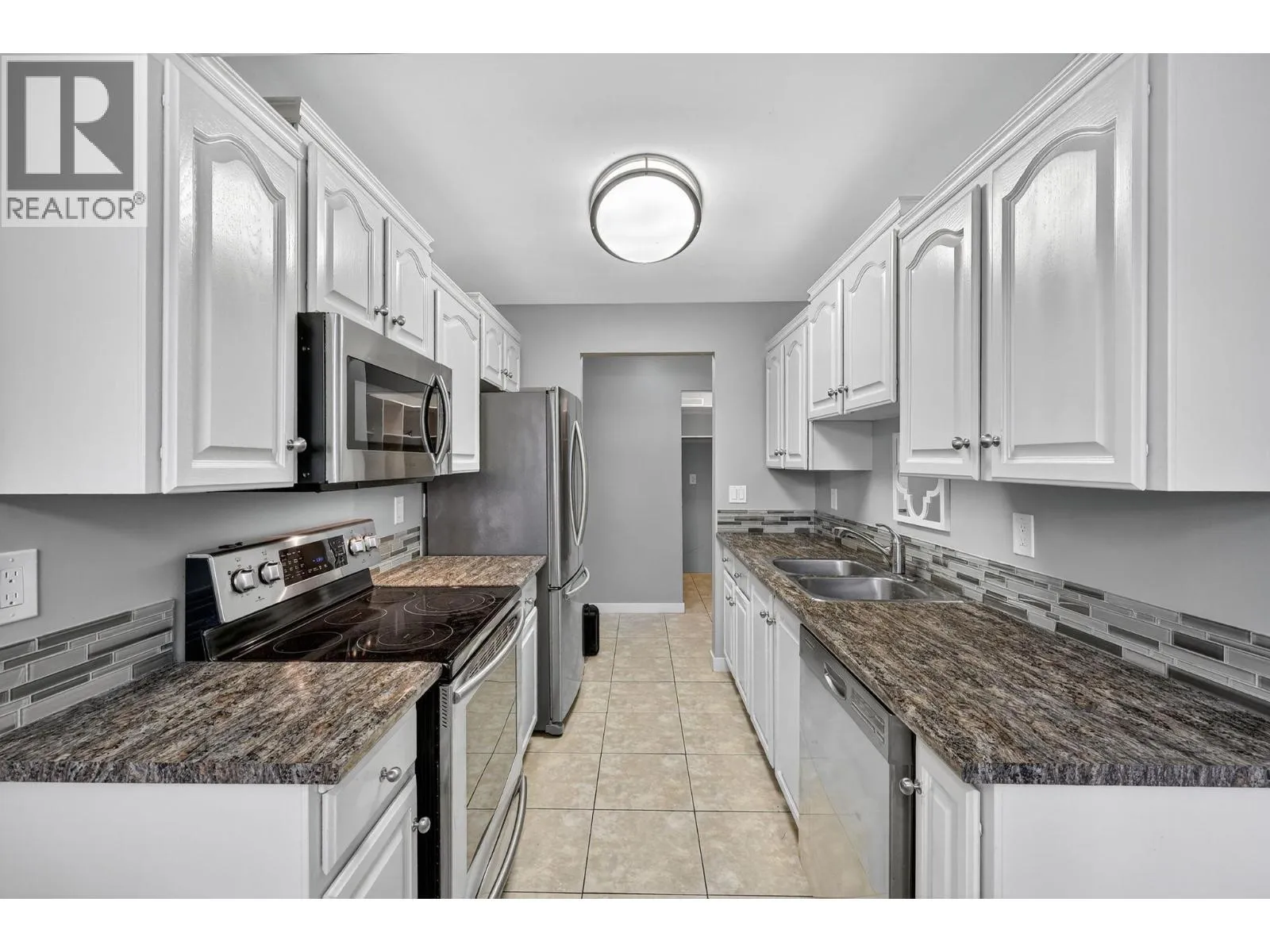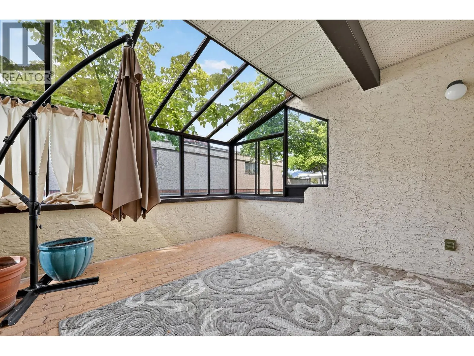 Enjoy quiet 55+ living in this bright corner unit boasting 1000 sqft, including a serene 12x12 sunroom. The updated kitchen features stainless steel appliances and a glass backsplash, complemented by a storage room and pantry. Enjoy a spacious living room, two full bathrooms, and two generously sized bedrooms. Newer washer/dryer included. Conveniently located near shopping, Mediterranean Market, Capri Mall, parks, and just moments from downtown Kelowna, Lake Okanagan, and beaches. Includes one covered parking spot, community exercise room, meeting/party room, laminate and tile floors throughout, plus extra storage. (id:27476)