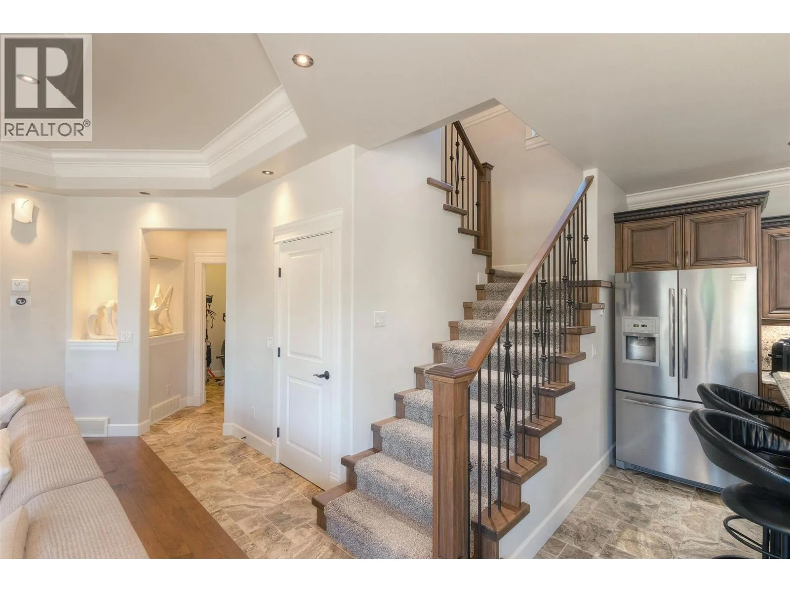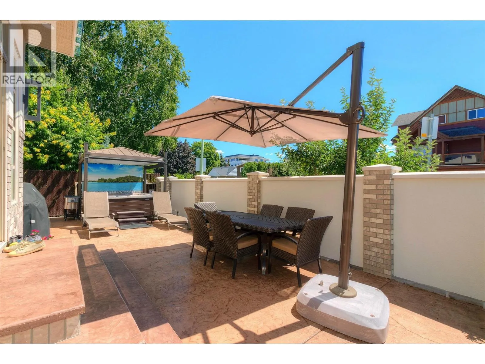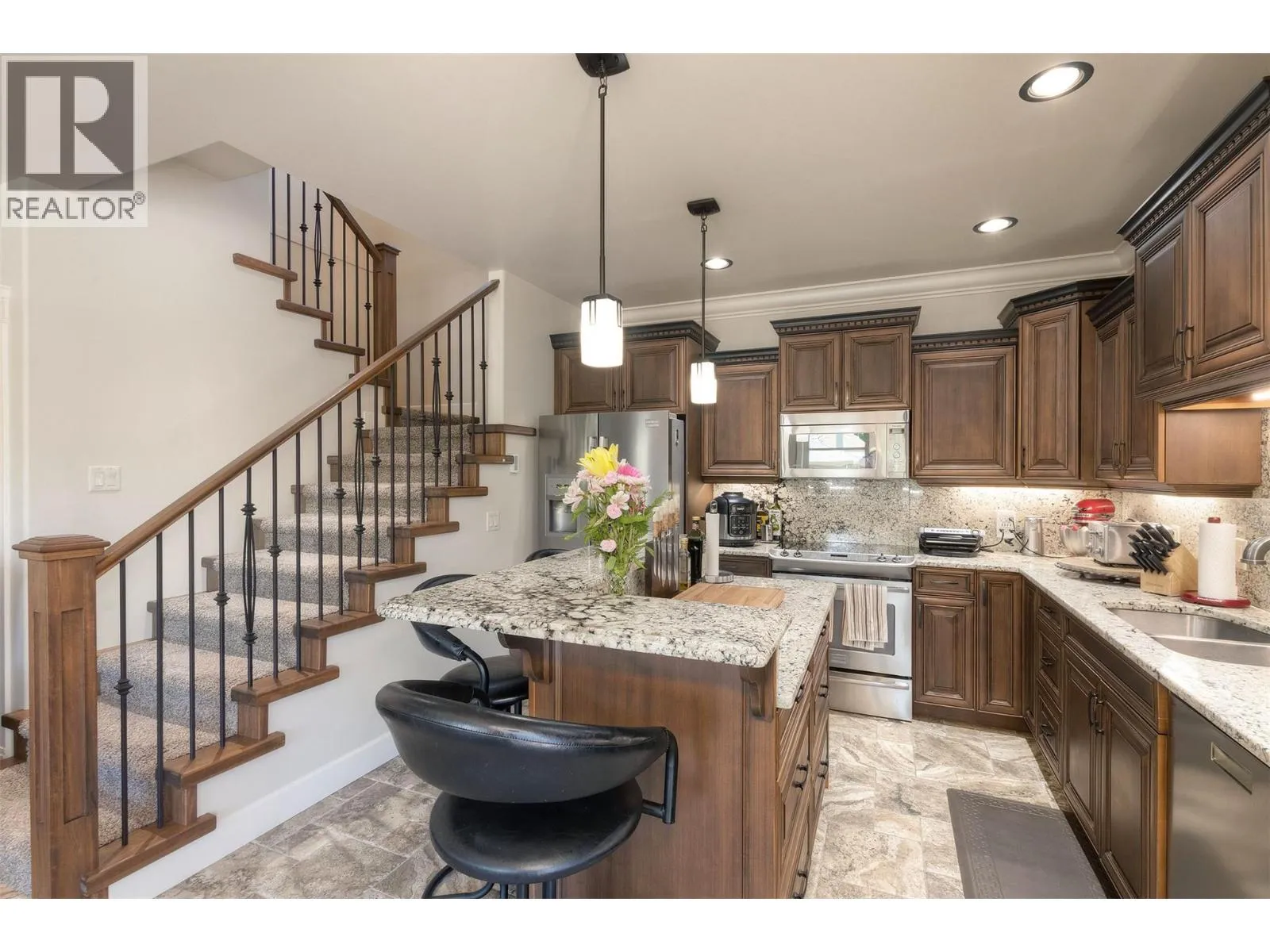 Located along the prestigious Abbott Street Corridor, this half-duplex executive home blends upscale design with an unbeatable location. Just steps from sandy beaches, scenic bike paths, boutique cafe's, acclaimed restaurants, and KGH, this walkable neighborhood embodies the best of the Okanagan lifestyle. Inside, timeless details include crown molding, tray ceilings, hardwood floors, rich wood cabinetry, and granite countertops. The open-concept main level flows seamlessly from the living room to the dining area and gourmet kitchenâcomplete with professional stainless-steel appliances, built-in wine cooler, and generous island for entertaining. Expansive windows bathe the home in natural light, while sliding doors open to a fenced outdoor living space with dining area, gas hookup, and hot tubâperfect for evening gatherings or a private retreat. Upstairs, the primary bedroom offers a private patio, wet bar, custom built-ins, walk-in closet, and a spa-inspired ensuite. Two additional bedrooms, each with walk-in closets and private ensuites, provide comfort and privacy for family or guests. A rare opportunity to own in one of Kelowna Southâs most coveted locations, where refined living meets unmatched convenience. (id:27476)