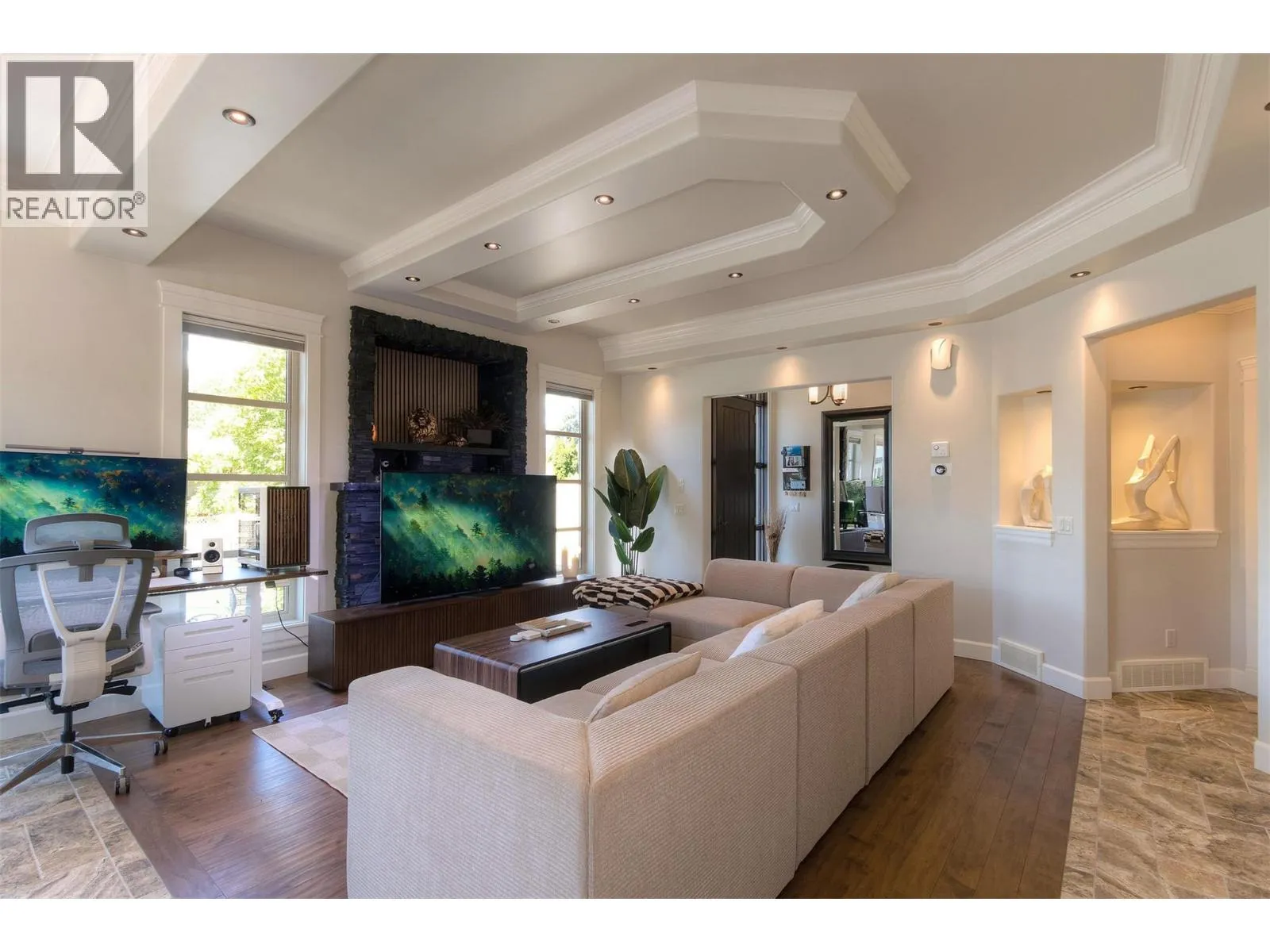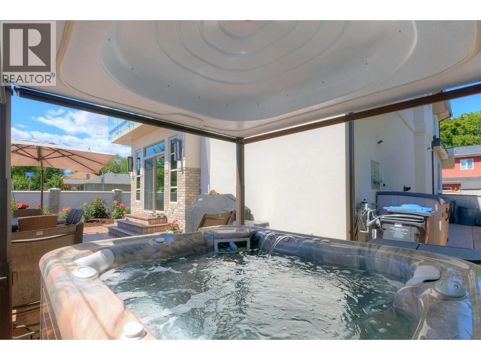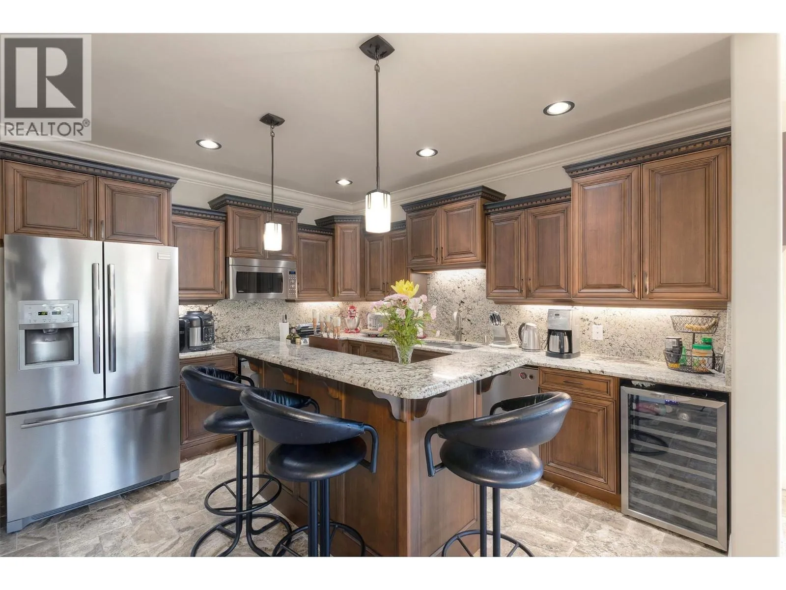 Located along the prestigious Abbott Street Corridor, this half-duplex executive home blends upscale design with an unbeatable location. Just steps from sandy beaches, scenic bike paths, boutique cafe's, acclaimed restaurants, and KGH, this walkable neighborhood embodies the best of the Okanagan lifestyle. Inside, timeless details include crown molding, tray ceilings, hardwood floors, rich wood cabinetry, and granite countertops. The open-concept main level flows seamlessly from the living room to the dining area and gourmet kitchenâcomplete with professional stainless-steel appliances, built-in wine cooler, and generous island for entertaining. Expansive windows bathe the home in natural light, while sliding doors open to a fenced outdoor living space with dining area, gas hookup, and hot tubâperfect for evening gatherings or a private retreat. Upstairs, the primary bedroom offers a private patio, wet bar, custom built-ins, walk-in closet, and a spa-inspired ensuite. Two additional bedrooms, each with walk-in closets and private ensuites, provide comfort and privacy for family or guests. A rare opportunity to own in one of Kelowna Southâs most coveted locations, where refined living meets unmatched convenience. (id:27476)