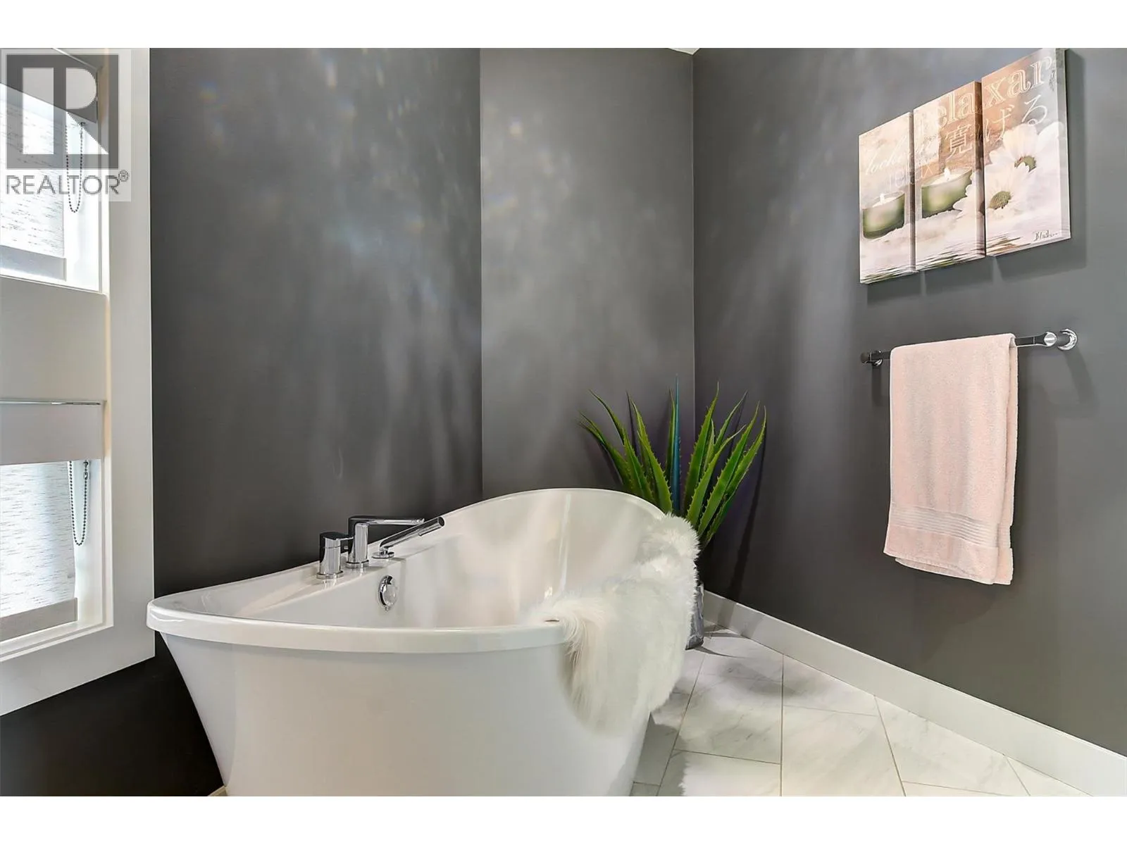 LOCATION, LOCATION â Upper Mission 4-Bedroom with Pool & Lake Views. Stunning 4-bedroom, 3-bathroom home in highly sought-after Upper Mission offering panoramic lake and city views from nearly every room. Bright, open layout with spacious living area, large windows, and a gourmet kitchen featuring granite countertops, generous island, and butlerâs pantry with second fridge. Primary suite includes a walk-in shower; three additional bedrooms plus den provide ample space for family or work-from-home. Walkout basement with expansive windows, soundproofed ceilings, and open design ideal for entertaining, games, or media space. Outdoor living at its finest with saltwater pool, secluded hot tub, covered balcony with awning, and fully fenced low-maintenance yard with artificial turf â perfect for pets and kids. Enjoy ultimate privacy with a property behind that is not suitable for subdivision. Located on a quiet, private 6-home street, just minutes to top-rated schools, parks, trails, wineries, and the new shopping centre (Save-On-Foods, Shoppers, Starbucks). Extras include water in strata fee ($200/month), dual-zone HVAC, wide plank engineered hardwood, and quality finishes throughout. A rare opportunity to own a view property in one of Kelownaâs most desirable neighbourhoods. (id:27476)