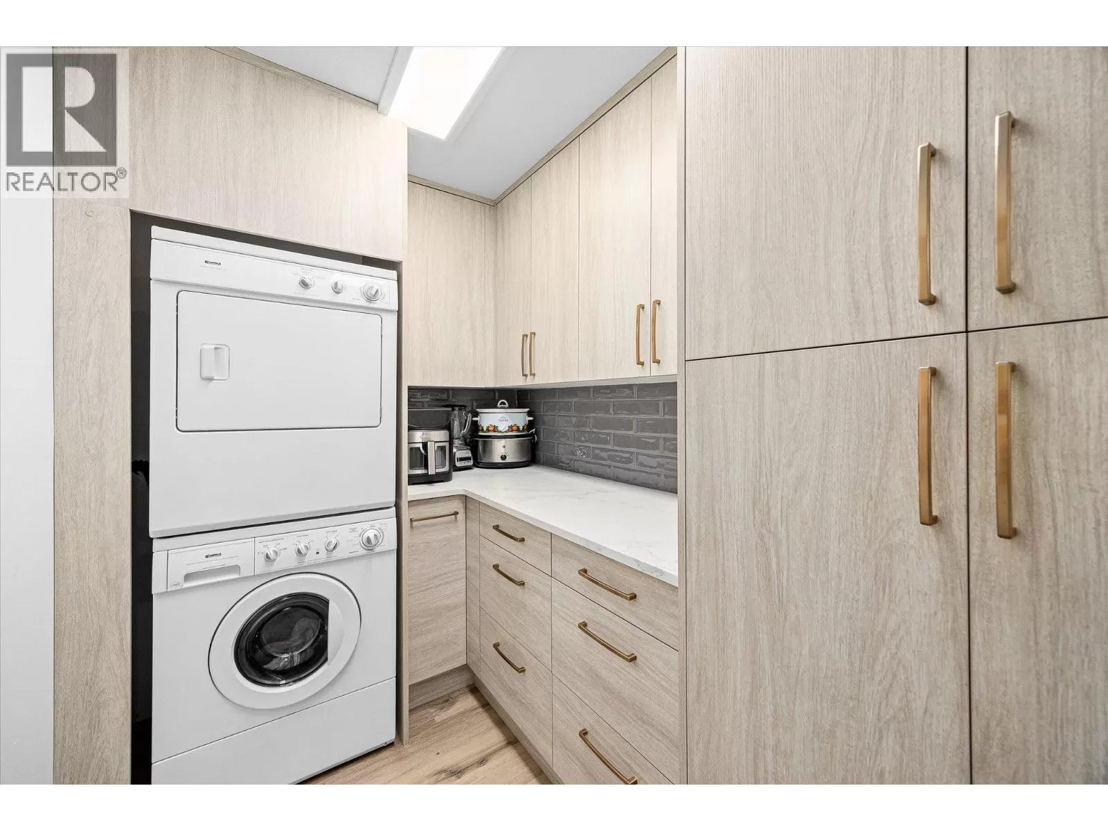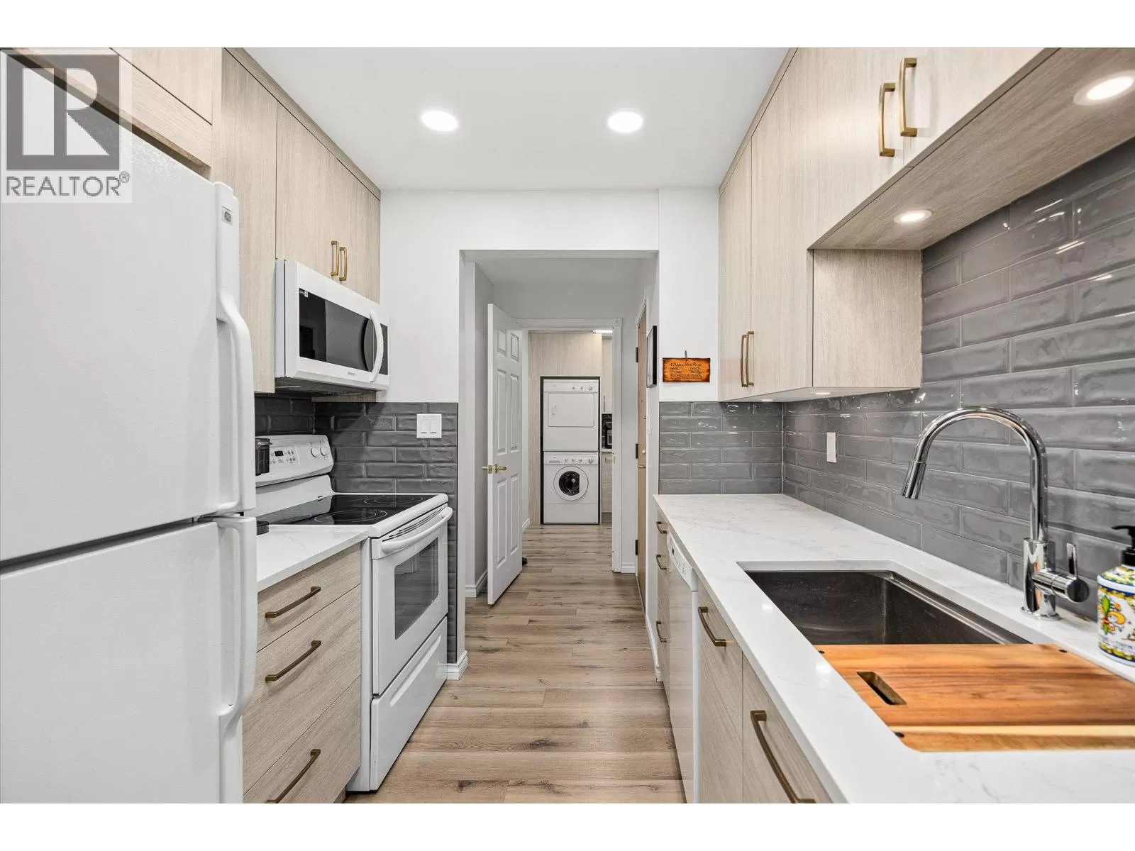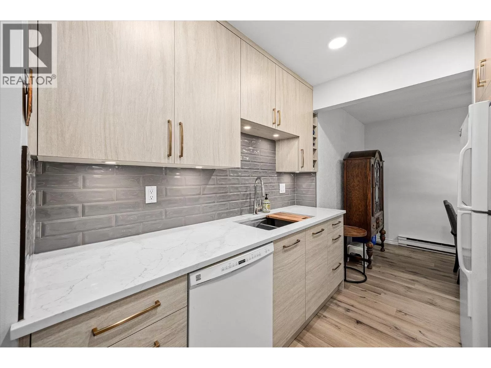 Tastefully renovated condo at The Colonial! Entering the unit, youâre greeted by a thoughtfully updated kitchen complete with luxury finishes like quartz counters, custom cabinetry, modern lighting, and a sizeable pantry/laundry room combo with additional counter/storage space. Furthermore, the unit features two bedrooms, a den, a unique jack-and-jill bathroom setup connecting the 4-piece ensuite to a second 2-piece bath, and a nicely-sized patio space! Residents at The Colonial enjoy great amenities including a social lounge with a kitchen, a library, a fitness area, a games room, and a large dining room! Additionally, the complex boasts a great central location near Kelownaâs downtown core, within walking distance to a wide array of amenities like restaurants, parks, entertainment, and more! (id:27476)