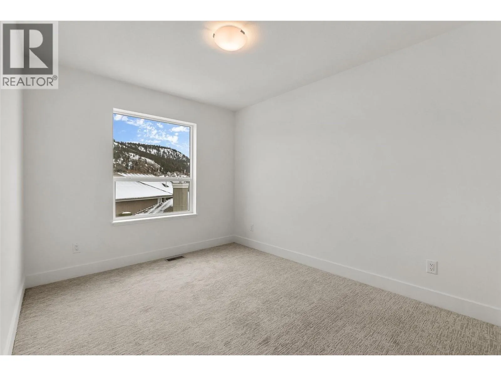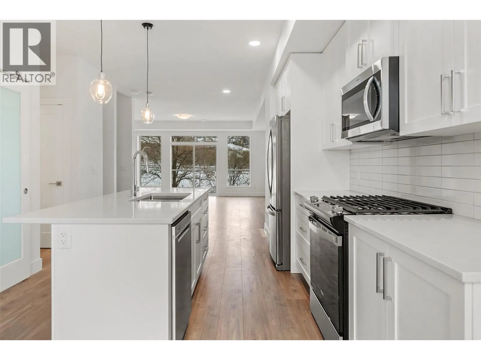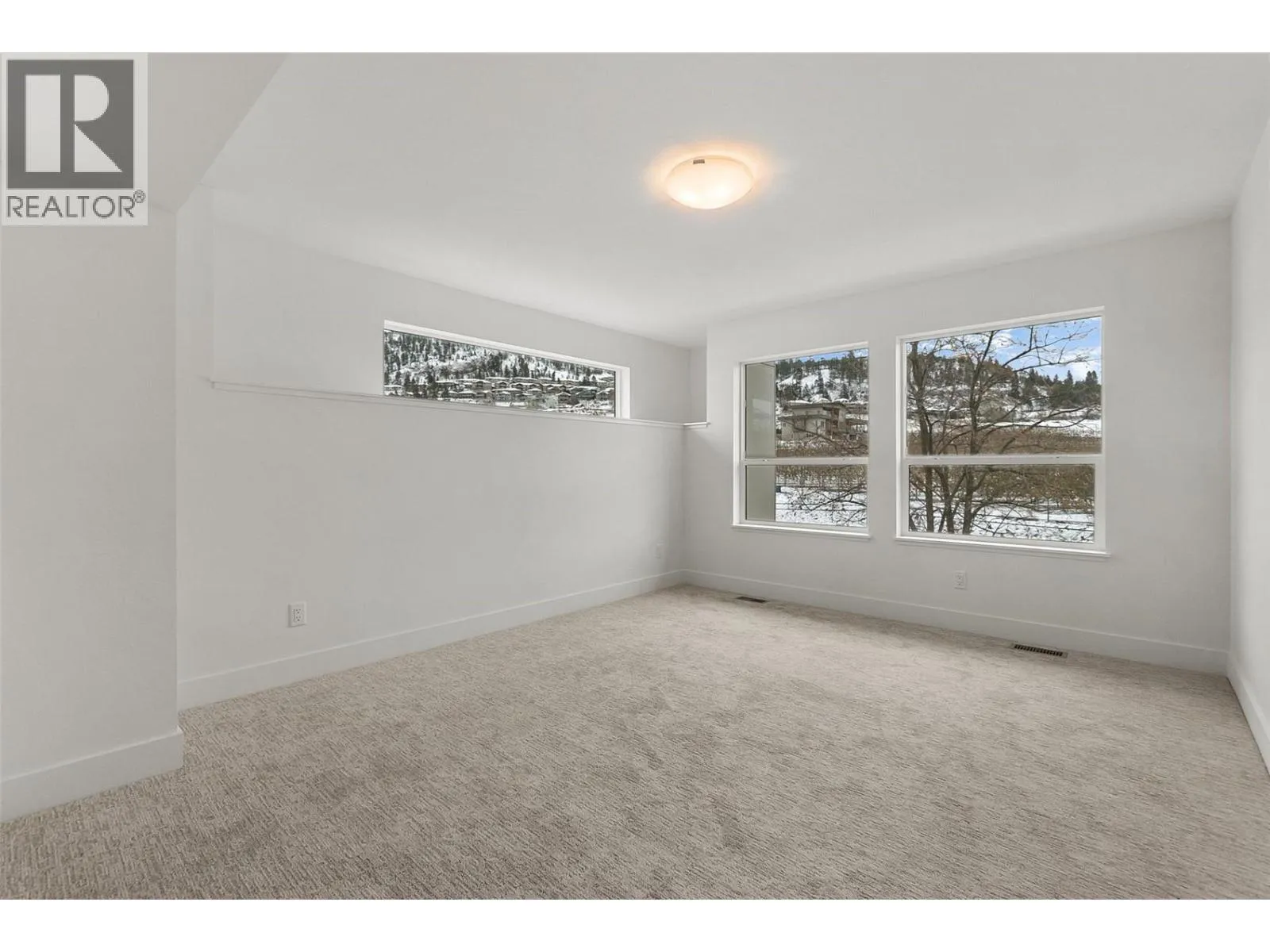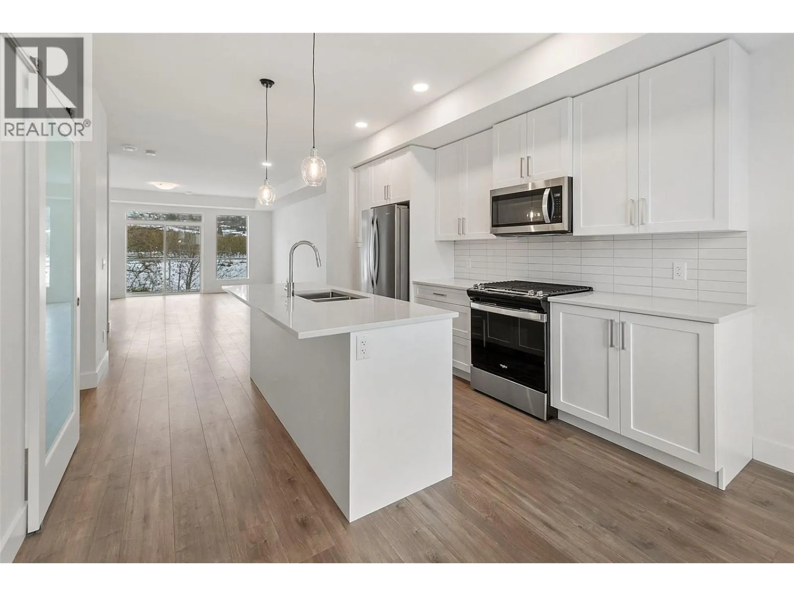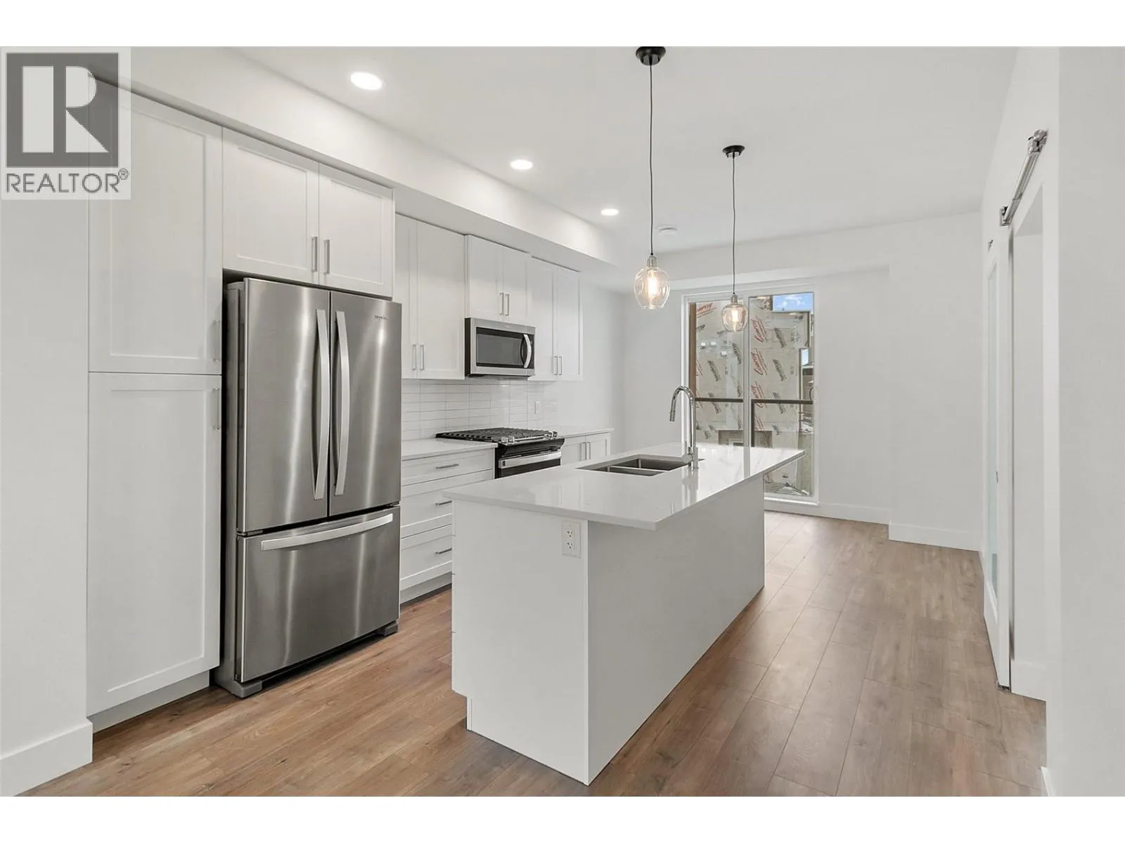 Welcome to Trellis, a modern, stylish townhome community in the heart of Glenmore. This expansive 2,363 sq. ft. residence is one of the largest floorplans in the development, blending generous space with contemporary design. Start your mornings with breathtaking sunrises and end your days with peaceful sunsets from your private rooftop patio, complete with gas hookups, perfect for summer dinners, cozy fall evenings, or year-round entertaining. Inside, the main floor offers a versatile den/office, a bright breakfast nook, a spacious family-style kitchen, and an inviting living room, ideal for both everyday living and hosting friends. Upstairs, youâll find two bright bedrooms, a full bathroom, laundry, and a luxurious primary suite with a walk-in closet and spa-inspired en-suite. The lower level adds even more flexibility with a fourth bedroom or family room and its own en-suiteâperfect for guests, in-laws, or a private retreat. A double side-by-side garage and extra storage closet ensure youâll never run out of space. Located just minutes from downtown Kelowna, surrounded by parks, trails, and top-rated schools, Trellis offers the very best of Glenmore living. Donât miss your chance, book your showing today! (id:27476)