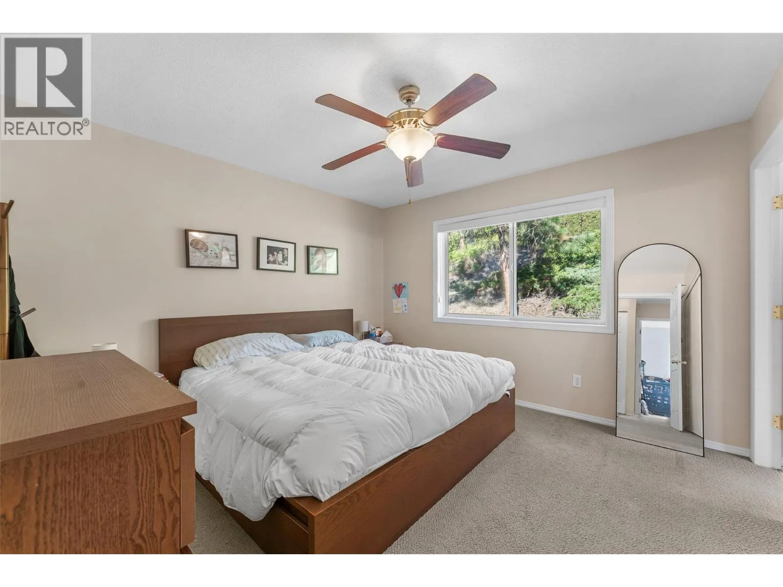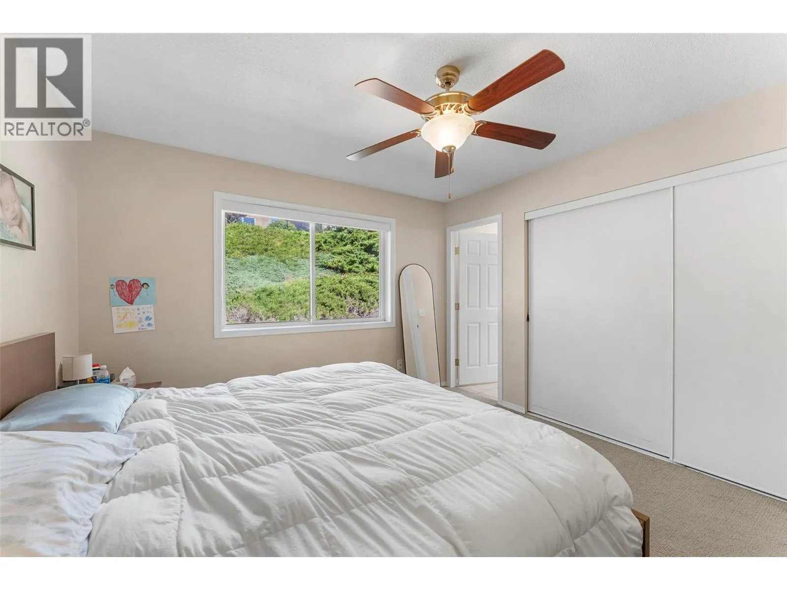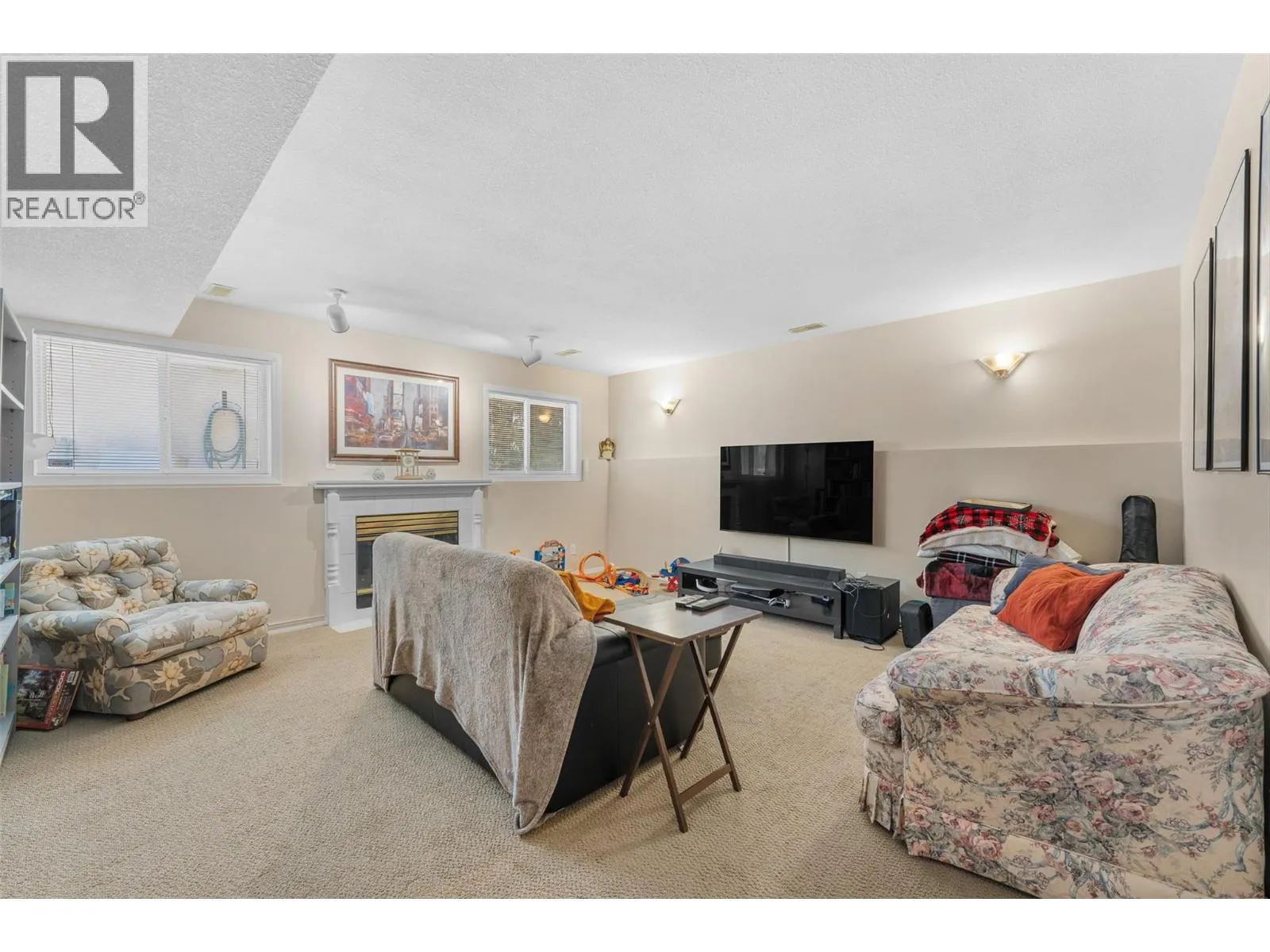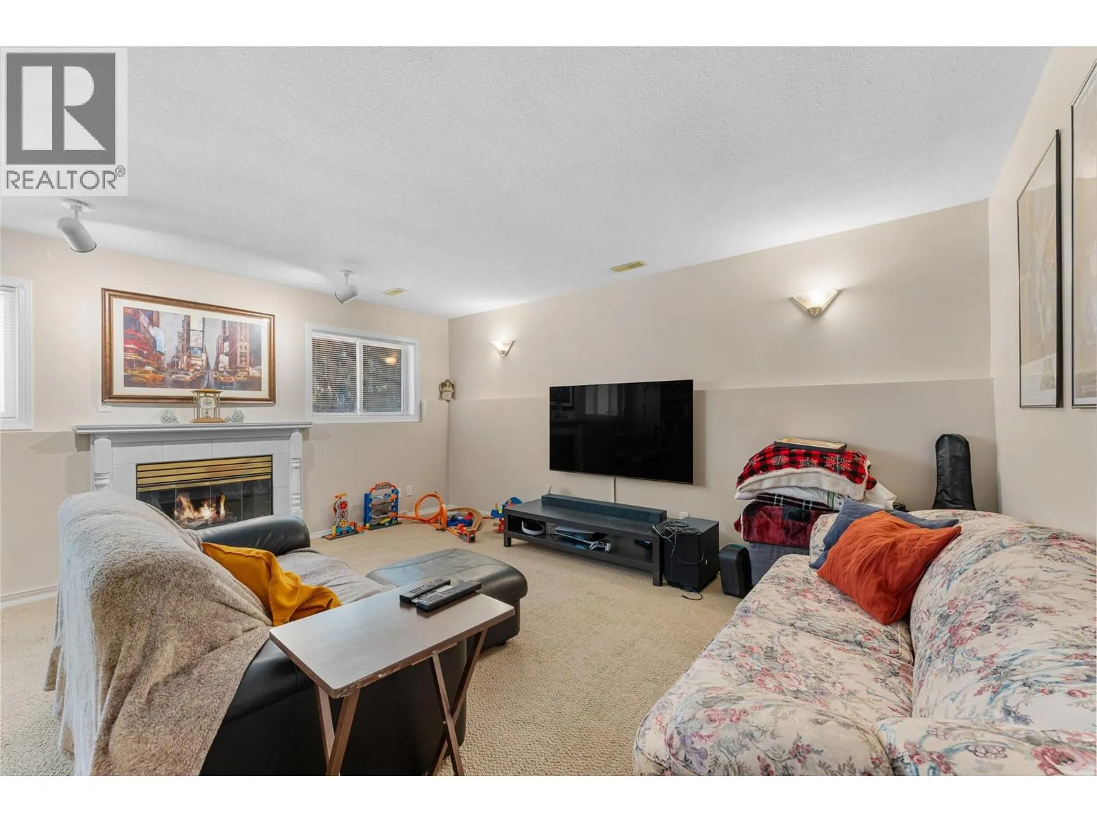 Located on a quiet street in the Glenmore neighbourhood, this 4-bedroom, 3-bath home offers easy access to a nearby community park and is within walking distance to hiking and biking trails. The large, grassy front yard is framed by mature trees and shrubs, with driveway parking for two and an attached double garage with a man-door and window. The main level features a bright living room with bay windows, an adjoining dining area with walkout to a front sundeck, and a kitchen with a peninsula, breakfast nook, and backyard access. Appliances include an LG dishwasher, Whirlpool electric range, Whirlpool fridge, and microwave. The primary bedroom has a double-door closet and 4-piece ensuite. Two additional bedrooms and a 4-piece main bathroom complete the upper floor. The lower level includes a carpeted recreation room, a tiled gas fireplace with a wood mantel, a fourth bedroom or office, laundry, and ample storage. The fully fenced backyard offers a grassy area, mature landscaping, and a back deck. Excellent location just minutes to downtown Kelowna. New HVAC system installed June 2025. (id:27476)