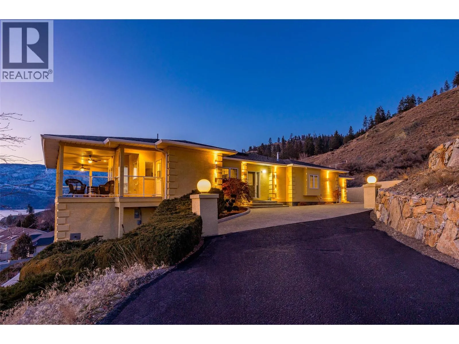 Experience the luxury of penthouse views and total privacyâwithout the rules or costs of strata living. Perched on top of the city yet only minutes from the vibrant downtown core, this exquisite and private hillside estate is nestled into the scenic slopes of Knox Mountain, offering a true âpenthouse-likeâ experience with breathtaking 180-degree lake views. Enjoy high-end living and a low-maintenance lifestyle, all while being surrounded by the established and serene Mount Royal neighbourhood. Inside, the home boasts over $300K in meticulous renovations and features a state-of-the-art kitchen, open-concept living with views from every corner of the home, and two expansive decks perfect for enjoying breathtaking sunsets, city lights, and the serene surroundings. The versatile lower level currently functions as a fully finished 1 bed/ 1 bath legal suite which could easily be converted into an expansive wet bar and entertainment zone to suit your needs. Set on a private 0.4-acre lot, the low-maintenance yard ensures tranquility and privacy, with ample parking for an RV or boat. Located within minutes of scenic walking trails, beaches, boat launch, dog park, and the bustling downtown core â This home is the epitome of luxury, privacy, and convenience, offering the ultimate elevated lifestyle. Contact our team for a full feature list and to book your private viewing of this incredible home. (id:27476)