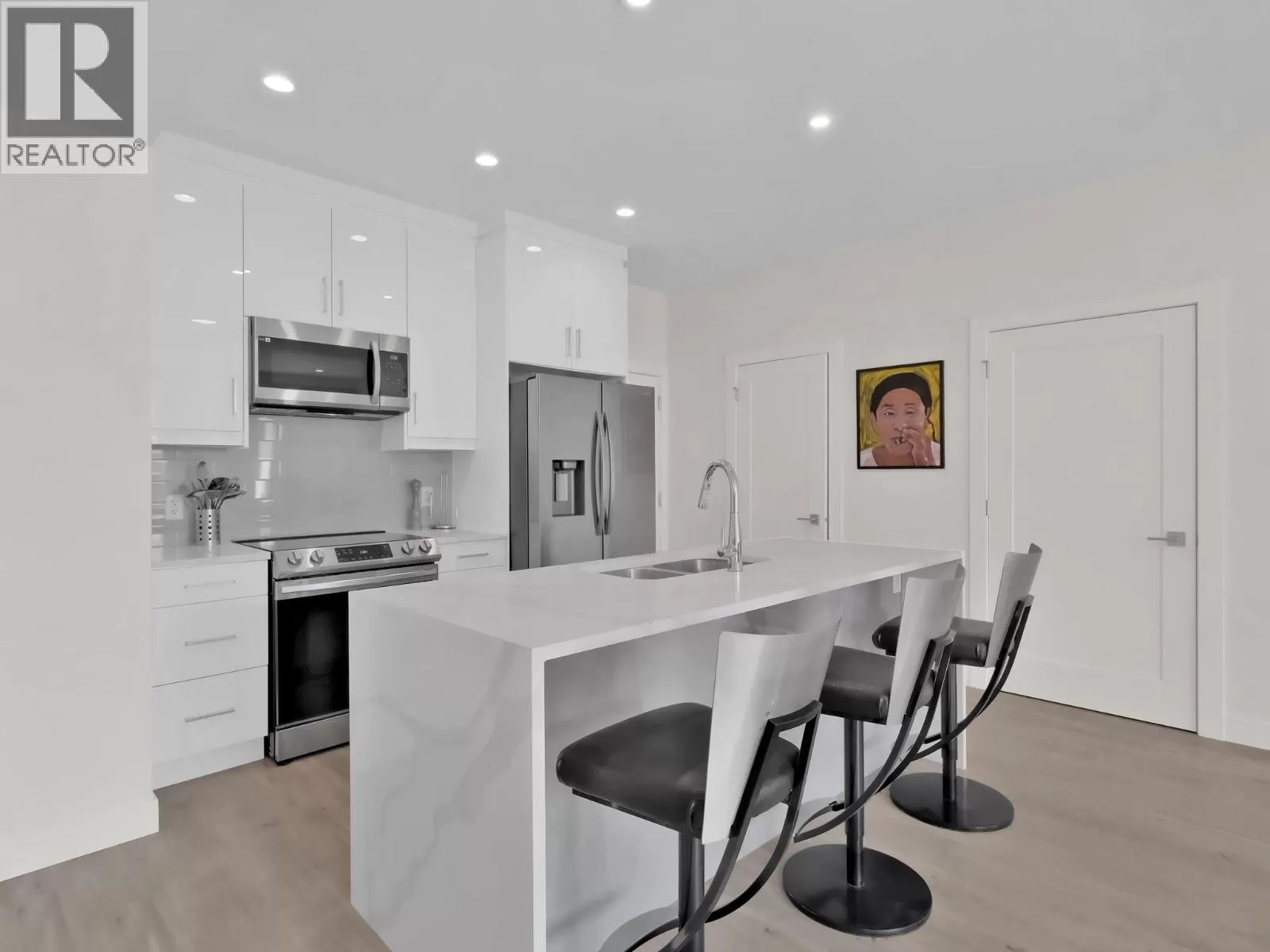 Located in the heart of family friendly Glenmore, this nearly new 3-bedroom, 2.5-bathroom townhome (NO GST) combines modern style, comfort, and convenience. The bright open concept main floor features 9' ceilings and a gourmet kitchen with full height cabinetry, an oversized quartz waterfall island, stainless steel appliances, and plenty of extra storage. Upstairs, you'll find the primary suite with a walk-in closet and spa inspired ensuite, plus two additional bedrooms, a full bathroom, a dedicated laundry room, and a bonus storage closet. Fully fenced yard that is perfect for kids and pets. Attached double garage and full crawl space for even more storage! Within walking distance to North Glenmore Elementary, Dr. Knox Middle School, shops, dining, and parks, and just 15 minutes from downtown Kelowna, UBCO, and the airport. This pet-friendly community allows two dogs of any size or breed. Quick possession possible! (id:27476)