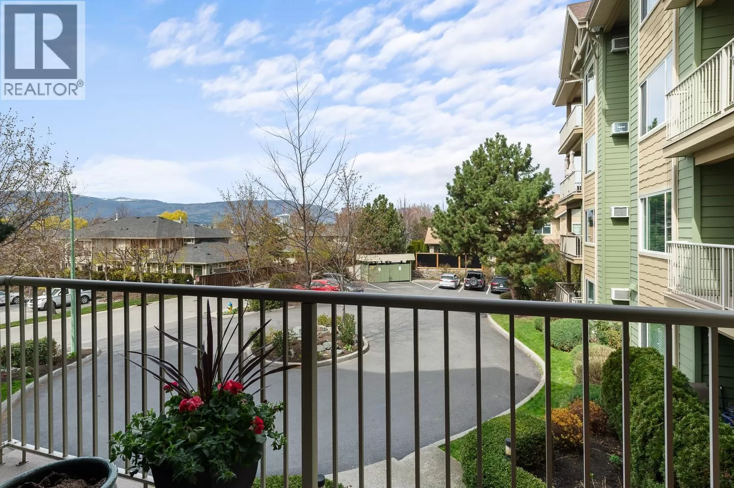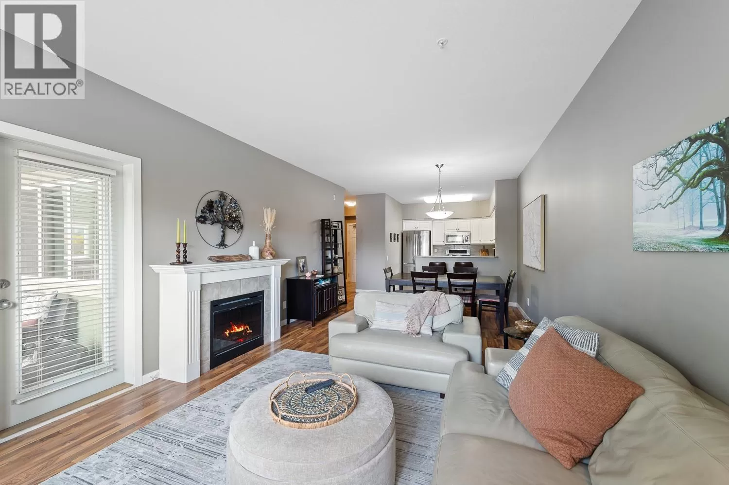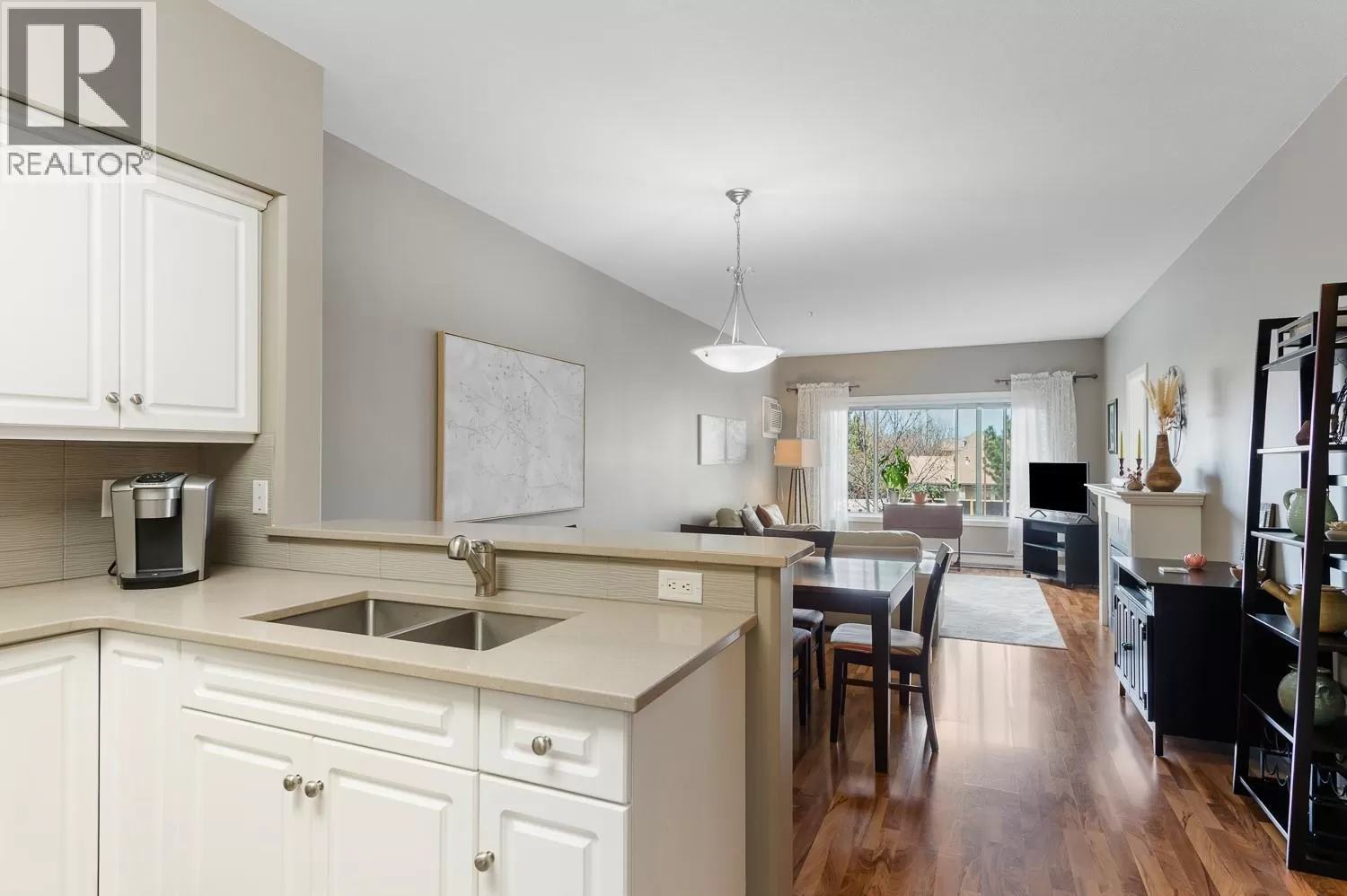 ""QUIET SIDE ""- Welcome to Wildwood Village, ideally located in the heart of Kelownaâs highly desirable Lower Mission. This beautifully updated 2-bedroom, 2-bathroom home offers 1,088 sq. ft. of functional and comfortable living space. With 9-foot ceilings, easy-care laminate flooring, and a cozy fireplace, the open-concept layout is both stylish and inviting. The updated kitchen is designed with high-end stainless steel LG appliances, quartz countertops and a raised eating barâperfect for casual dining or entertaining. Step outside to the spacious, covered deck, ideal for soaking in the Okanagan sun or enjoying a summer BBQ. The primary ensuite includes a walk-in shower, while the large in-suite laundry room provides additional storage or pantry space. Very healthy contingency and well run strata. This home also comes with a secure underground parking stall and lots of extra outdoor spots for an additional car or guests plus a storage locker. The building offers excellent amenities, including a guest suite. Perfectly situated across from the H2O Centre, MNP Place, sports fields, hockey rinks, transit and the Mission Creek Greenway with Okanagan Lake, parks, beaches, golf courses, coffee shops, and restaurants all just minutes away. Move-in ready and waiting for you. The plumbing throughout building has been replaced and fully paid for. Pet-friendly 1 dog (under 14"" at the shoulder) or 1 cat (id:27476)