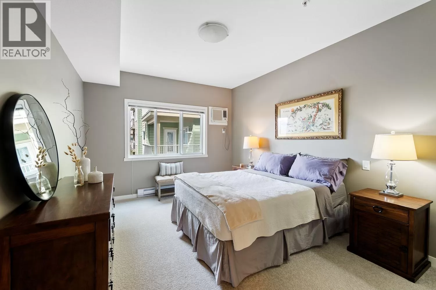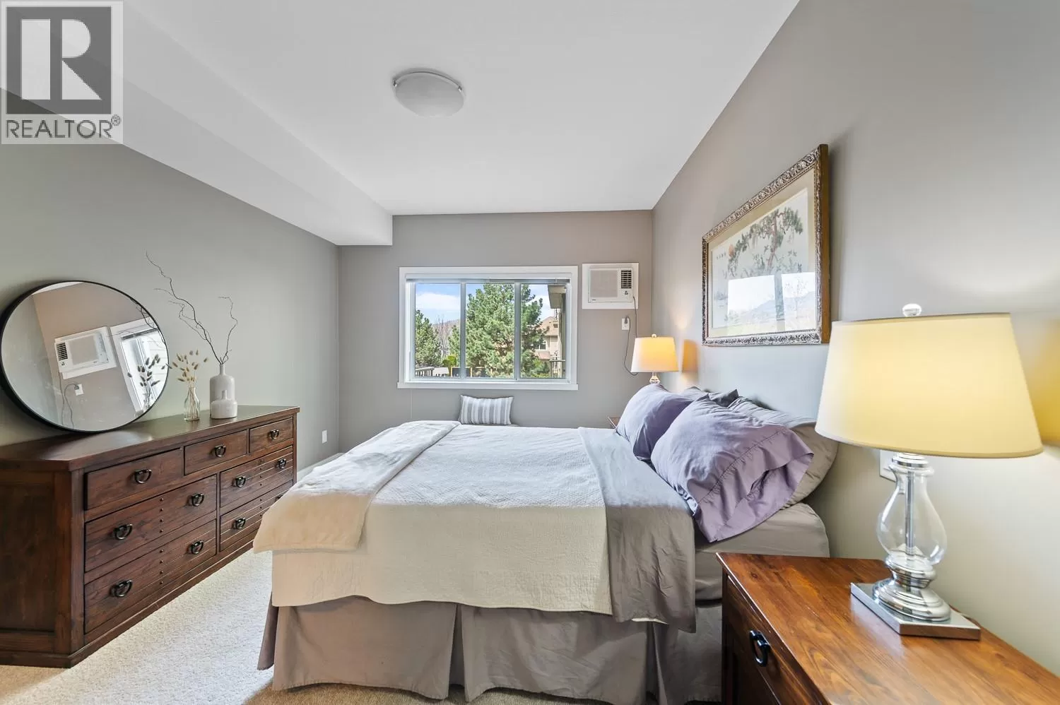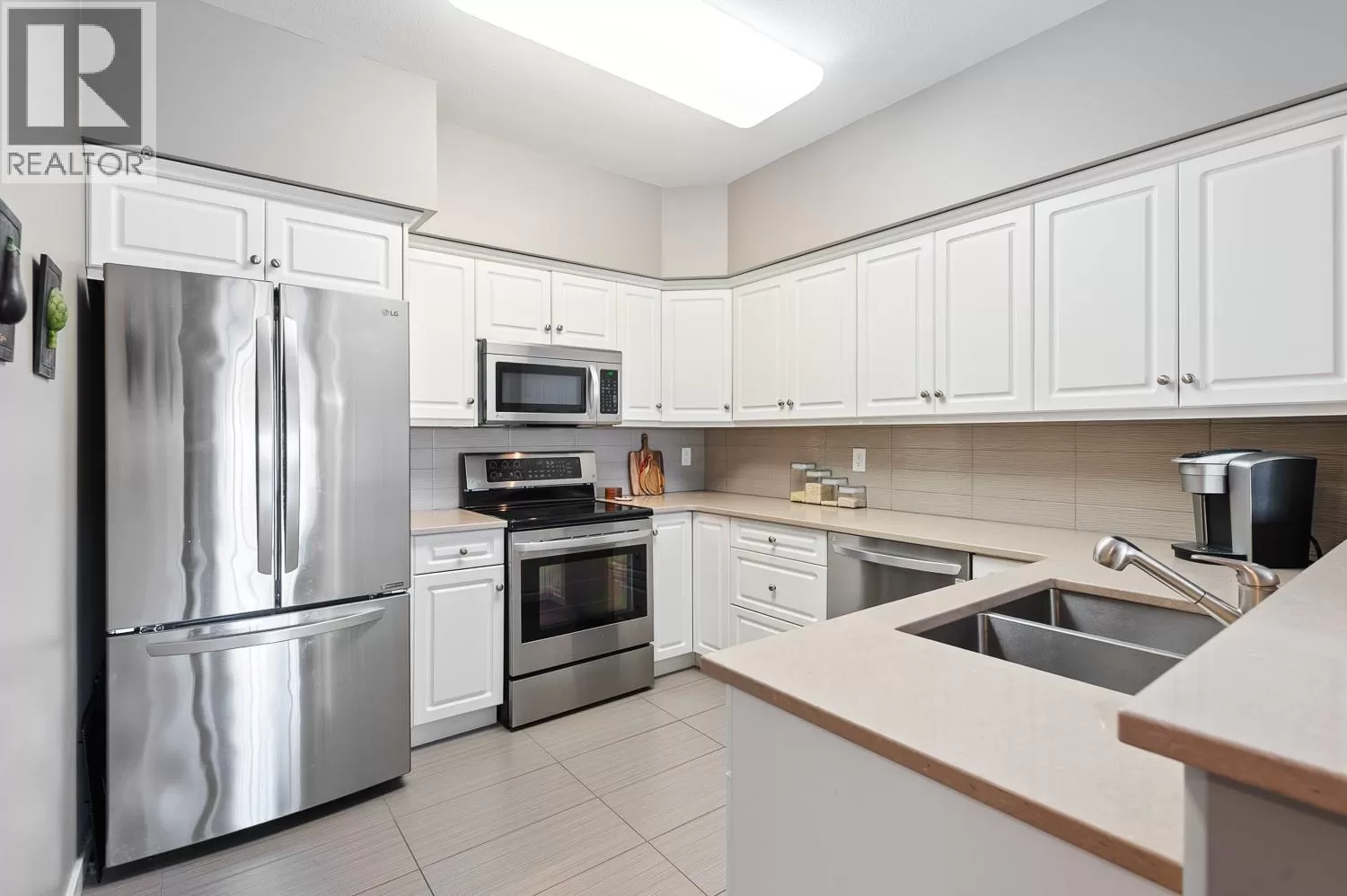 ""QUIET SIDE ""- Welcome to Wildwood Village, ideally located in the heart of Kelownaâs highly desirable Lower Mission. This beautifully updated 2-bedroom, 2-bathroom home offers 1,088 sq. ft. of functional and comfortable living space. With 9-foot ceilings, easy-care laminate flooring, and a cozy fireplace, the open-concept layout is both stylish and inviting. The updated kitchen is designed with high-end stainless steel LG appliances, quartz countertops and a raised eating barâperfect for casual dining or entertaining. Step outside to the spacious, covered deck, ideal for soaking in the Okanagan sun or enjoying a summer BBQ. The primary ensuite includes a walk-in shower, while the large in-suite laundry room provides additional storage or pantry space. Very healthy contingency and well run strata. This home also comes with a secure underground parking stall and lots of extra outdoor spots for an additional car or guests plus a storage locker. The building offers excellent amenities, including a guest suite. Perfectly situated across from the H2O Centre, MNP Place, sports fields, hockey rinks, transit and the Mission Creek Greenway with Okanagan Lake, parks, beaches, golf courses, coffee shops, and restaurants all just minutes away. Move-in ready and waiting for you. The plumbing throughout building has been replaced and fully paid for. Pet-friendly 1 dog (under 14"" at the shoulder) or 1 cat (id:27476)