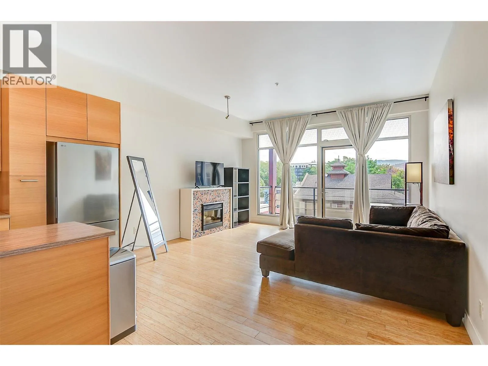 Modern contemporary 1-bedroom corner unit located in the highly desirable Cannery Lofts, located in the heart of Kelowna's vibrant Cultural District on Ellis Street. Designed by the award-winning Meiklejohn Architects, The Cannery Lofts is one of Kelowna's most sought-after low-rise buildings. This particular unit offers a very convenient lifestyle due to its central location, with coffee shops, gyms, restaurants, and the beach just a few blocks away. For outdoor enthusiasts, Knox Mountain is practically in your backyard. This property is an ideal starter home or investment unit. It includes one underground parking stall and boasts low monthly strata fees. The condo features a bright kitchen with stainless steel appliances, including a gas stove, flowing seamlessly into an open-concept living area. The generously sized dining room is a functional space that could easily serve as a study area for a work-from-home professional or student. Additionally, the covered deck off the living room provides a lovely spot to enjoy fresh air and the vibrant sounds of downtown. This contemporary unit is rentable and is within a short walk to shops, the waterfront, galleries, and more. Pets are also welcome: either one dog (30"" at the shoulder) or two cats, or two dogs with a combined shoulder height of 30"". (id:27476)