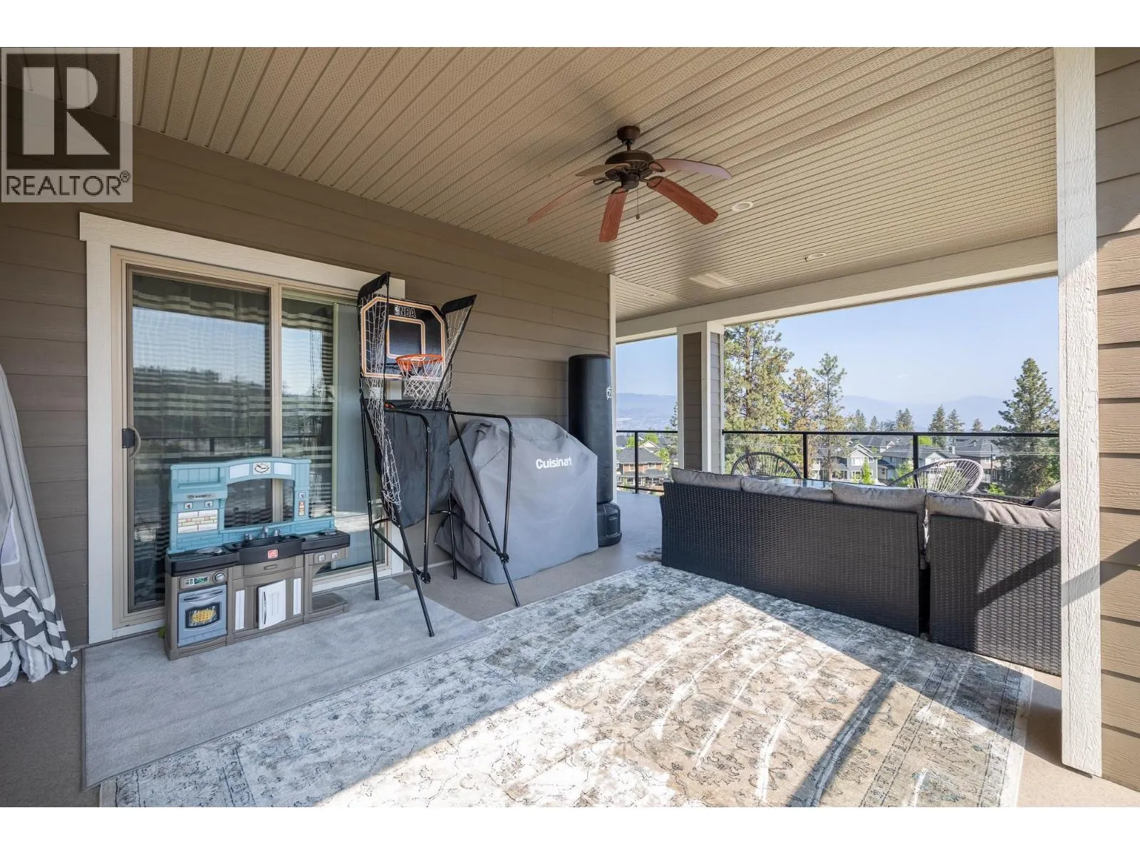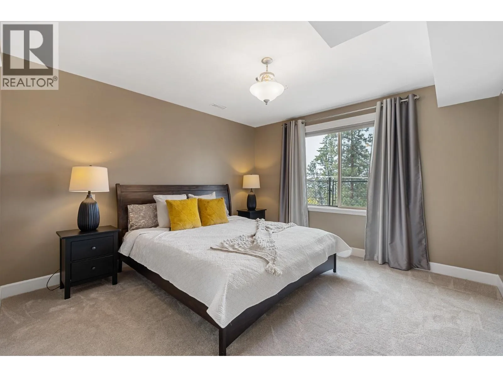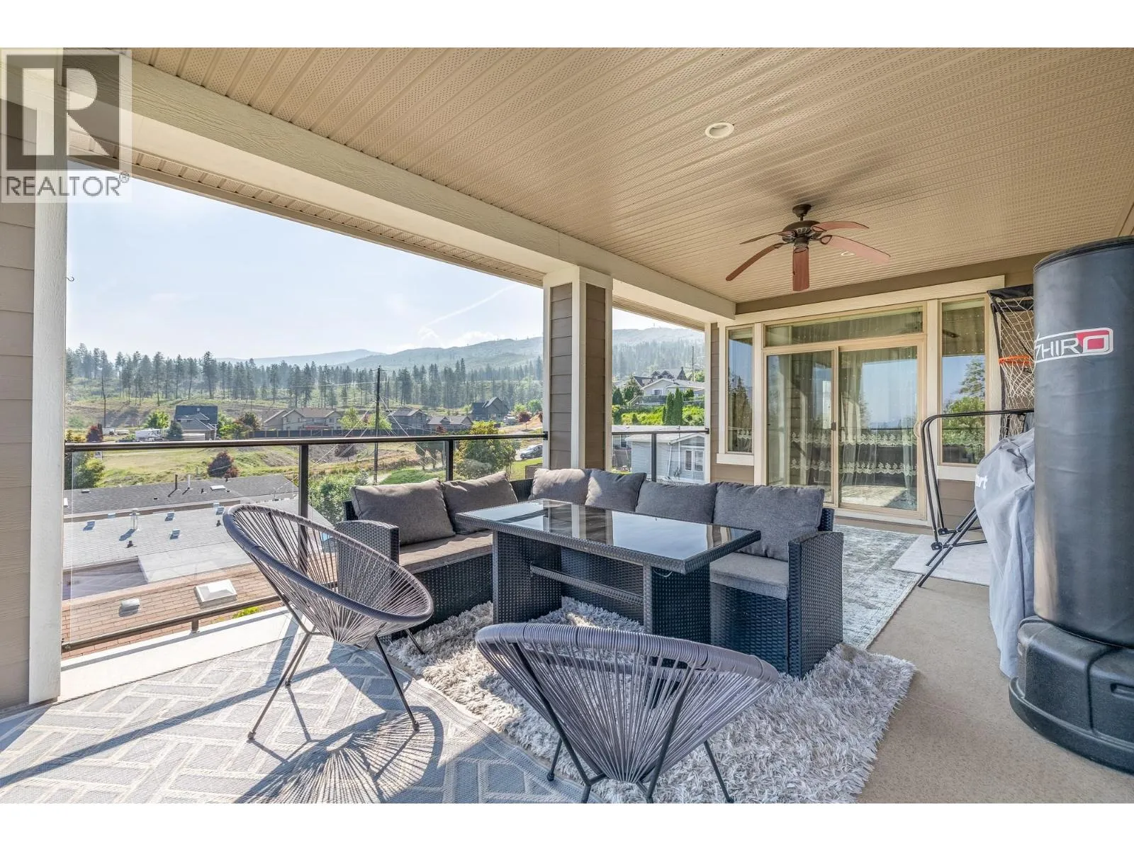 Exceptional 6-Bed, 4-Bath Custom Home with Legal Suite in Kettle Valley Nestled in a quiet cul-de-sac in the highly desirable Kettle Valley neighborhood, this exquisite 3,129 sq. ft. custom-built home combines timeless design, modern amenities, and versatile living spaces. Featuring a legal 3-bedroom suite, expansive double garage, and ample parking, this property is a rare gem in one of Kelowna's most coveted communities. The main floor boasts a bright, open-concept layout with soaring vaulted ceilings and large windows that capture sweeping views of the lake and surrounding mountains. The gourmet kitchen is a true highlight, offering a gas range, a central island, and custom cabinetry, all seamlessly flowing into the spacious living and dining areas. Sliding doors from the dining room lead to a generous covered wrap-around balcony, complete with a gas hook-up perfect for year-round outdoor entertaining. The master retreat is a serene sanctuary, featuring a king-sized bedroom, a walk-in closet, and ensuite with a luxurious separate shower. Two additional well-appointed bedrooms, a full bathroom, and a convenient laundry complete the main floor. Downstairs, the fully self-contained 3-bedroom suite offers the ideal space for extended family, guests, or rental income. With its own entrance, the suite features a spacious living room, a separate dining area, and a private walk-out balcony. The suite also includes two generous bedrooms, master with an ensuite bathroom. (id:27476)