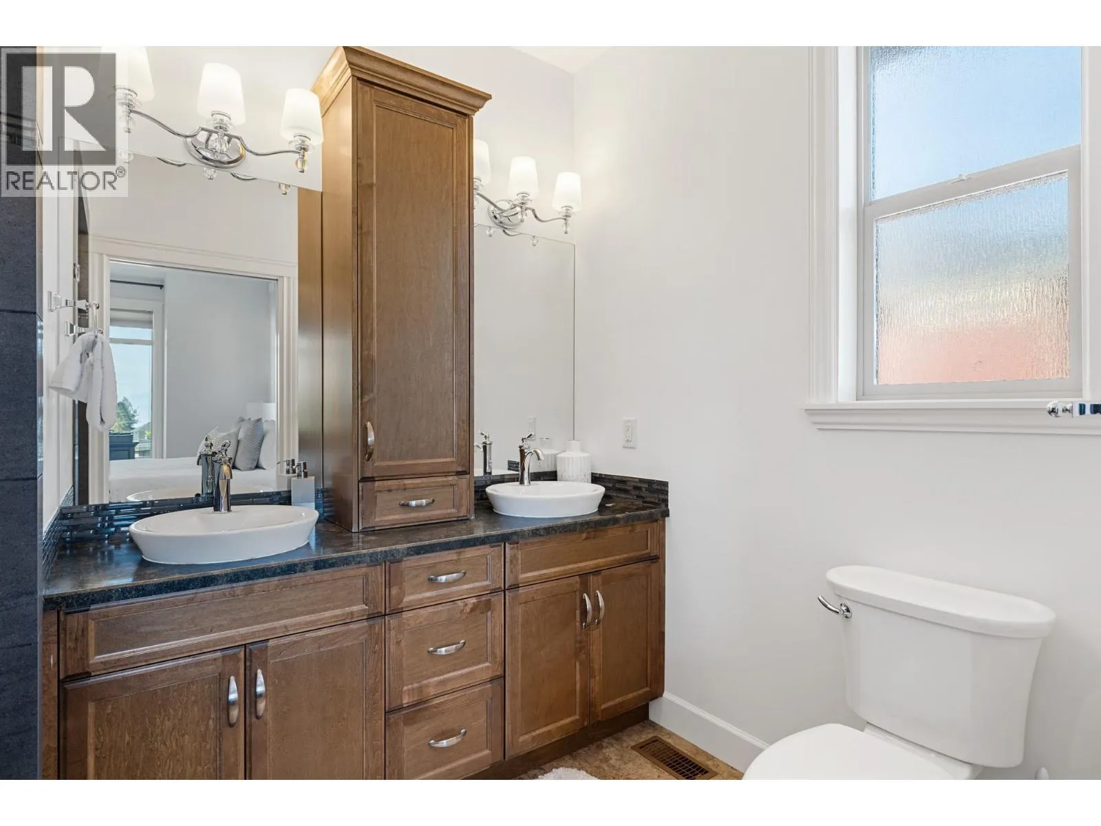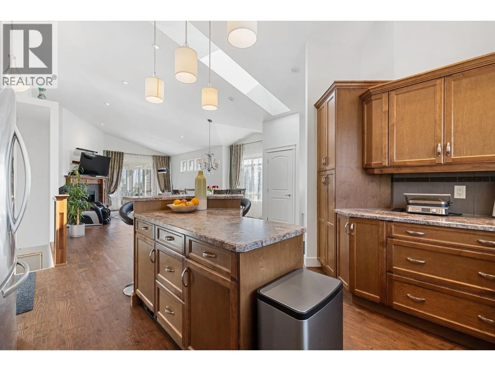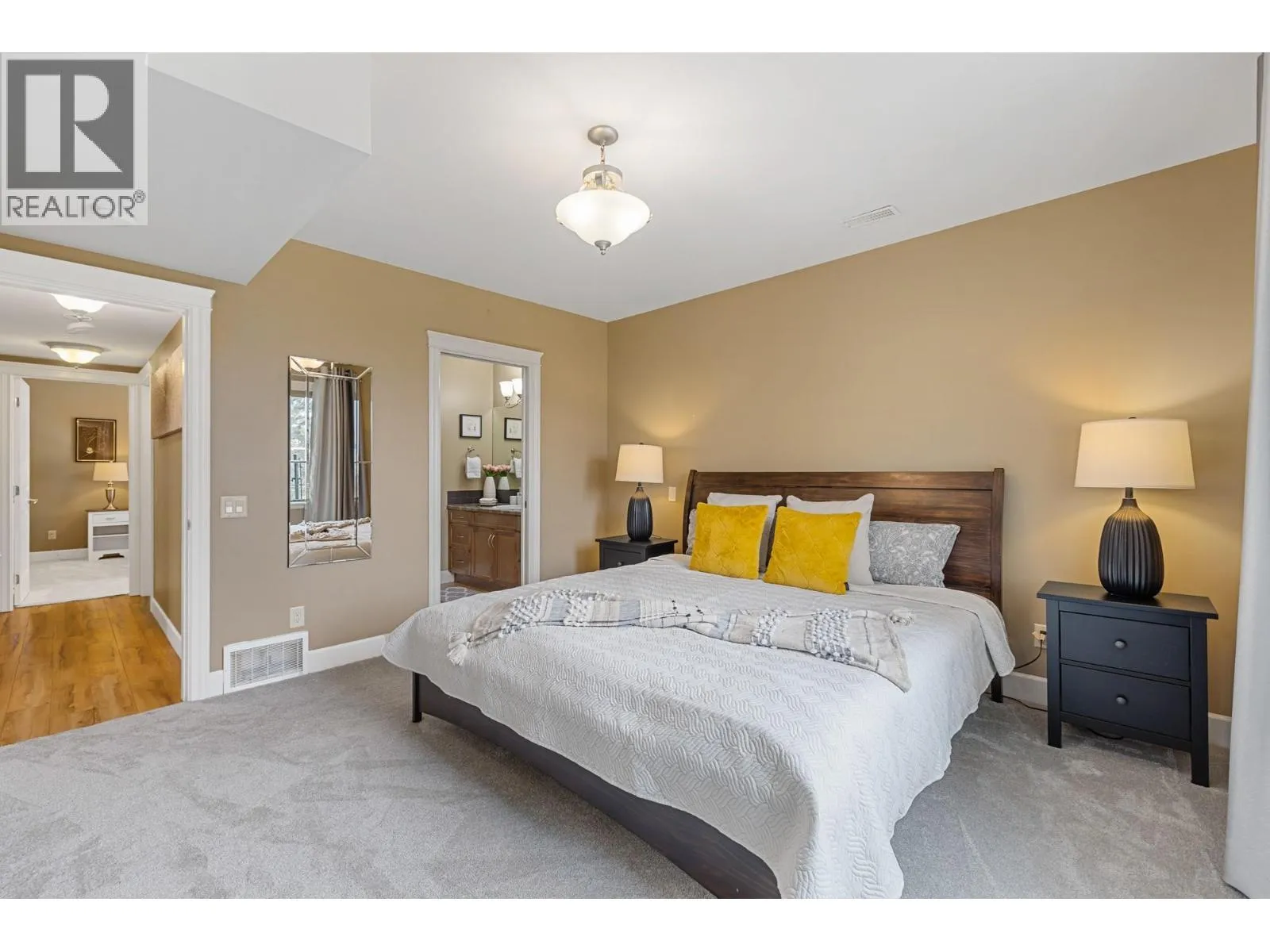 Exceptional 6-Bed, 4-Bath Custom Home with Legal Suite in Kettle Valley Nestled in a quiet cul-de-sac in the highly desirable Kettle Valley neighborhood, this exquisite 3,129 sq. ft. custom-built home combines timeless design, modern amenities, and versatile living spaces. Featuring a legal 3-bedroom suite, expansive double garage, and ample parking, this property is a rare gem in one of Kelowna's most coveted communities. The main floor boasts a bright, open-concept layout with soaring vaulted ceilings and large windows that capture sweeping views of the lake and surrounding mountains. The gourmet kitchen is a true highlight, offering a gas range, a central island, and custom cabinetry, all seamlessly flowing into the spacious living and dining areas. Sliding doors from the dining room lead to a generous covered wrap-around balcony, complete with a gas hook-up perfect for year-round outdoor entertaining. The master retreat is a serene sanctuary, featuring a king-sized bedroom, a walk-in closet, and ensuite with a luxurious separate shower. Two additional well-appointed bedrooms, a full bathroom, and a convenient laundry complete the main floor. Downstairs, the fully self-contained 3-bedroom suite offers the ideal space for extended family, guests, or rental income. With its own entrance, the suite features a spacious living room, a separate dining area, and a private walk-out balcony. The suite also includes two generous bedrooms, master with an ensuite bathroom. (id:27476)