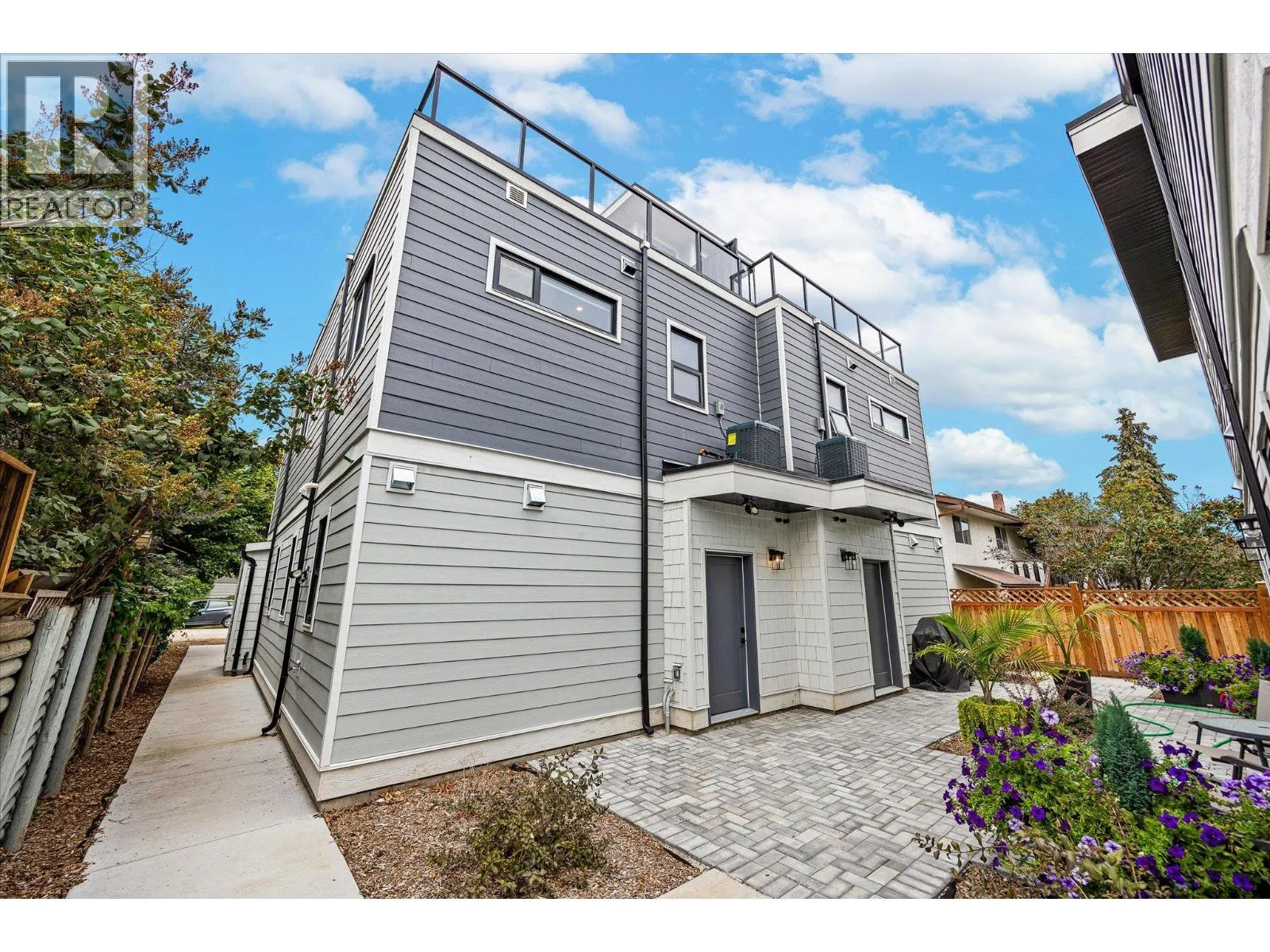 GST IS PAID !!!!! Unique Rooftop Oasis in Kelowna South â Rare Opportunity Not to Miss Unlock an Exclusive Buyer Bonus Package of up to $5,000 with this home. Use it toward legal fees, strata costs, or put it toward furnishing your new spaceâthe choice is yours. Brand-new 3-bed, 3-bath half-duplex with 1,473 sq. ft. of modern living, steps from Pandosy Village, Kelowna General Hospital, and the beach. Bright open-concept layout with quartz counters, custom cabinetry, and gas range. The primary suite boasts a spa-inspired ensuite with heated floors, dual sinks, and glass shower. An oversized rooftop patioârare in Kelowna Southâsets this home apart, perfect for entertaining under the Okanagan sun. A private 19â x 12â7â garage fits a mid-size truck or SUV with space for bikes, motorcycles, or a home gym. With central heating/cooling, full warranty, and lock-and-leave ease, this is a true turnkey lifestyle residence. Contact us today to learn which bonus options are available. (id:27476)