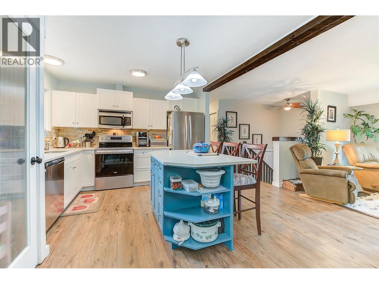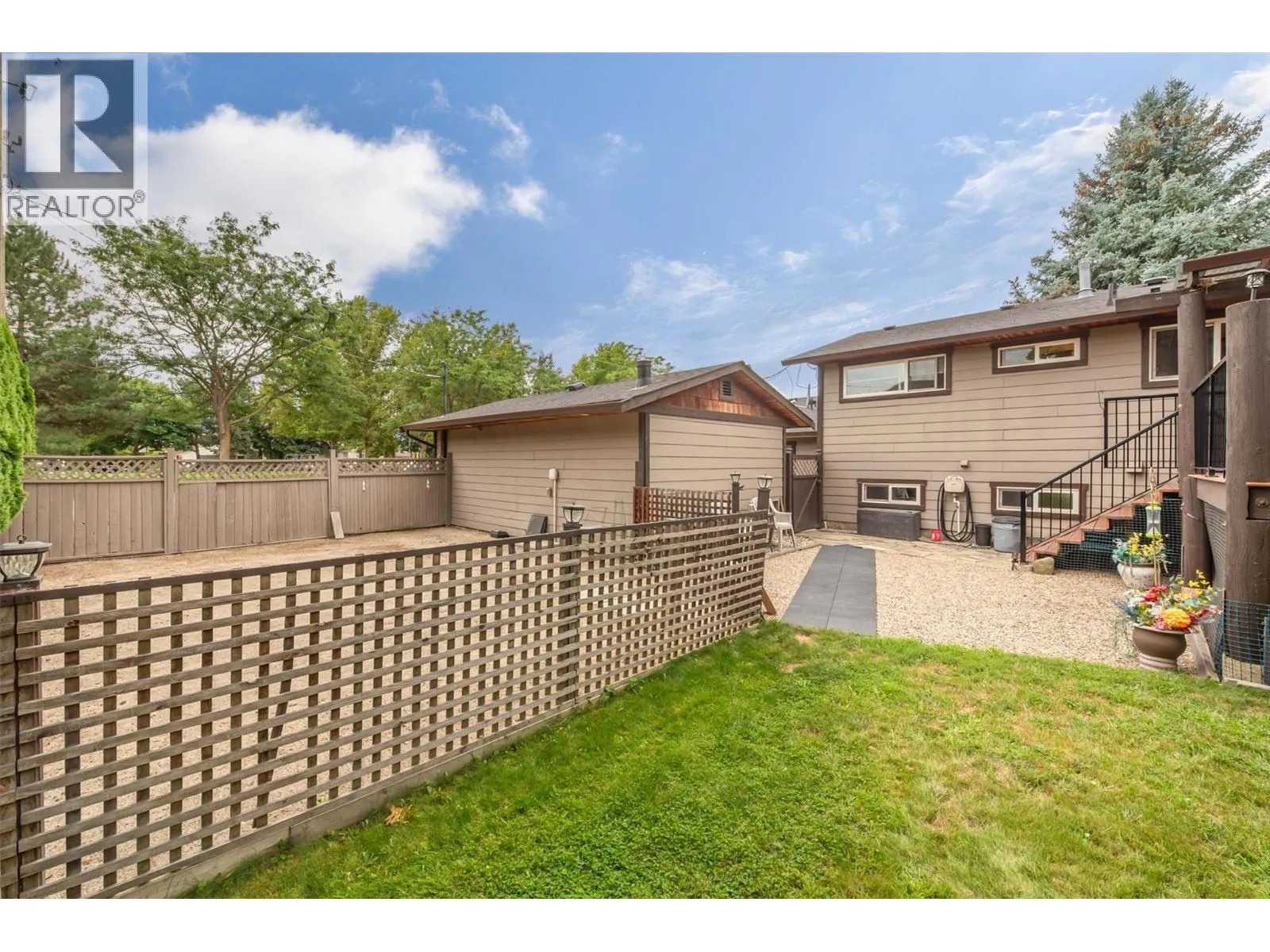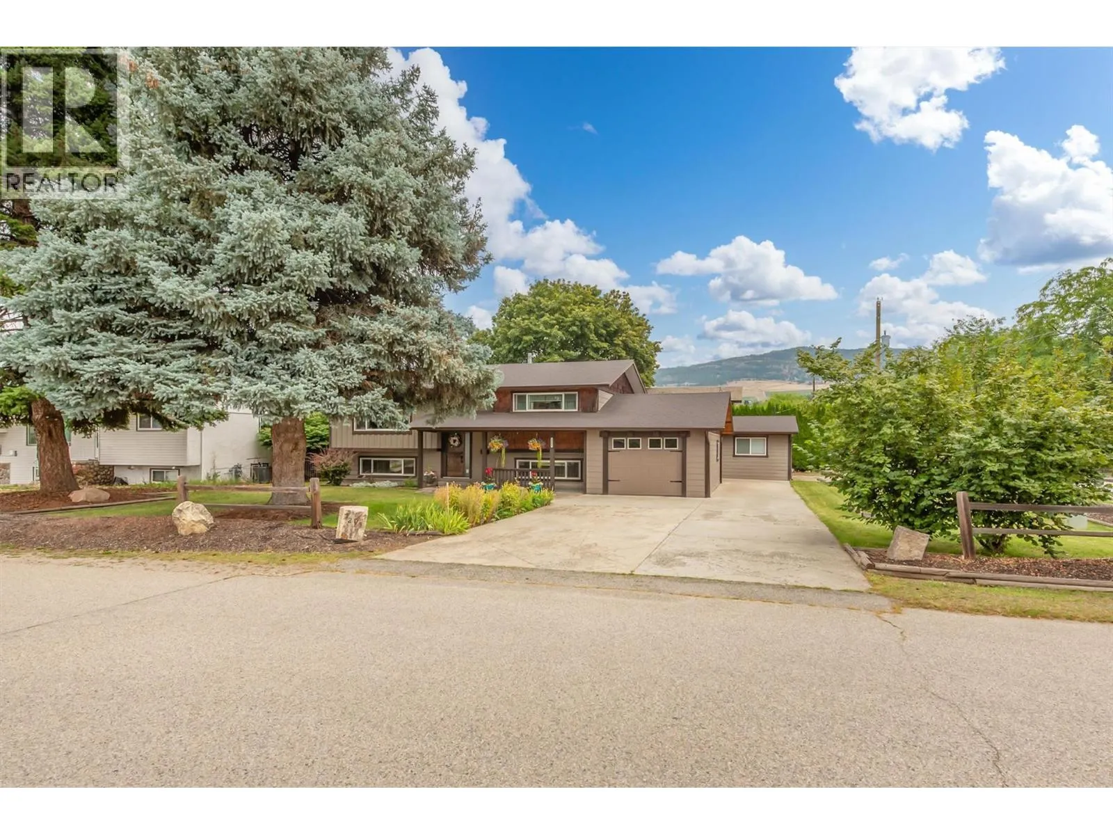 Welcome to this move-in ready, nicely updated 3 bedroom, 2 bath home on a private corner lot in North Rutland, located at Irene and Sumac. The main level features a bright kitchen with quartz countertops, gorgeous new stainless steel appliances and a mix of vinyl plank and carpet flooring. The lower level includes a convenient bar kitchen, offering excellent flexibility for entertaining or extended family. This home has benefited from numerous updates: roof (2016), hot water tank (2021), furnace (2022), A/C (2014), deck (2020), railings (2025), quartz counters (2016), irrigation system (2017), and flooring (2016). A built-in vacuum adds to the everyday convenience. The yard is large, flat and private - fully equipped with underground irrigation, making lawn care easy and efficient. In addition to the attached garage, an outstanding feature of this property is a second, detached garage/shop, perfect for storage, hobbies, or projects. As if that wasn't enough, there is sufficient space to park a large boat AND RV on this corner lot. This is a fantastic home, property, location AND value. Please make arrangements for a private viewing. (id:27476)