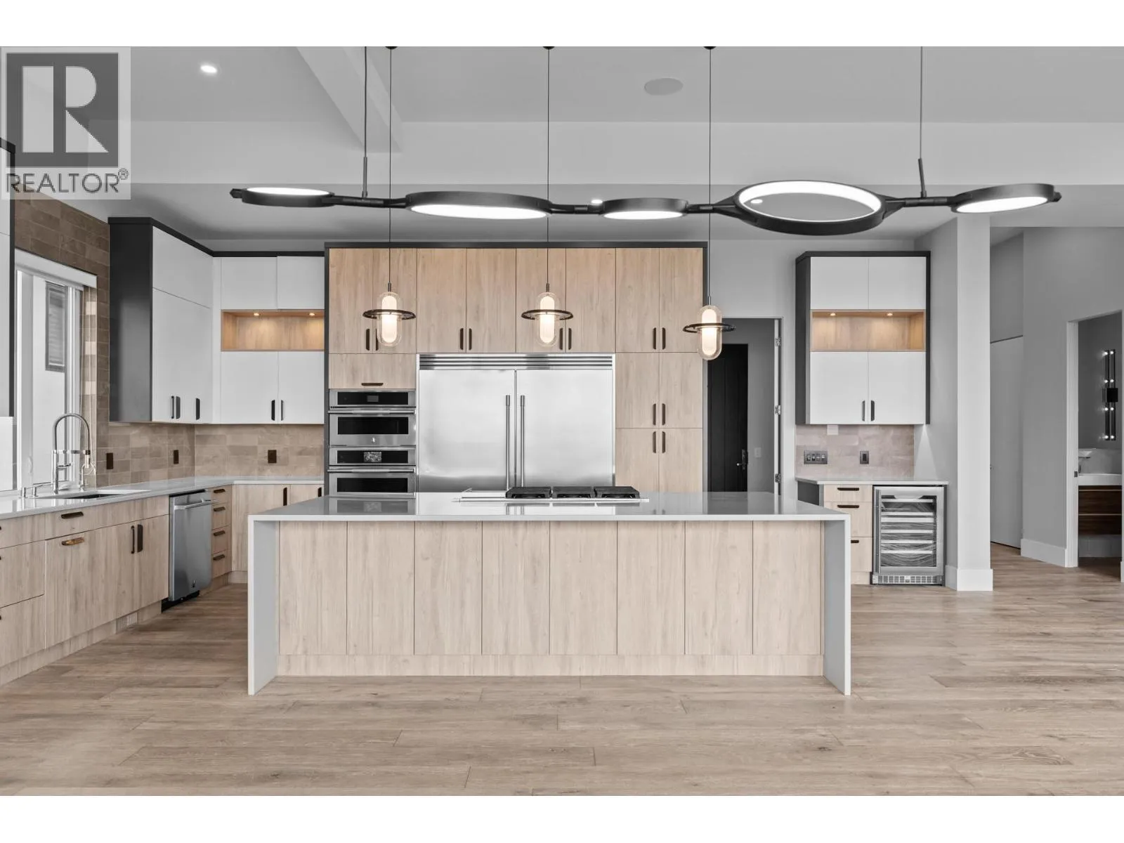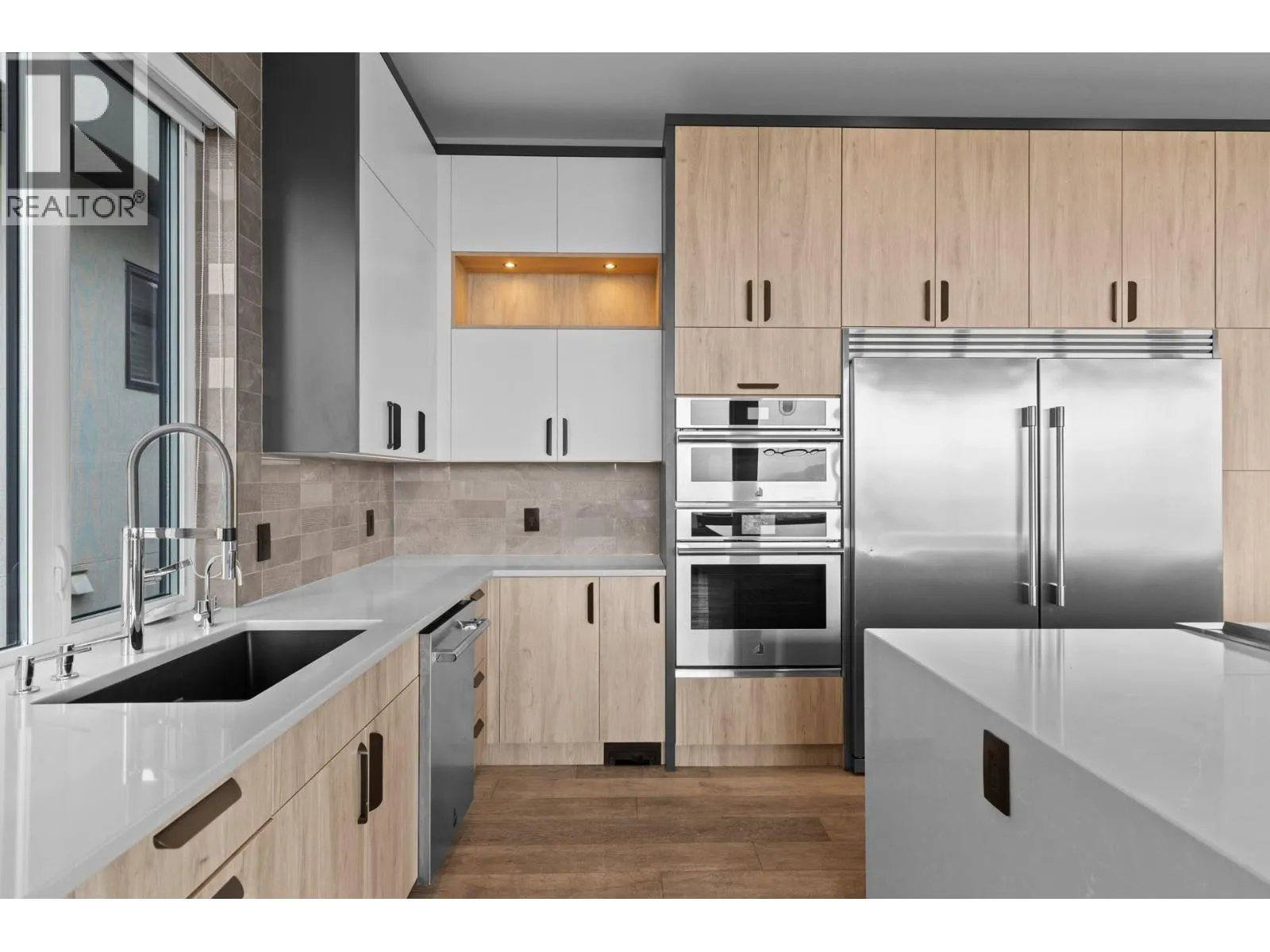 This 4,500+ sq.ft. custom-built residence is loaded with extras and captures sweeping lake, city, and valley views from all 3-levels. With 7 bedrooms including a legal one-bedroom suite, soaring ceilings, and modern architecture, this home embodies Okanagan lifestyle. The main level impresses with soaring ceilings, sleek modern design, and a chef-inspired kitchen that flows seamlessly into the dining and great room. Oversized sliding doors open to a huge covered deck, perfectly framing the panoramic views and extending your living space outdoors into all four seasons. Upstairs, youâll find four bedrooms, including an oversized primary retreat with private balcony, spa-inspired ensuite featuring a soaker tub and steam shower, plus a walk-in closet that you both will love. The walkout lower level is built for entertaining with a family room and a fully outfitted wet bar with ice maker, dishwasher, and fridge. A flexible 6th bedroom/flex space plus legal one-bedroom suite with separate entry and laundry complete this floor. The backyard has ample family space with a 16×32 saltwater pool featuring fountains and an auto cover. The extended heated garage provides extra room for vehicles, storage, or workshop space. Located close to the new Village at The Ponds shopping centre and Canyon Falls Middle School, with hiking trails, beaches, and wineries just minutes awayâthis property offers the best of Upper Mission living. (id:27476)