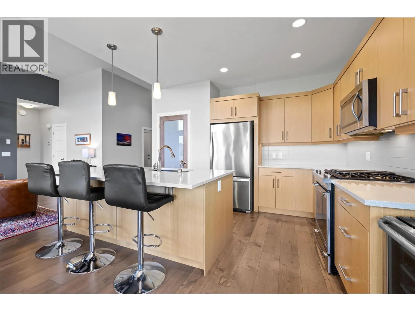 PANORAMIC VIEWS | GOLF COURSE LIVING | LUXURY UPGRADES Welcome to Solstice at Tower Ranch â Lovely no-step rancher backs onto the 1st hole and boasts sweeping panoramic views of the lake, city of Kelowna, valley, and surrounding mountains. Enjoy an open-concept floor plan with 3 spacious bedrooms, 2 full bathrooms, and high-end finishes throughout. The gourmet kitchen features quartz countertops, soft-close cabinetry, a large island with ample storage, a walk-in pantry, and stainless steel appliances including a gas cooktop. Wide-plank hardwood flooring, neutral tones, high ceilings (12ft!), and extra windows bring in tons of natural light. The living room includes a sleek linear gas fireplace and walks out to a large private deckâperfect for entertaining or relaxing while taking in the view. Retreat to the spacious primary suite with a walk-in closet and spa-inspired 4-piece ensuite with heated tile floors. Two additional bedrooms, a full 4-piece bath, and a laundry room complete this ideal floor planâperfect for empty nesters, retirees, or anyone seeking one-level living. Xeriscaped yard includes synthetic turf, irrigated shrubs, and BBQ hook-up. Large double garage for all your vehicles, toysâor your golf cart! Tankless hot water system Motorized Hunter Douglas blinds Hot tub Like-new condition with zero compromise on comfort or styleâthis home is a must-see! (id:27476)