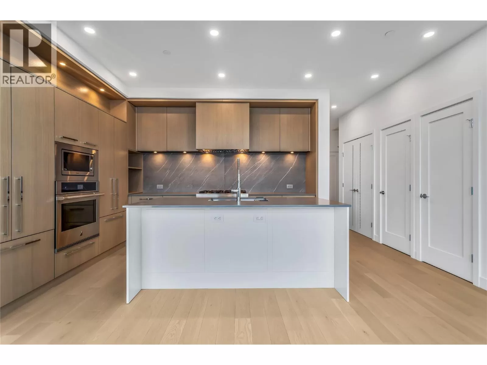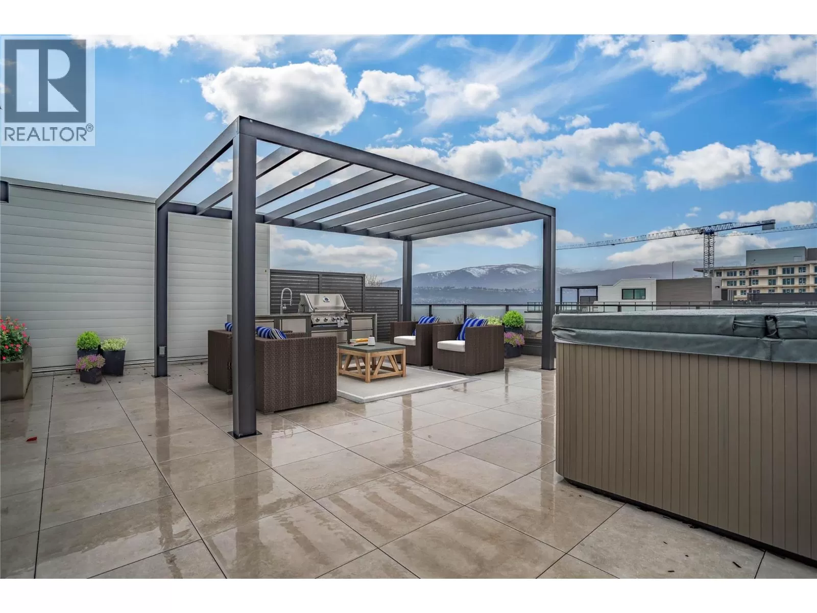 NEW PENTHOUSE at CABAN w/40k of UPGRADES!! Enjoy life at Kelownaâs PREMIER BEACHFRONT development! Well-appointed 3 bed/2.5 bath with 40k of UPGRADES and boasting a 1400 sf ROOFTOP PATIO w/ PRIVATE HOT TUB, OUTDOOR KITCHEN and LAKE VIEWS! Signature âCressey' Kitchen sets the bar for quality w/ handmade integrated Italian cabinetry, European hardware, soft-close drawers, porcelain slab backsplash, Jennair appliances, gas cooktop, built-in wall oven, upgraded wine fridge, pull out recycling/waste bins + space-saving corner storage. Designed for seamless indoor-outdoor living, this home is flooded w/natural light w/ oversized windows & soaring ceilings. Primary suite has custom built-ins and a spa-like ensuite w/ double vanity, fully tiled walk in shower w/bench and suspended cabinetry. Spacious second bedroom w/ own ensuite - perfect for guests! Oversized flex room provides a 3rd bedroom (closet/no window) or versatility to suit your needs. Extra highlights incl. keyless suite access, digital concierge, 2 SECURED PARKING STALLS (one EV) plus a sep storage locker. Exclusive resident amenities incl. pool, hot tub, gym, Himalayan salt sauna, yoga space and private cabanas! Located across from GYRO BEACH in the heart of PANDOSY VILLAGE, this home offers unparalleled walkability to cafes, boutiques, dining, shopping, and waterfront recreation. Sophistication, Location, and the Okanagan Lifestyle at its finest! Shows AAA+ (id:27476)