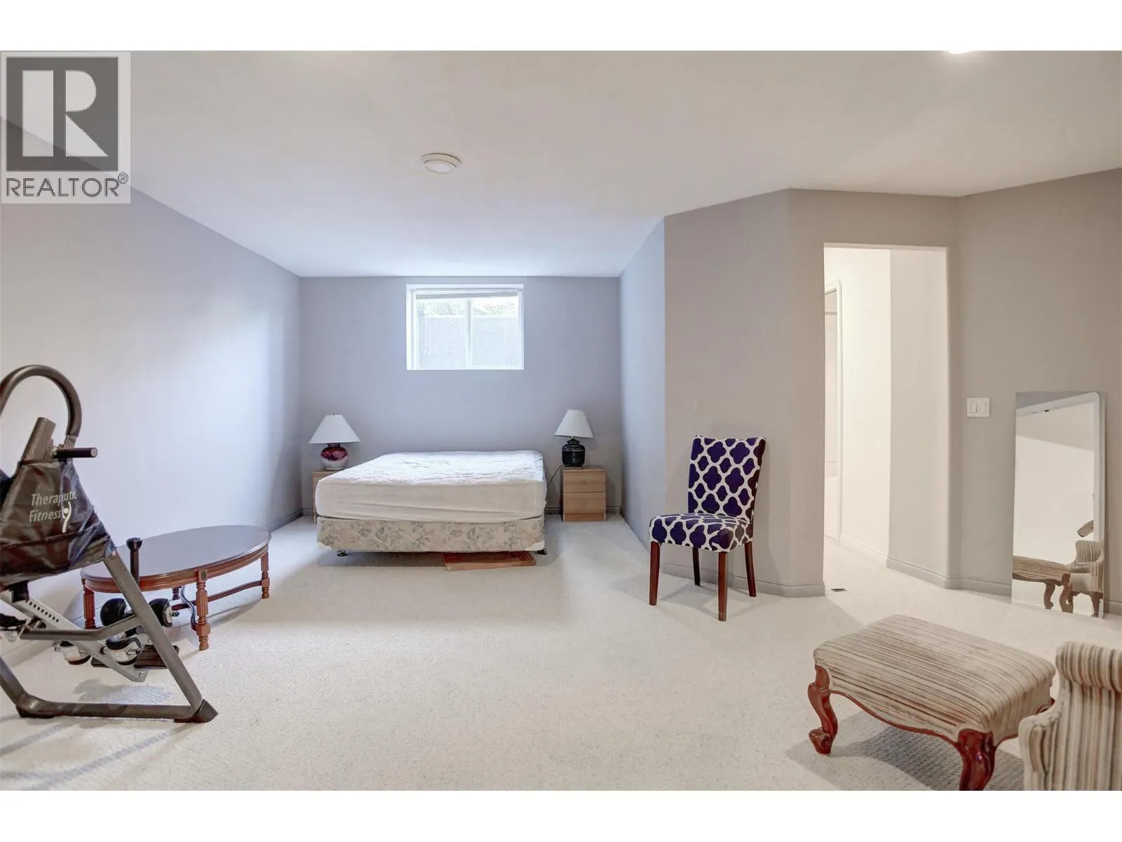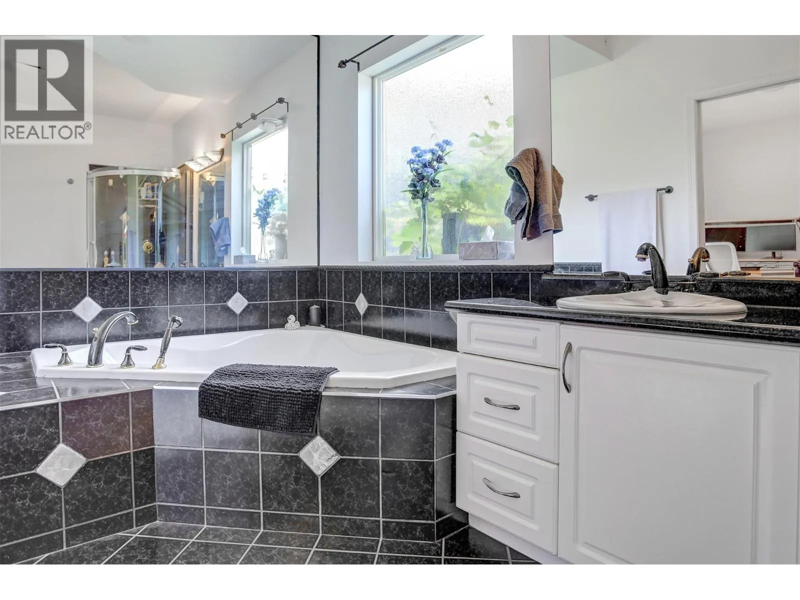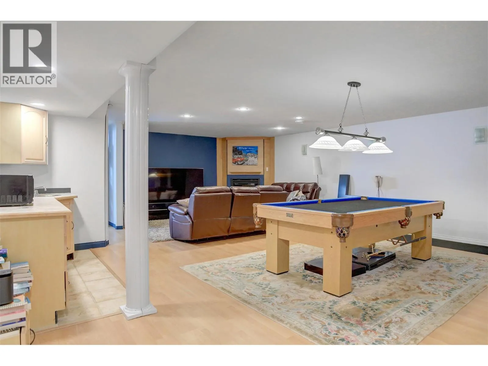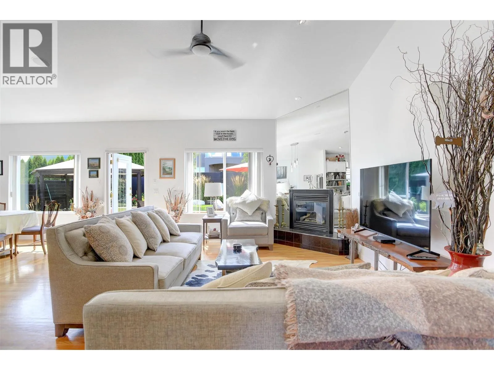 Located in a quiet cul-de-sac in the highly sought-after University area, this spacious 4-bedroom, 3-bathroom detached home offers 3,000 sq.ft. of comfortable living space. The open-plan main floor features a large great room with soaring vaulted ceilings, a cozy corner gas fireplace, and beautiful hardwood flooring. Walk out from the main level to a private deck and landscaped garden, ideal for outdoor entertaining. The home includes two master-sized bedrooms, with the primary suite offering a luxurious ensuite featuring a corner soaker tub and separate shower. A separate laundry room and utility room provide added functionality. The lower level boasts a second corner gas fireplace, a theatre and games area with durable laminate flooring, and a partial kitchen with a wet bar sink and under-counter fridge, perfect for guests or entertaining. Additional features include air conditioning, (Newer gas furnace & Heat pump) a double garage, and a mix of hardwood, carpet, and laminate flooring throughout. Conveniently located near top golf courses, hotels, grocery stores, a liquor store, pharmacy, and post office, this home is a perfect blend of comfort, space, and prime location. (id:27476)
