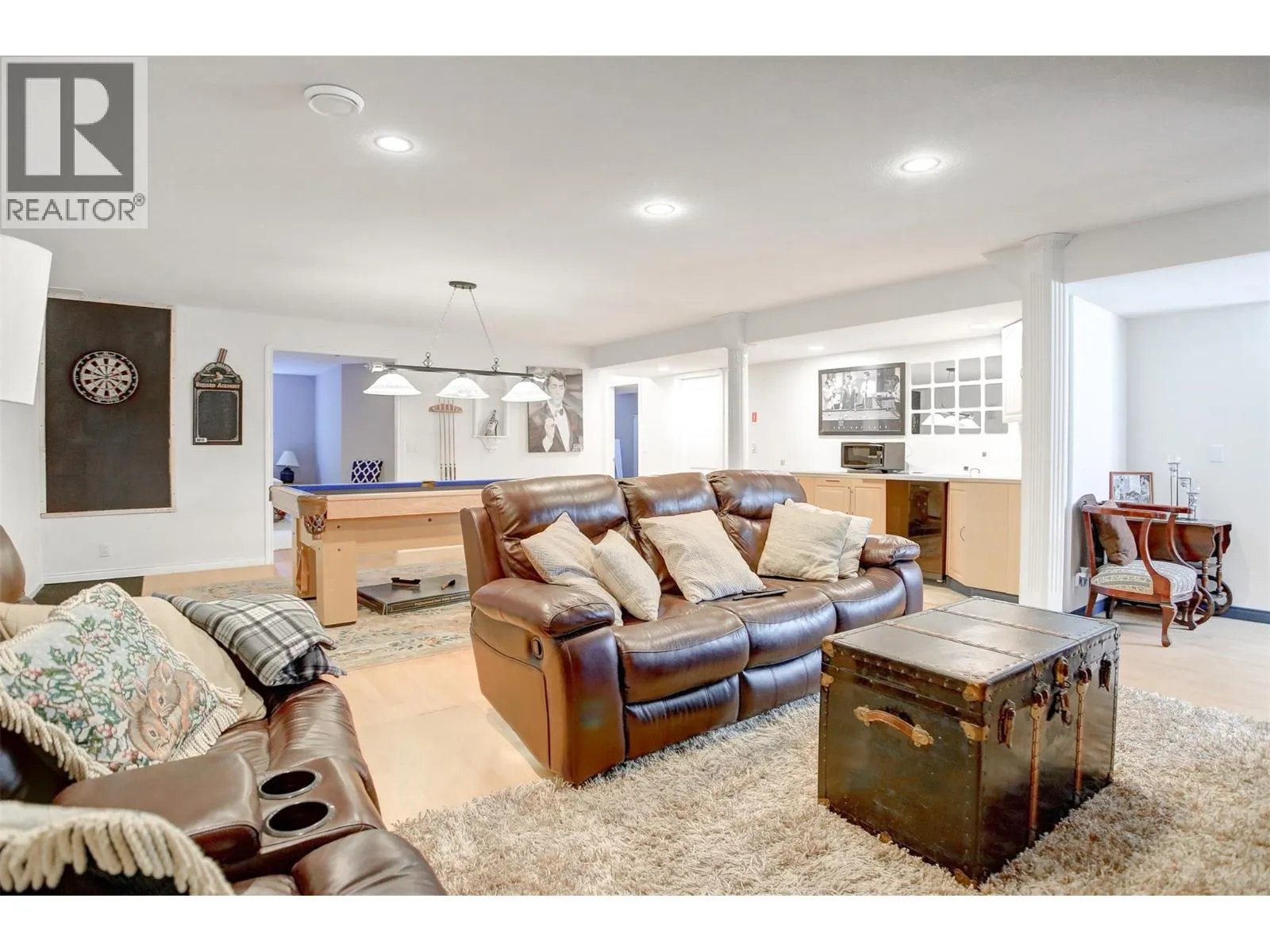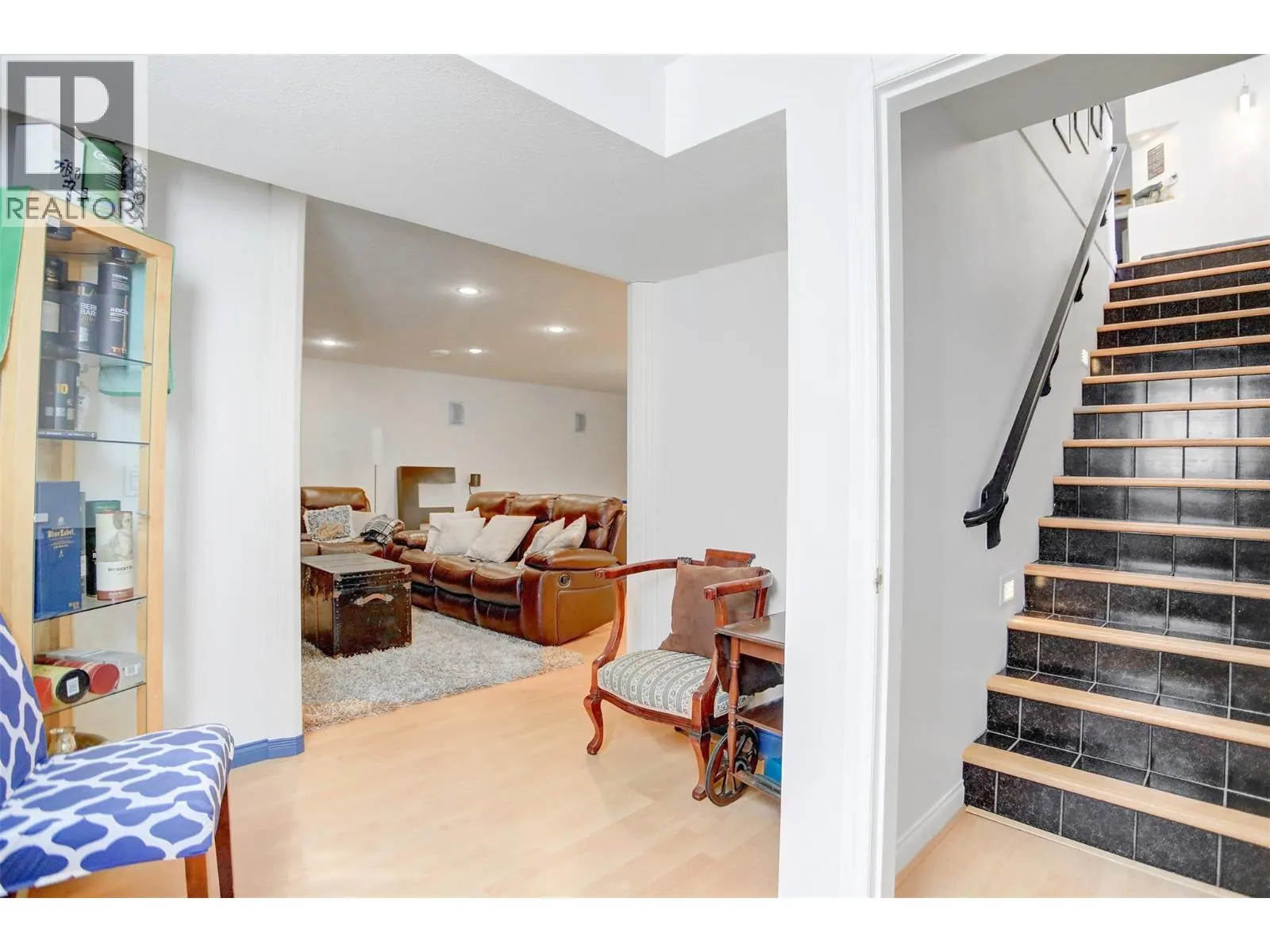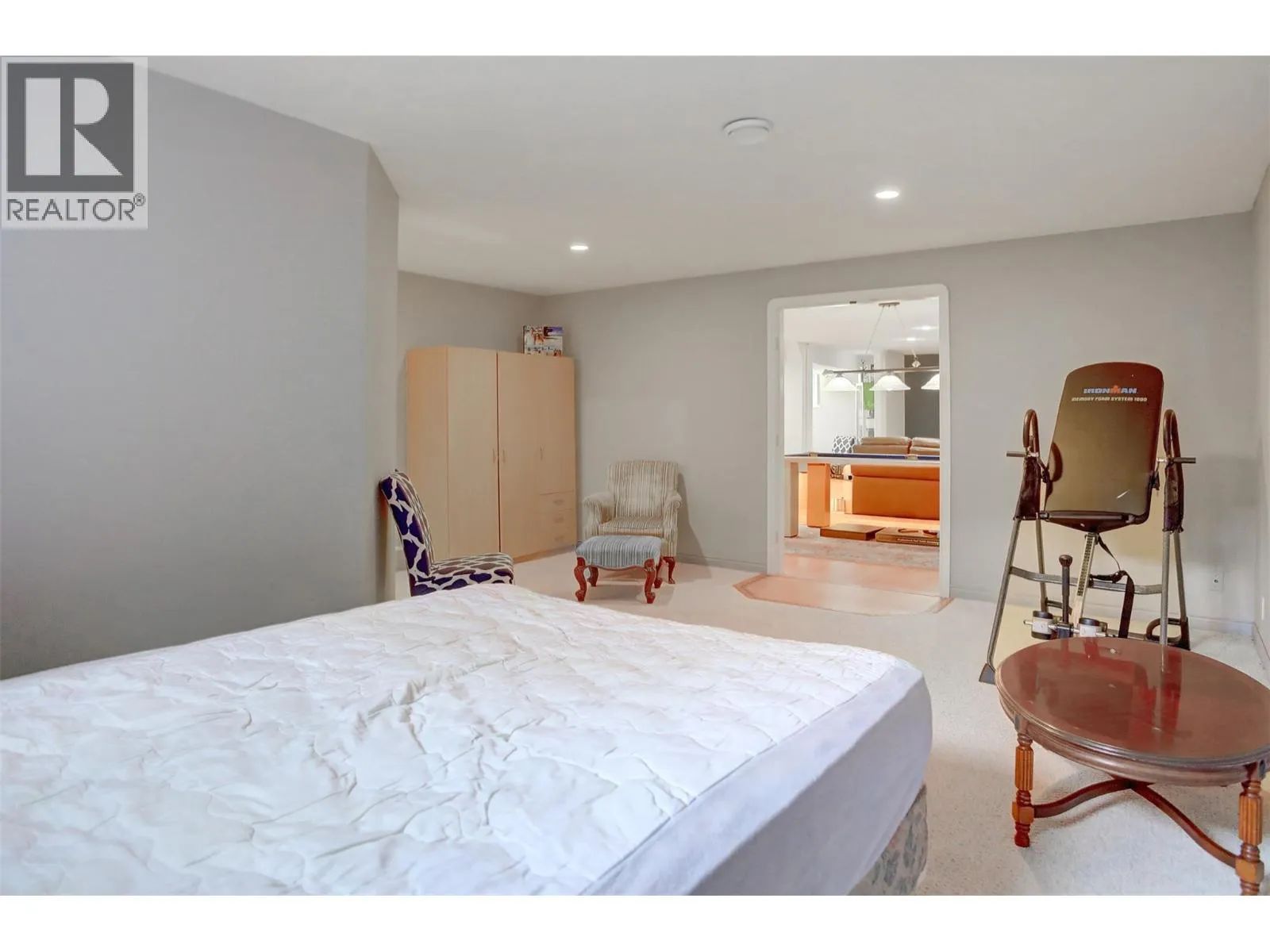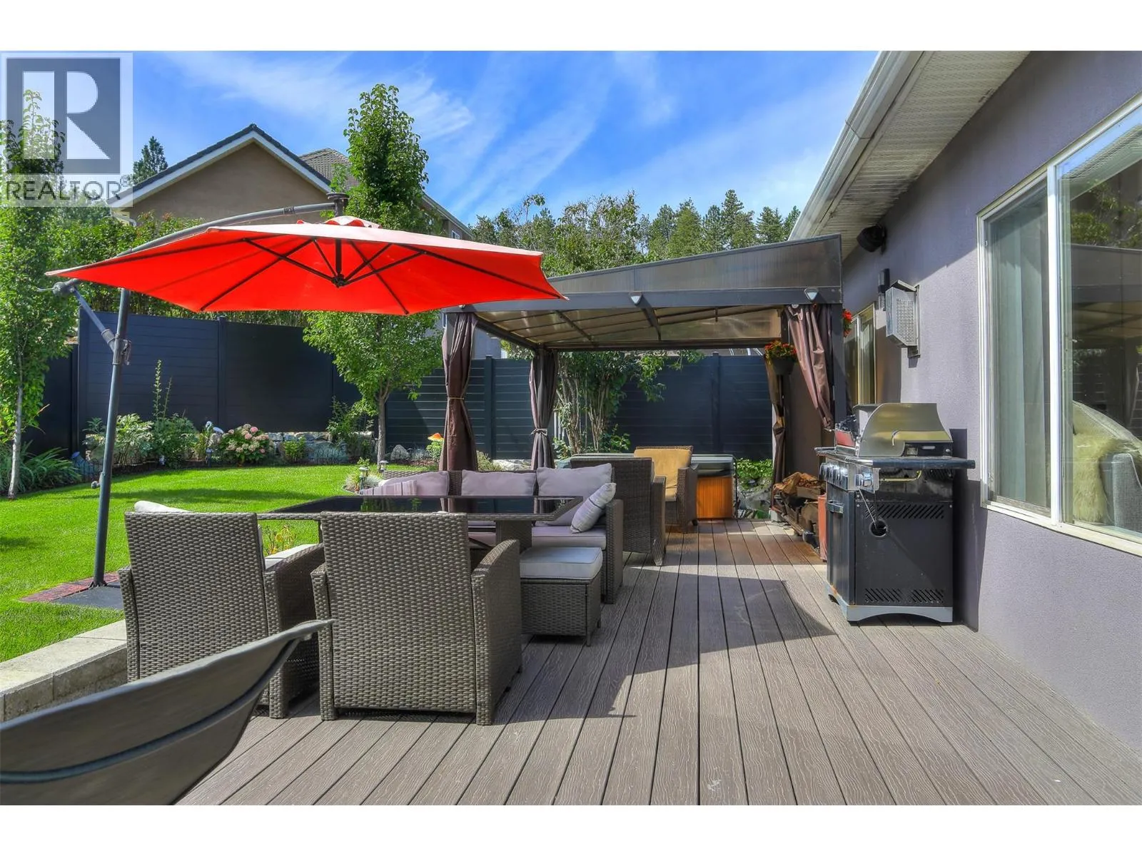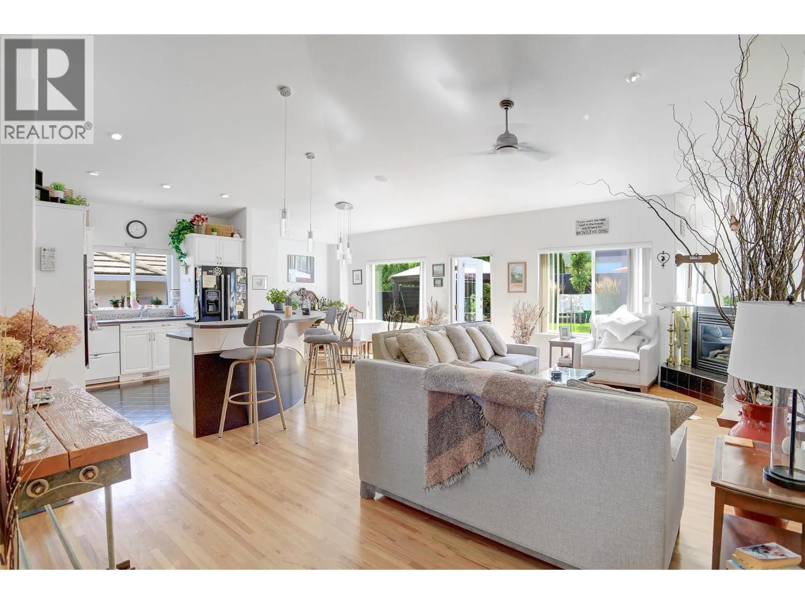 Located in a quiet cul-de-sac in the highly sought-after University area, this spacious 4-bedroom, 3-bathroom detached home offers 3,000 sq.ft. of comfortable living space. The open-plan main floor features a large great room with soaring vaulted ceilings, a cozy corner gas fireplace, and beautiful hardwood flooring. Walk out from the main level to a private deck and landscaped garden, ideal for outdoor entertaining. The home includes two master-sized bedrooms, with the primary suite offering a luxurious ensuite featuring a corner soaker tub and separate shower. A separate laundry room and utility room provide added functionality. The lower level boasts a second corner gas fireplace, a theatre and games area with durable laminate flooring, and a partial kitchen with a wet bar sink and under-counter fridge, perfect for guests or entertaining. Additional features include air conditioning, (Newer gas furnace & Heat pump) a double garage, and a mix of hardwood, carpet, and laminate flooring throughout. Conveniently located near top golf courses, hotels, grocery stores, a liquor store, pharmacy, and post office, this home is a perfect blend of comfort, space, and prime location. (id:27476)