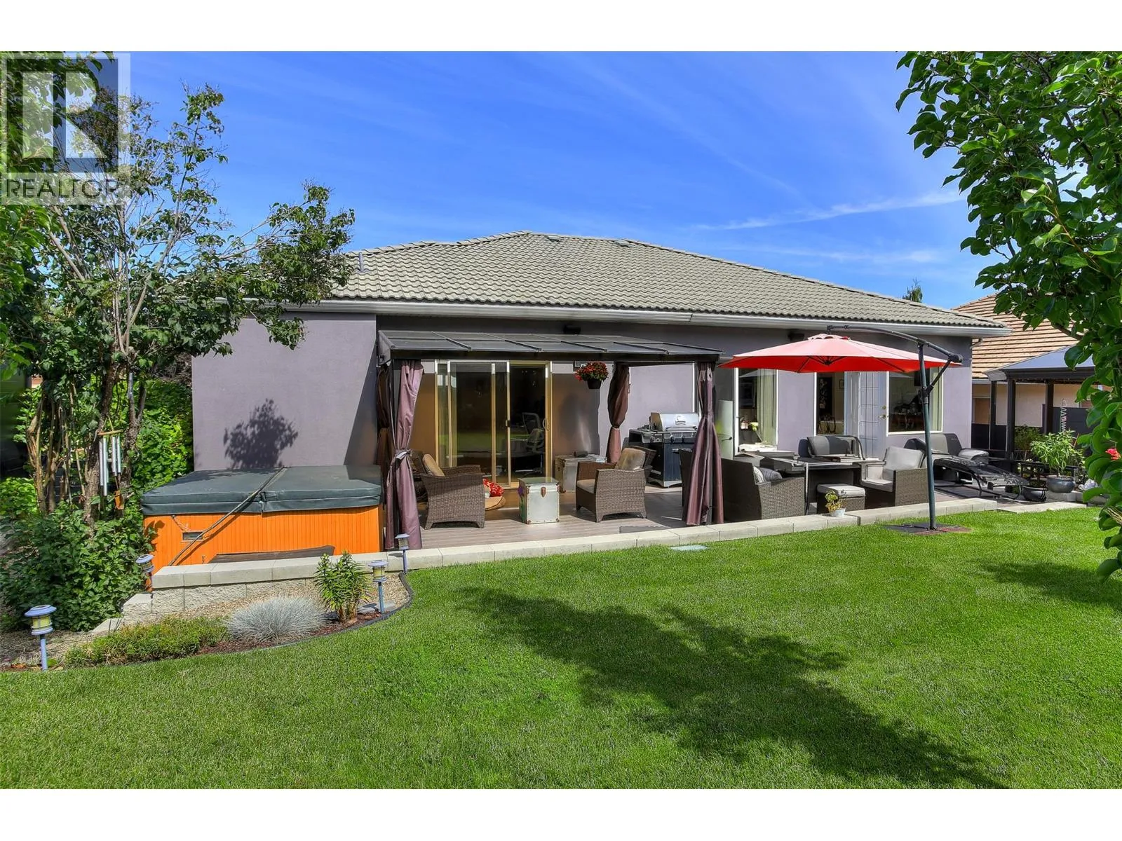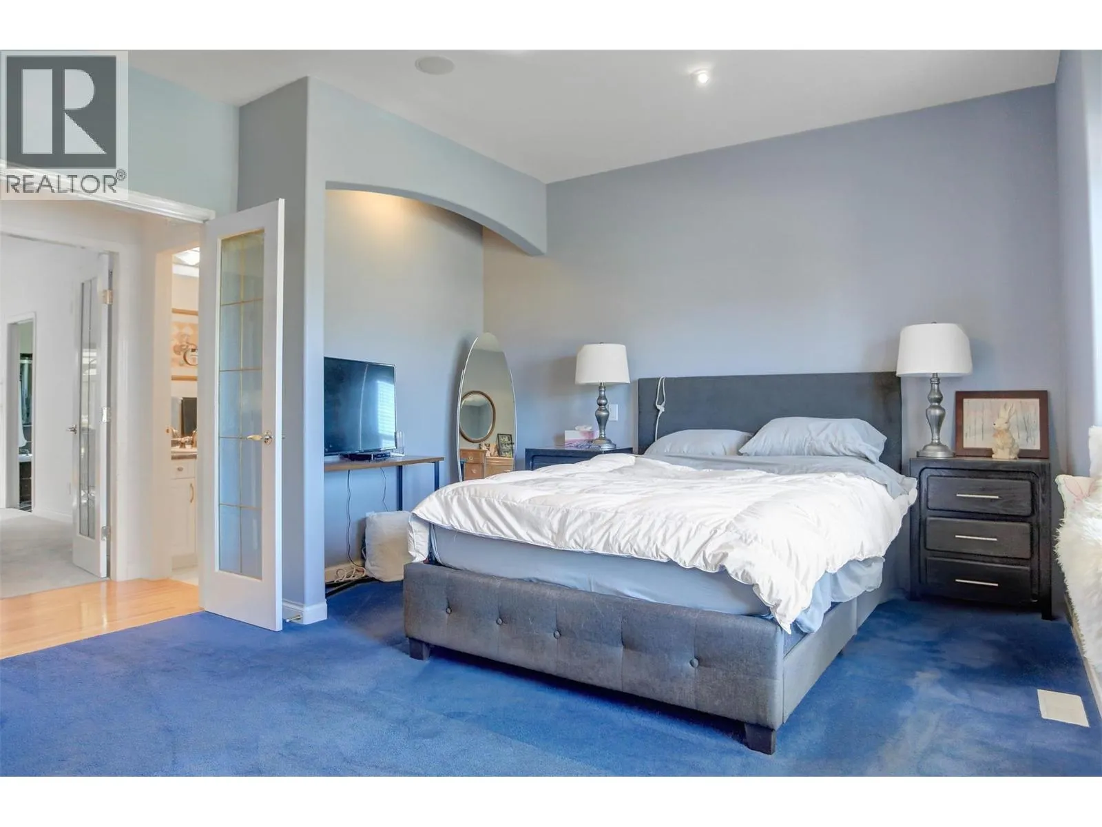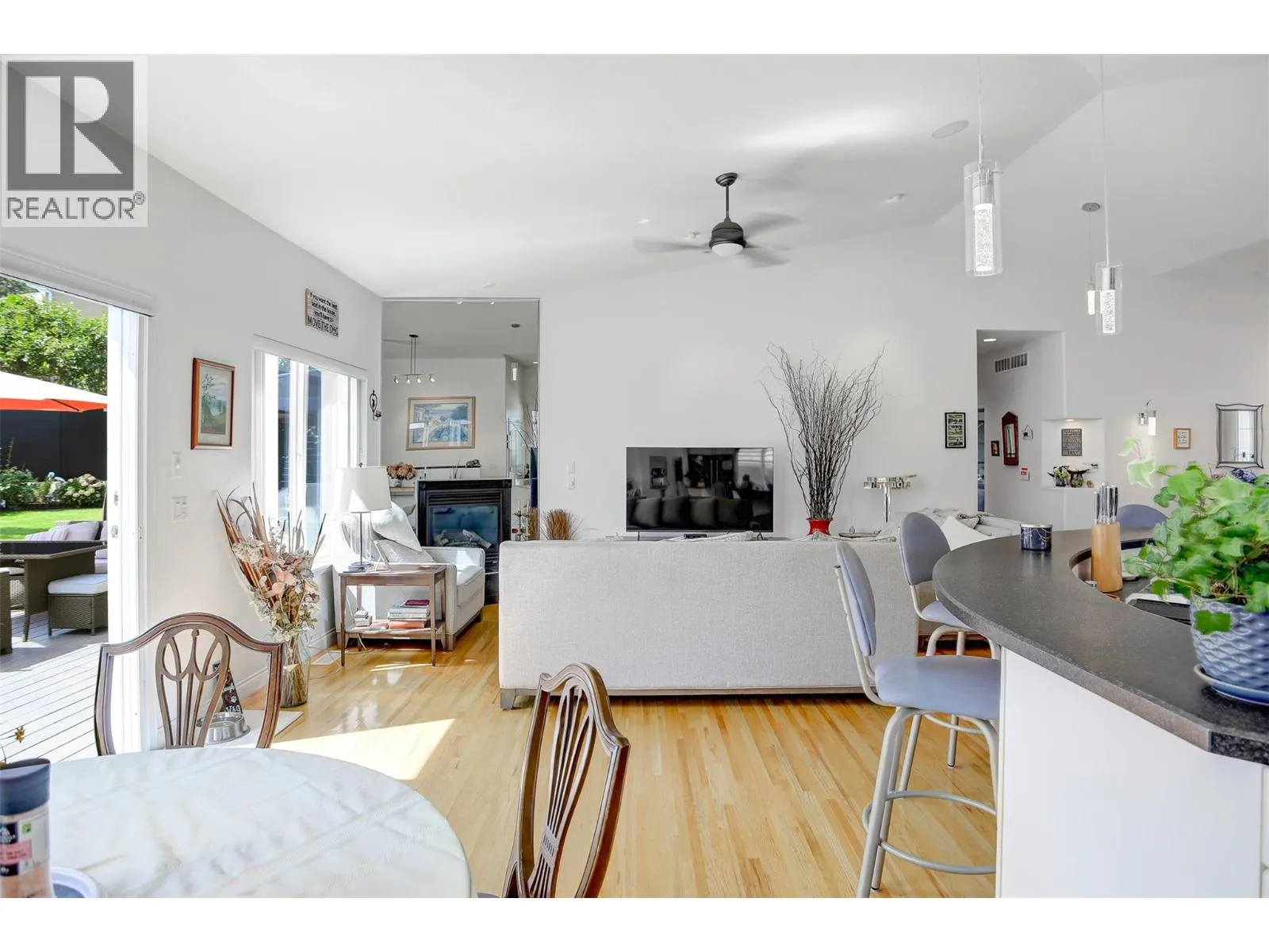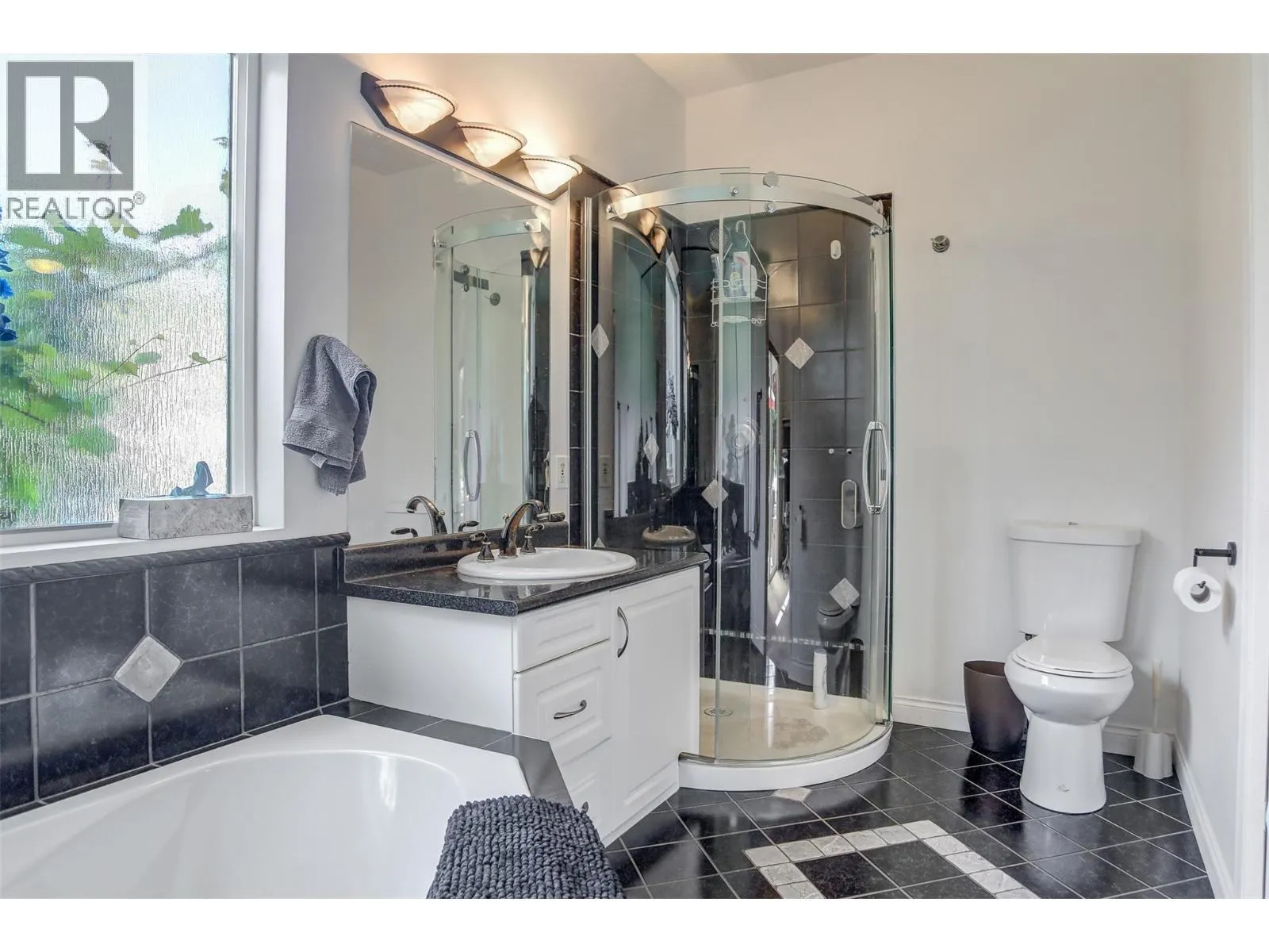 Located in a quiet cul-de-sac in the highly sought-after University area, this spacious 4-bedroom, 3-bathroom detached home offers 3,000 sq.ft. of comfortable living space. The open-plan main floor features a large great room with soaring vaulted ceilings, a cozy corner gas fireplace, and beautiful hardwood flooring. Walk out from the main level to a private deck and landscaped garden, ideal for outdoor entertaining. The home includes two master-sized bedrooms, with the primary suite offering a luxurious ensuite featuring a corner soaker tub and separate shower. A separate laundry room and utility room provide added functionality. The lower level boasts a second corner gas fireplace, a theatre and games area with durable laminate flooring, and a partial kitchen with a wet bar sink and under-counter fridge, perfect for guests or entertaining. Additional features include air conditioning, (Newer gas furnace & Heat pump) a double garage, and a mix of hardwood, carpet, and laminate flooring throughout. Conveniently located near top golf courses, hotels, grocery stores, a liquor store, pharmacy, and post office, this home is a perfect blend of comfort, space, and prime location. (id:27476)