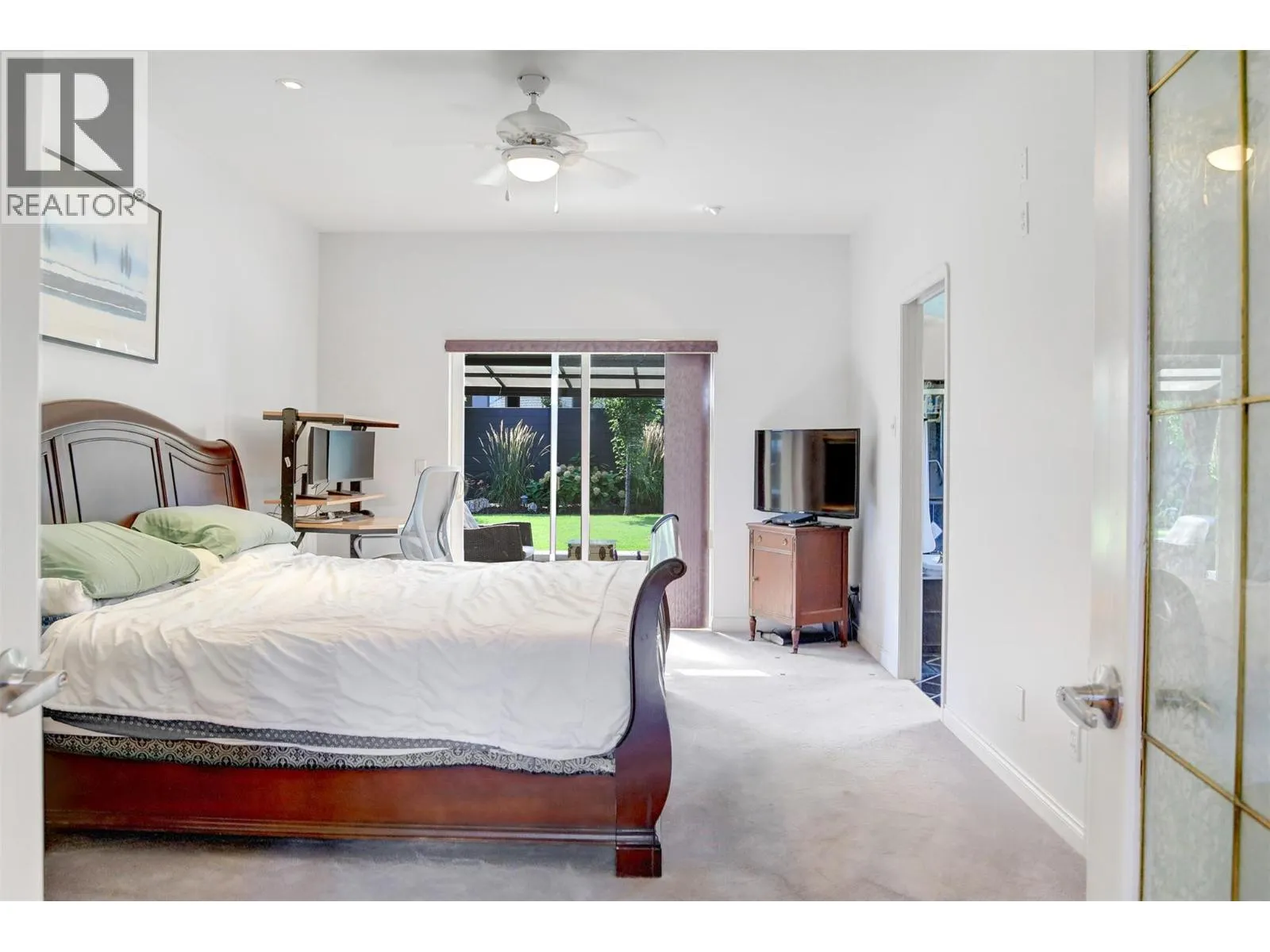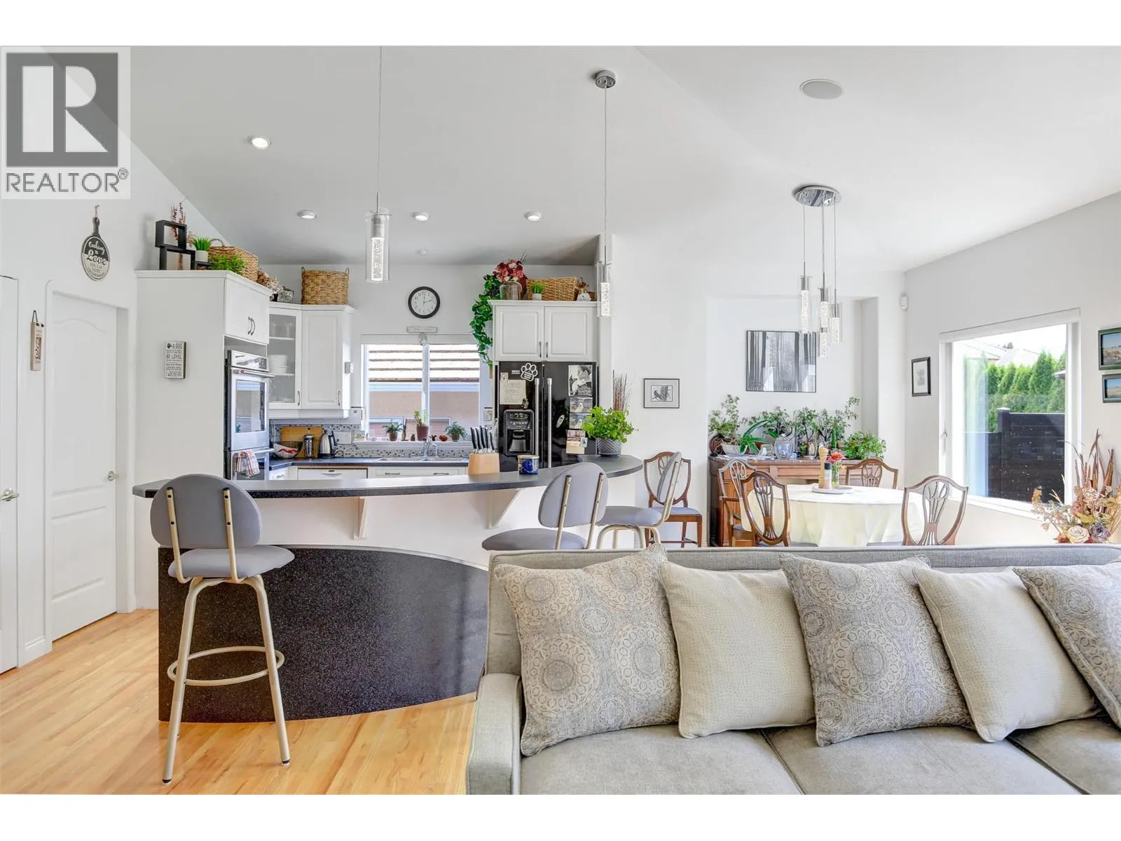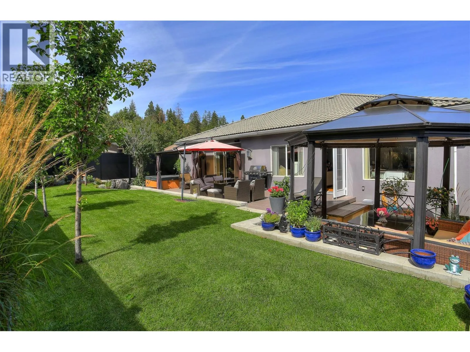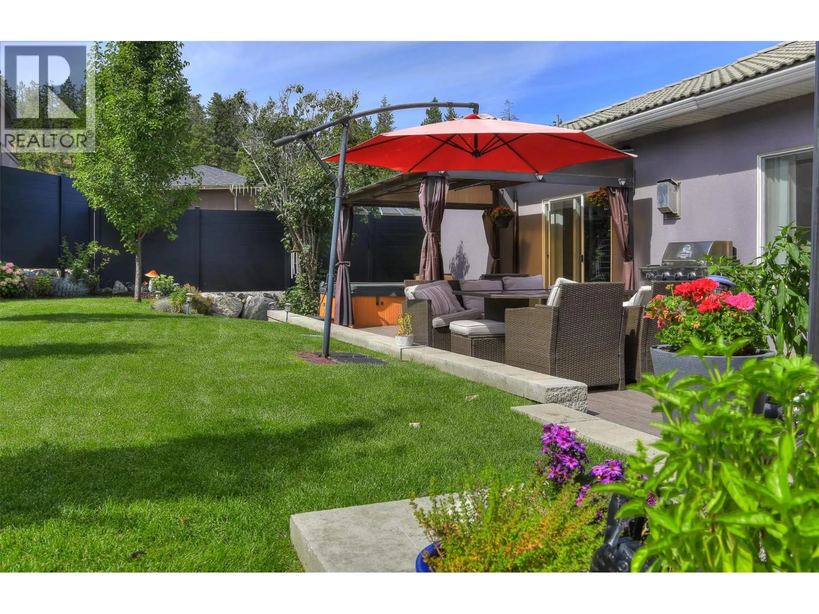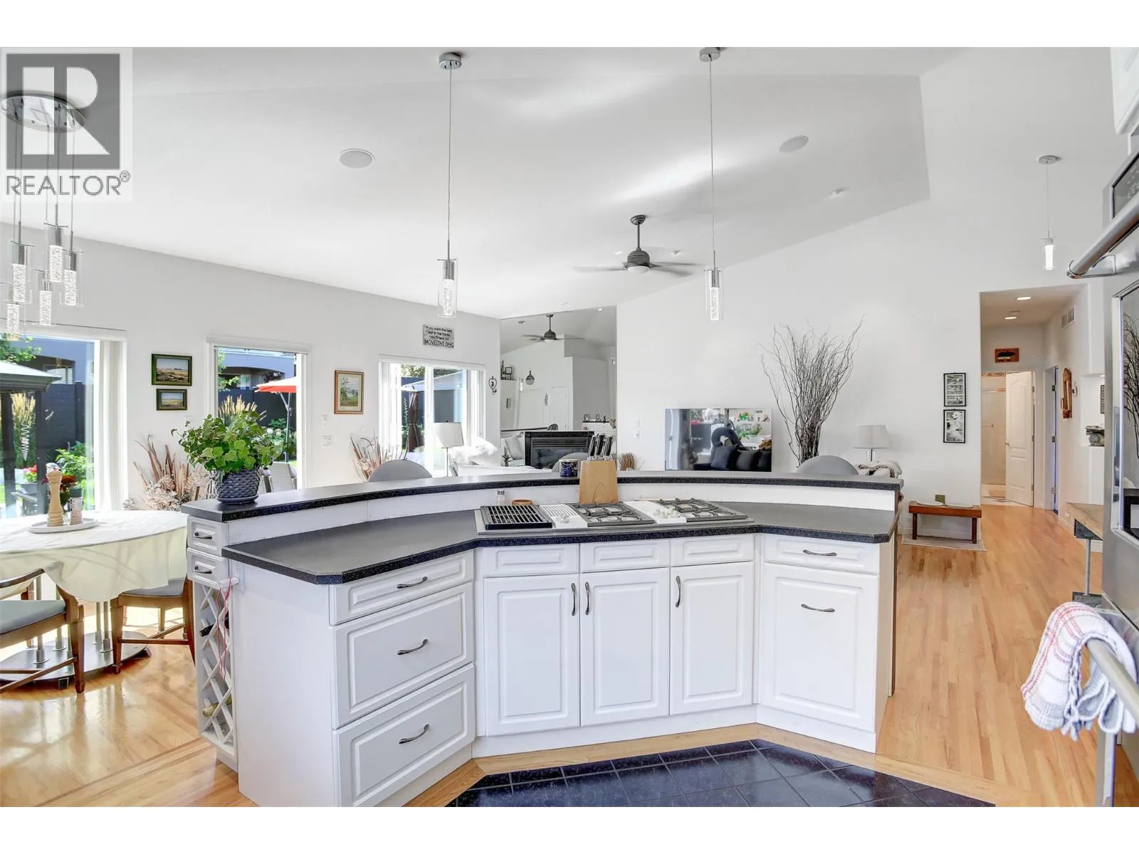 Located in a quiet cul-de-sac in the highly sought-after University area, this spacious 4-bedroom, 3-bathroom detached home offers 3,000 sq.ft. of comfortable living space. The open-plan main floor features a large great room with soaring vaulted ceilings, a cozy corner gas fireplace, and beautiful hardwood flooring. Walk out from the main level to a private deck and landscaped garden, ideal for outdoor entertaining. The home includes two master-sized bedrooms, with the primary suite offering a luxurious ensuite featuring a corner soaker tub and separate shower. A separate laundry room and utility room provide added functionality. The lower level boasts a second corner gas fireplace, a theatre and games area with durable laminate flooring, and a partial kitchen with a wet bar sink and under-counter fridge, perfect for guests or entertaining. Additional features include air conditioning, (Newer gas furnace & Heat pump) a double garage, and a mix of hardwood, carpet, and laminate flooring throughout. Conveniently located near top golf courses, hotels, grocery stores, a liquor store, pharmacy, and post office, this home is a perfect blend of comfort, space, and prime location. (id:27476)