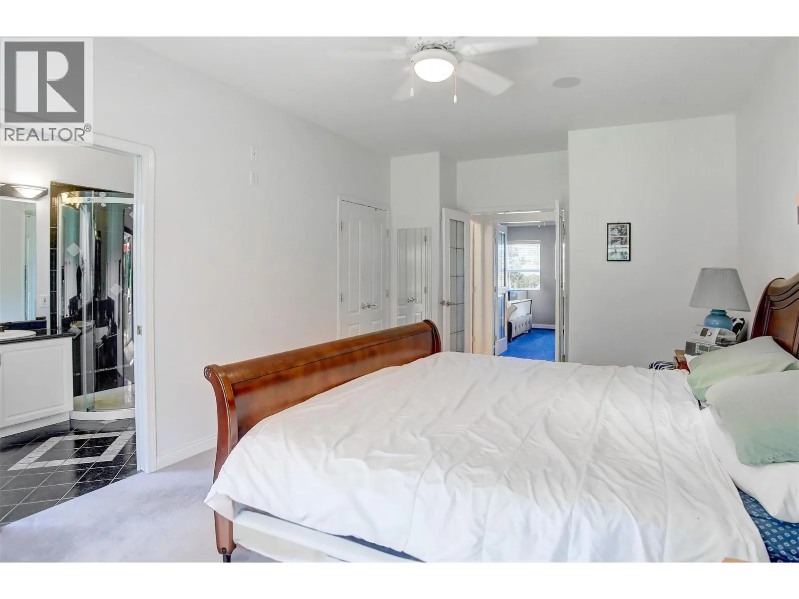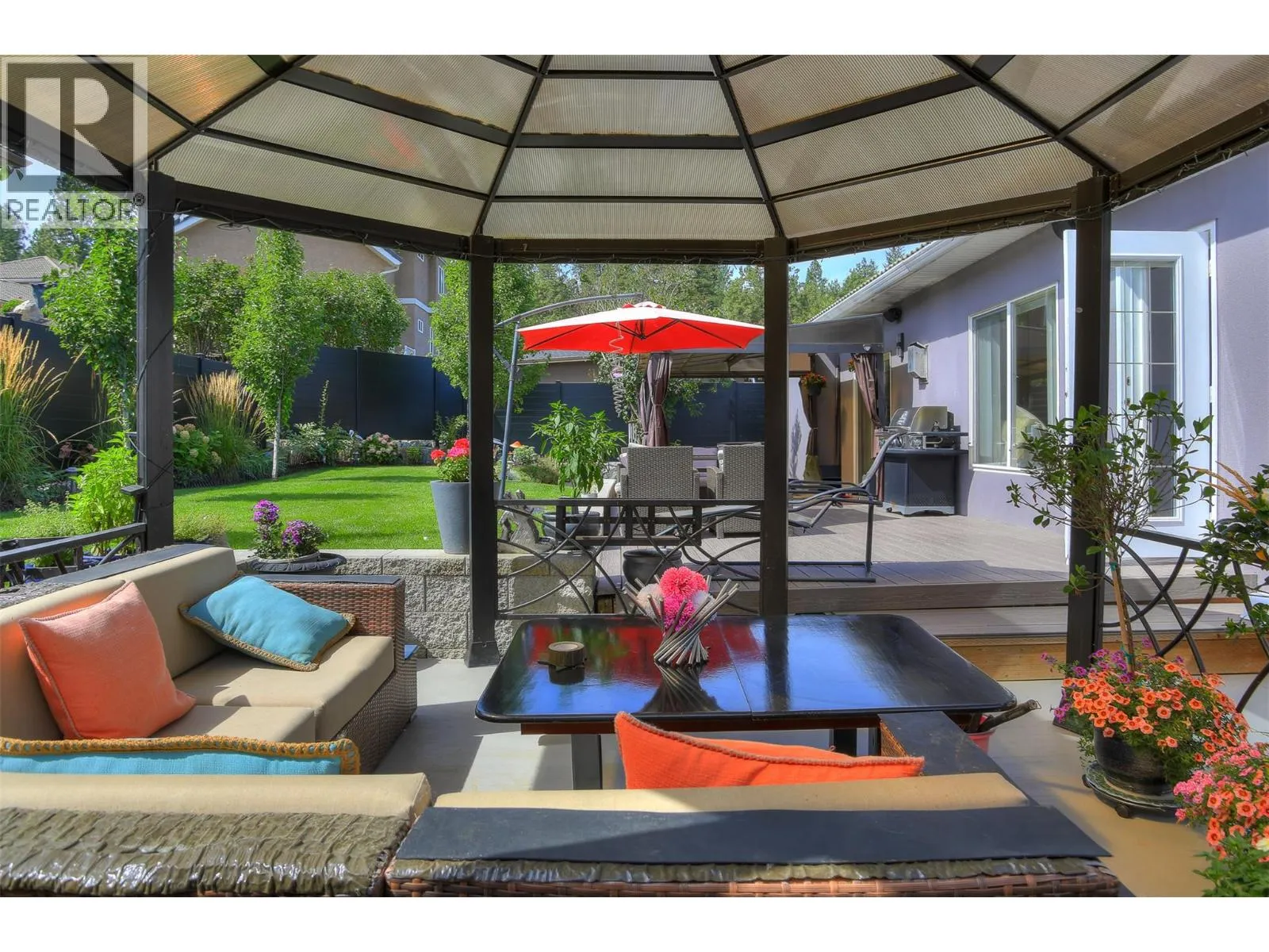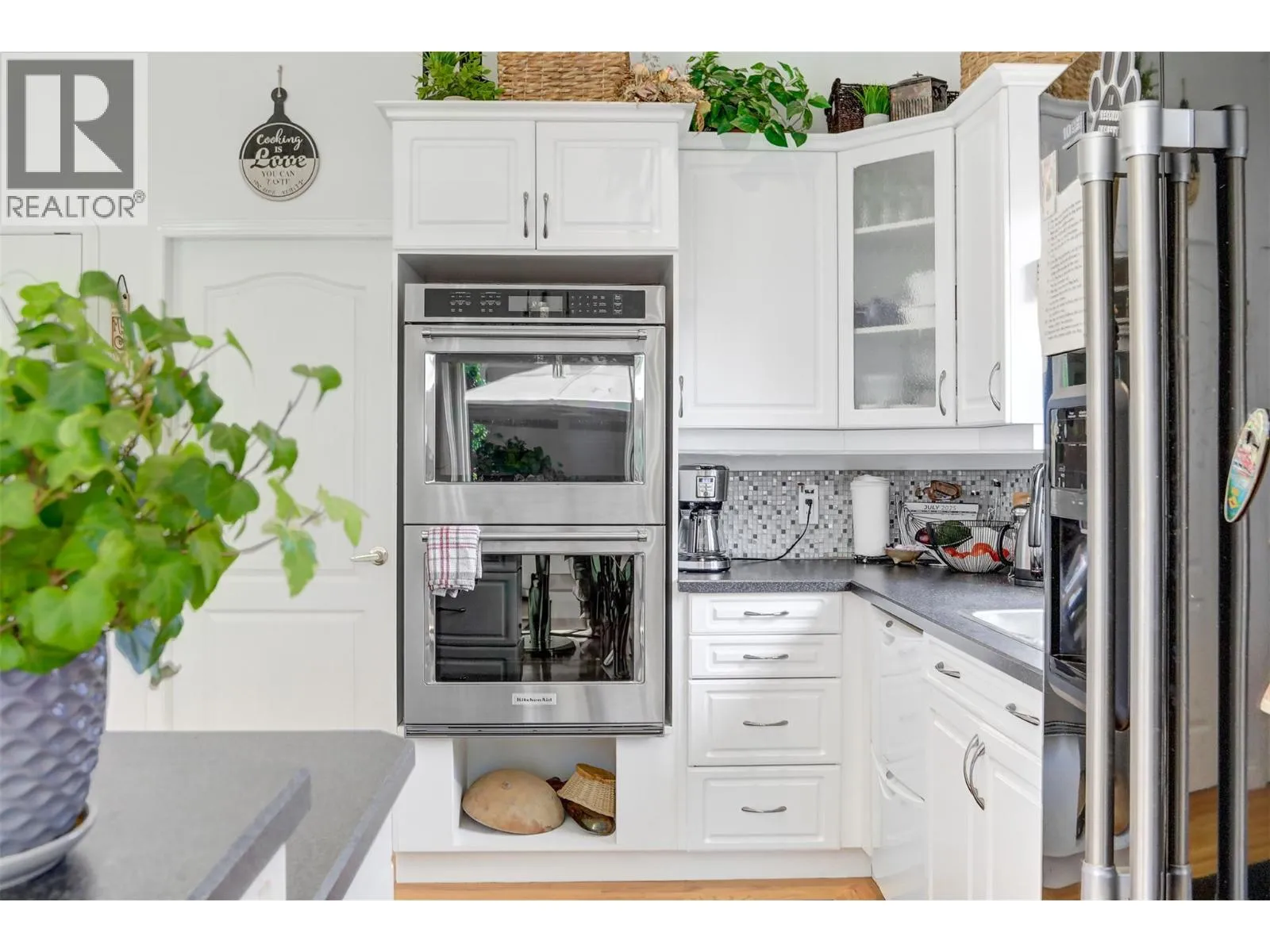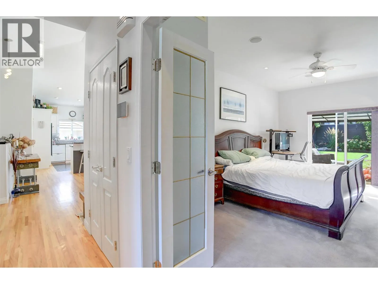 Located in a quiet cul-de-sac in the highly sought-after University area, this spacious 4-bedroom, 3-bathroom detached home offers 3,000 sq.ft. of comfortable living space. The open-plan main floor features a large great room with soaring vaulted ceilings, a cozy corner gas fireplace, and beautiful hardwood flooring. Walk out from the main level to a private deck and landscaped garden, ideal for outdoor entertaining. The home includes two master-sized bedrooms, with the primary suite offering a luxurious ensuite featuring a corner soaker tub and separate shower. A separate laundry room and utility room provide added functionality. The lower level boasts a second corner gas fireplace, a theatre and games area with durable laminate flooring, and a partial kitchen with a wet bar sink and under-counter fridge, perfect for guests or entertaining. Additional features include air conditioning, (Newer gas furnace & Heat pump) a double garage, and a mix of hardwood, carpet, and laminate flooring throughout. Conveniently located near top golf courses, hotels, grocery stores, a liquor store, pharmacy, and post office, this home is a perfect blend of comfort, space, and prime location. (id:27476)