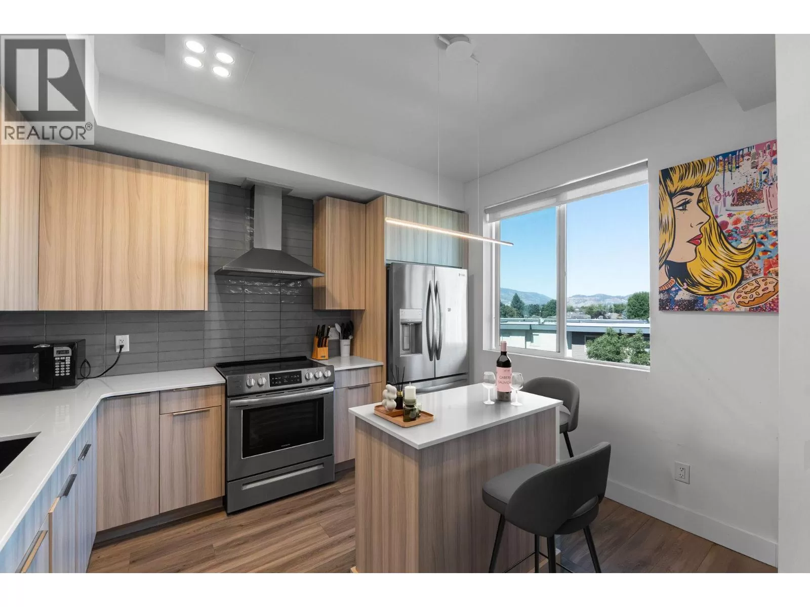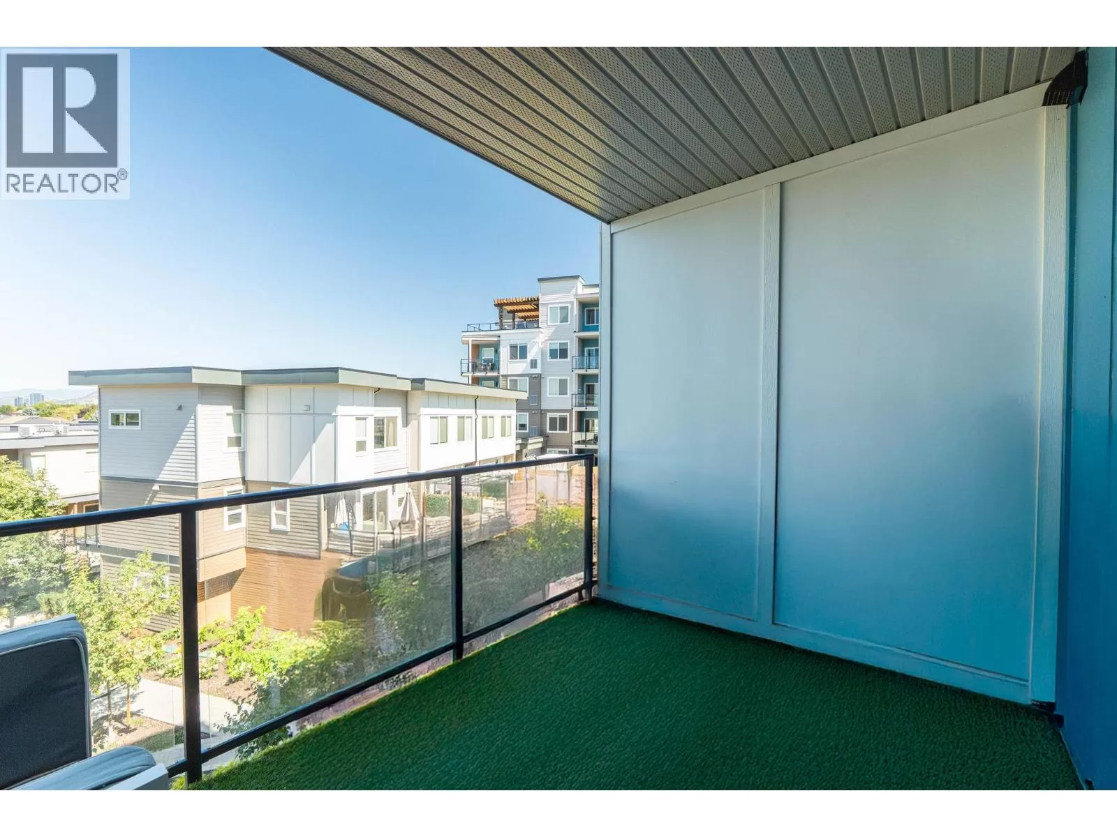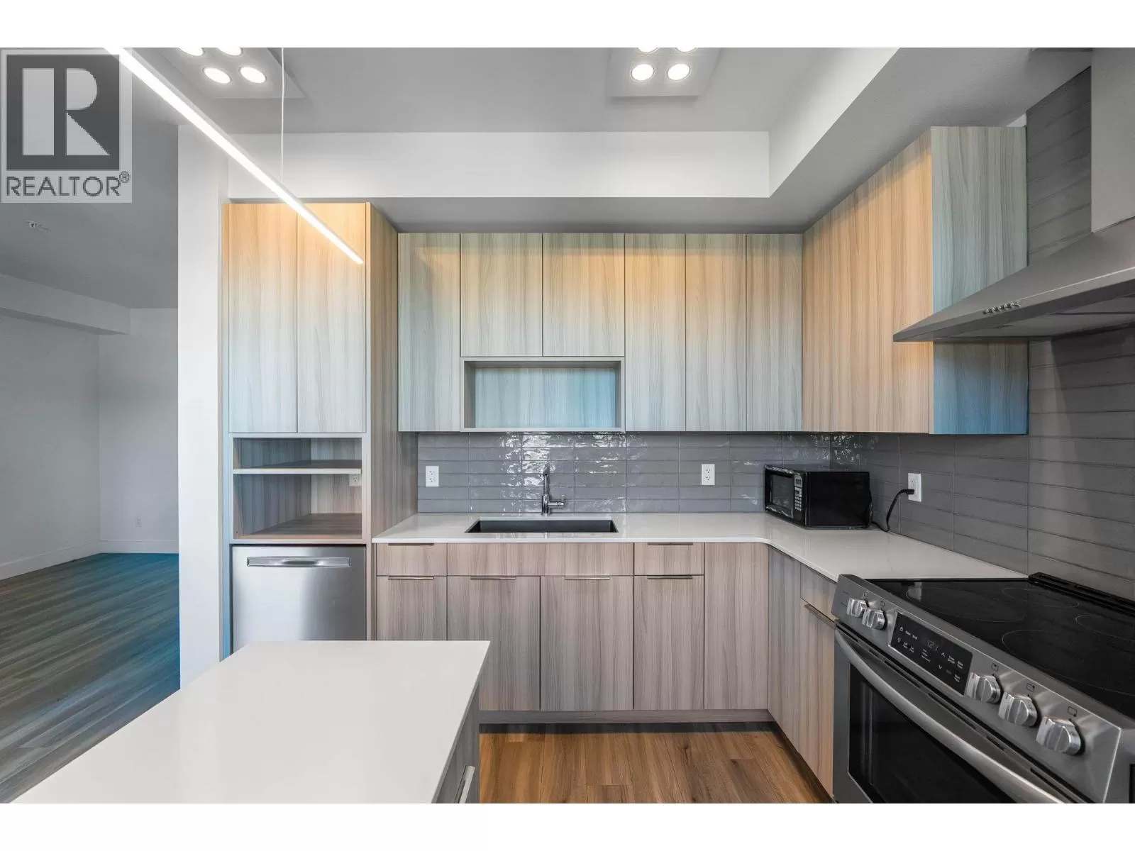 Experience the best of Lower Mission living at Green Square Vert, a 2022 year-built community. This 1-bedroom plus large den, 1-bath condo offers beautiful city and mountain views within an ultra-quiet setting. The bright, open floor plan features a modern kitchen with quartz countertops and ceiling-height cabinetry, designed for both style and function. The primary bedroom is a true retreat with a custom walk-in closet leading into a thoughtfully designed ensuite. The large den is spacious and versatileâperfect as a home office, guest room, or flex space. Step out onto your private patio, ideal for relaxing or BBQing with friends. Community amenities include a fitness centre with cardio machines and a weight rack, a kidsâ playground, garden plots, dog/bike wash station, and secure bike storage. Conveniently located near grocery stores, restaurants, Gyro Beach, trails, wineries, and golf, this home perfectly blends lifestyle, comfort, and modern design. Lockbox at the front metal rail. Backed by a 2-5-10 Home Warranty for peace of mind, this home ensures lasting quality and protection. (id:27476)