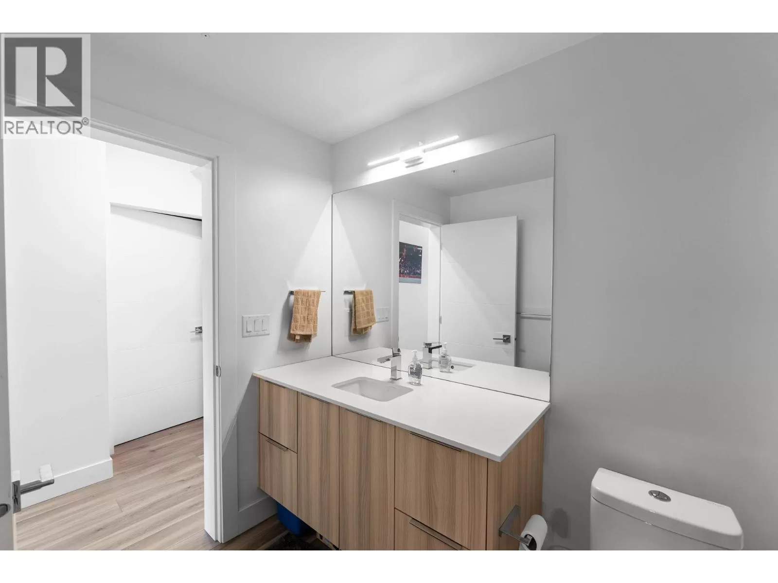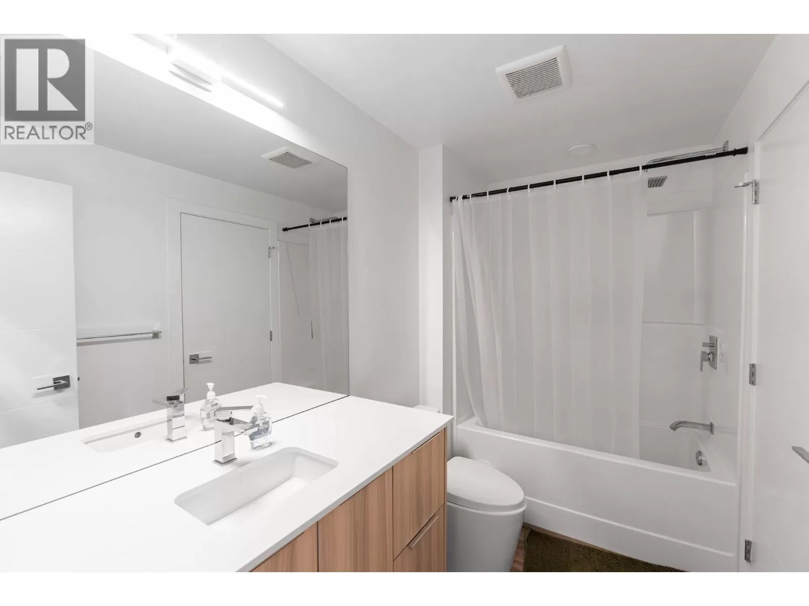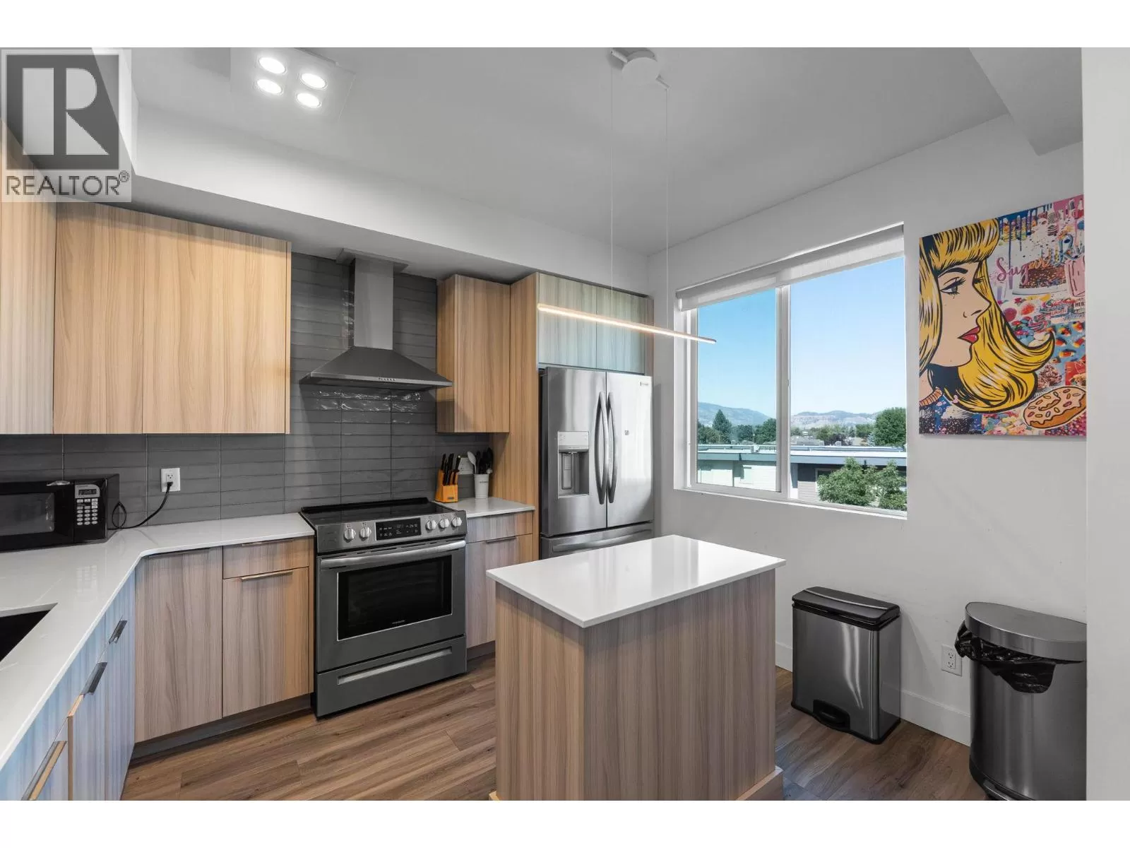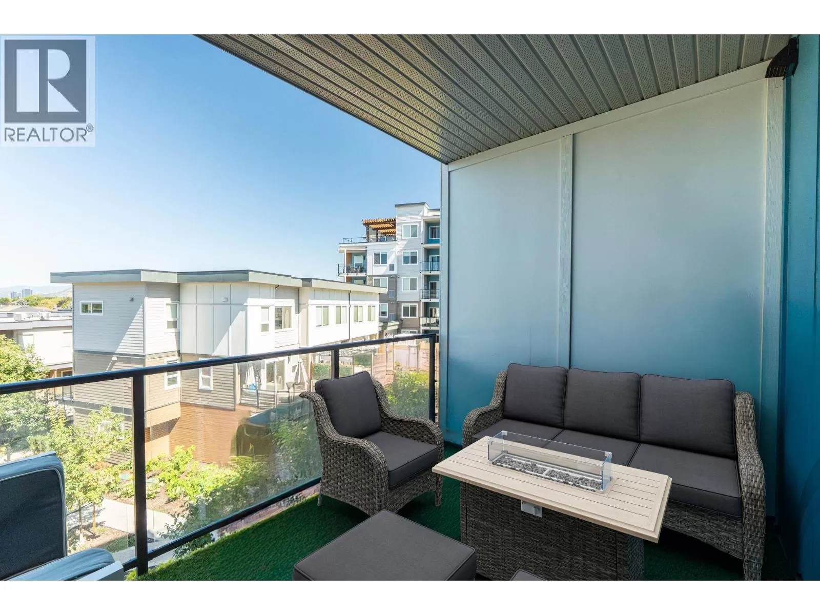 Experience the best of Lower Mission living at Green Square Vert, a 2022 year-built community. This 1-bedroom plus large den, 1-bath condo offers beautiful city and mountain views within an ultra-quiet setting. The bright, open floor plan features a modern kitchen with quartz countertops and ceiling-height cabinetry, designed for both style and function. The primary bedroom is a true retreat with a custom walk-in closet leading into a thoughtfully designed ensuite. The large den is spacious and versatileâperfect as a home office, guest room, or flex space. Step out onto your private patio, ideal for relaxing or BBQing with friends. Community amenities include a fitness centre with cardio machines and a weight rack, a kidsâ playground, garden plots, dog/bike wash station, and secure bike storage. Conveniently located near grocery stores, restaurants, Gyro Beach, trails, wineries, and golf, this home perfectly blends lifestyle, comfort, and modern design. Lockbox at the front metal rail. Backed by a 2-5-10 Home Warranty for peace of mind, this home ensures lasting quality and protection. (id:27476)
