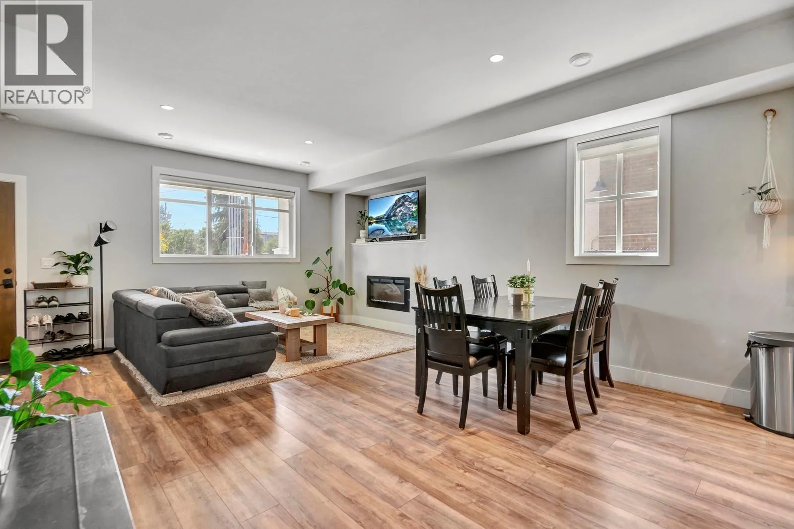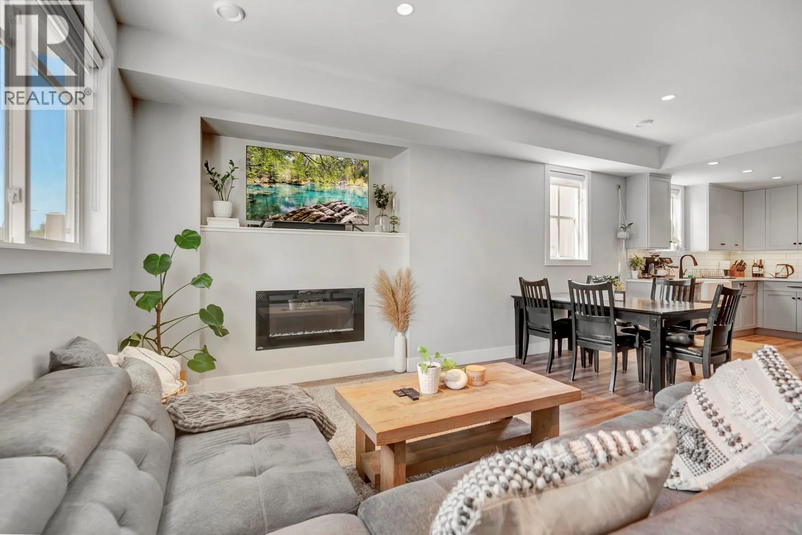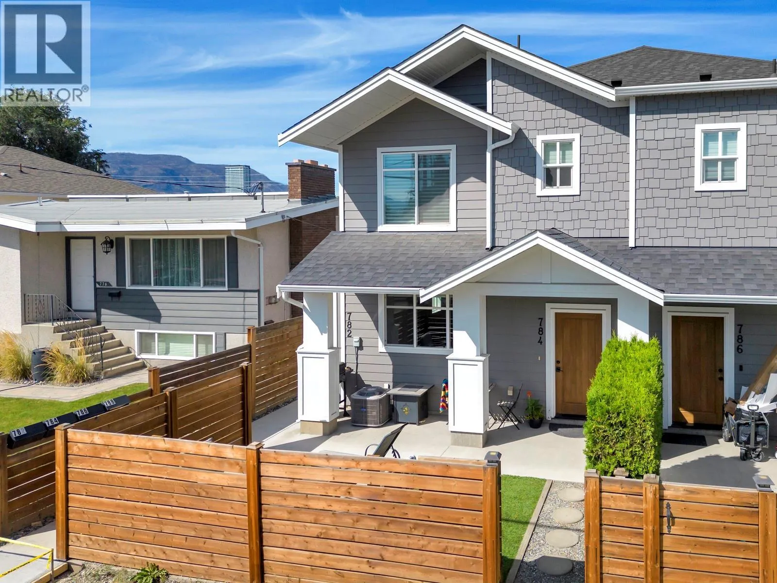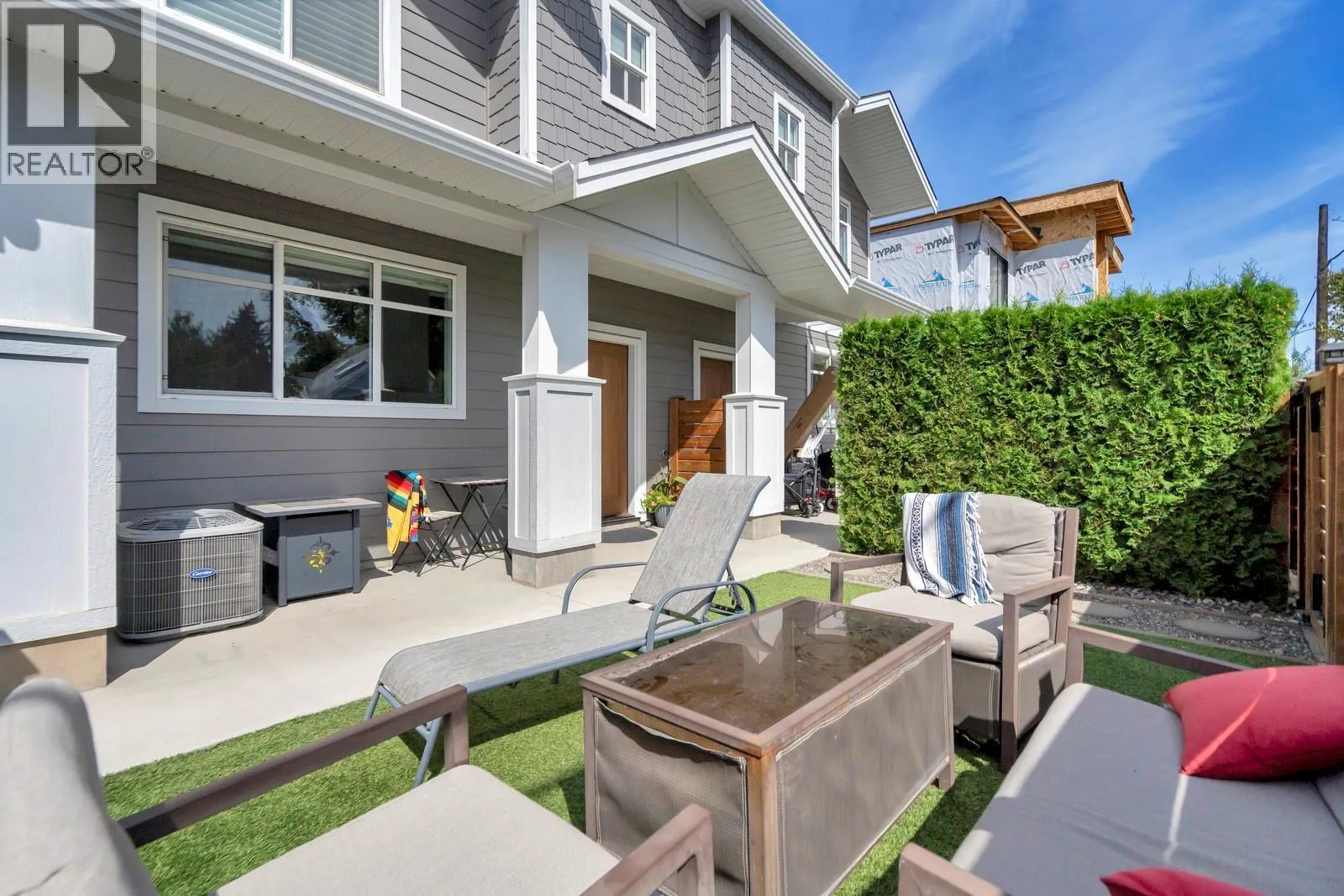 Bright and Affordable Living on Glenwood! Located at the front of the complex, this 2 bedroom 2 bathroom townhome offers 1,208 sq.ft. in one of Kelownaâs most walkable areas. Perfect for first time buyers, small families or investors, this home blends comfort, style and convenience. The kitchen features quartz counters, island seating and stainless steel Samsung appliances. Vinyl flooring flows through the open concept main level, where natural light fills the living and dining areas. Built in 2018, the home has modern finishes, an electric fireplace and smart storage. Upstairs, the primary bedroom includes a walk in closet and 3 piece ensuite with tiled shower. The second bedroom has a built in closet and access to a full bathroom with tub and shower combo. Outside, enjoy a private patio with synthetic turf, gas BBQ hookup and water connection, ideal for entertaining or relaxing. The garage provides covered parking with 10 foot doors and 12 foot ceilings. Just a five minute walk to Kelowna General Hospital and beaches, and minutes to shops, conveniences and downtown. The street is being upgraded with new sidewalks, drainage, trees and added parking, all set for completion this fall. Low strata fees and pet friendly bylaws for both dogs and cats make ownership easy. Also available is 782 Glenwood, a 3 bedroom 2.5 bathroom unit listed at $625,000. Schedule your showing today and see why Glenwood is such a desirable place to call home! (id:27476)