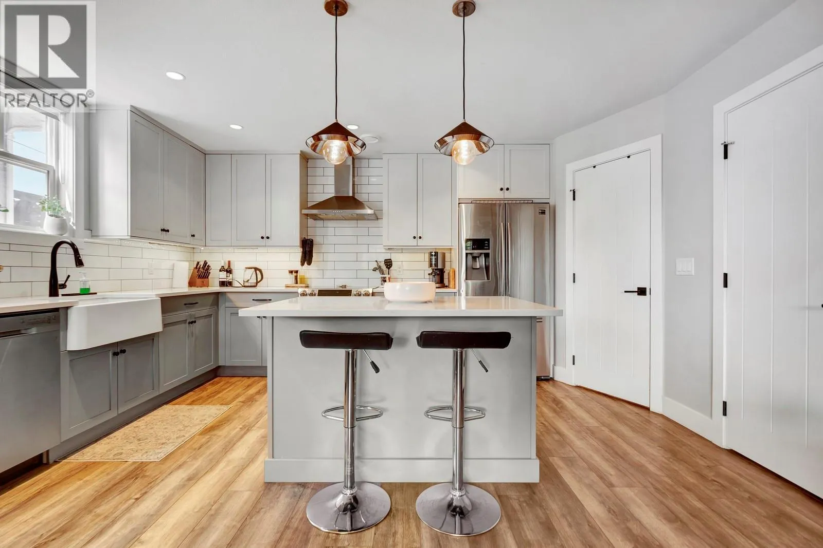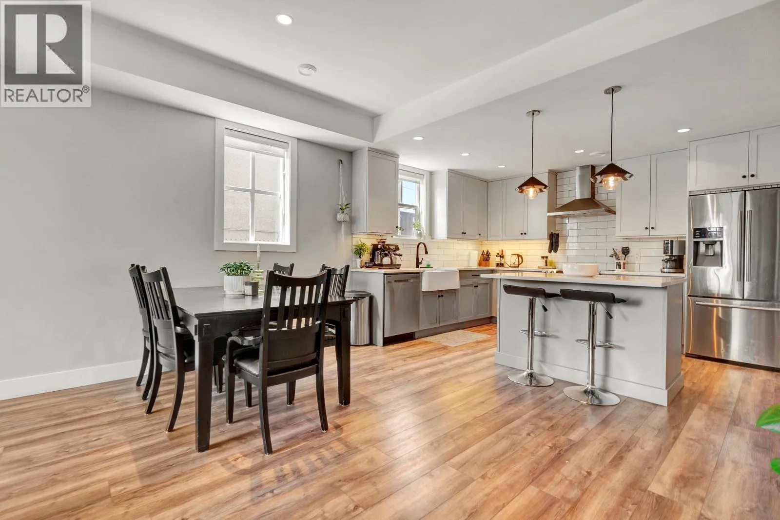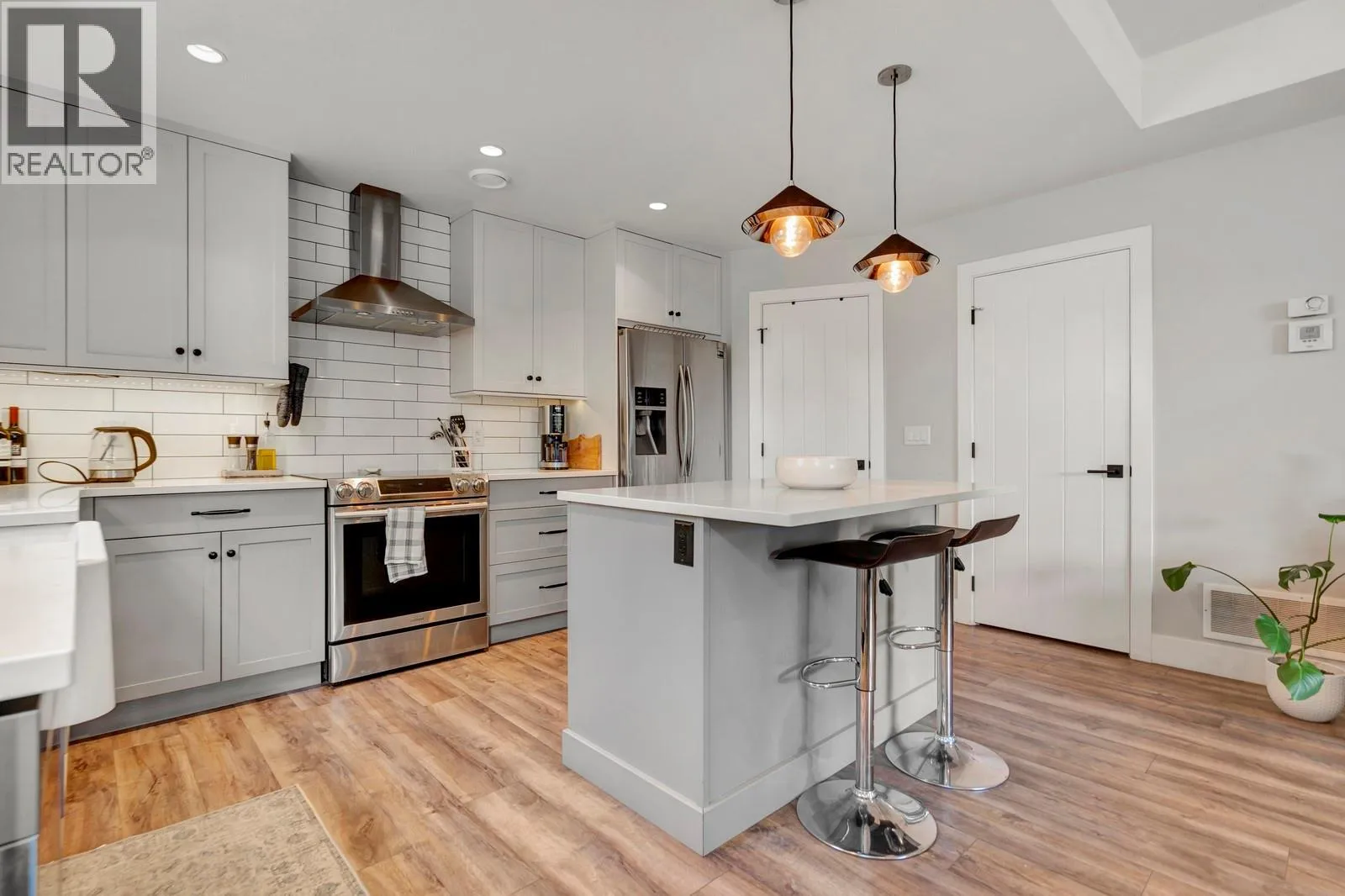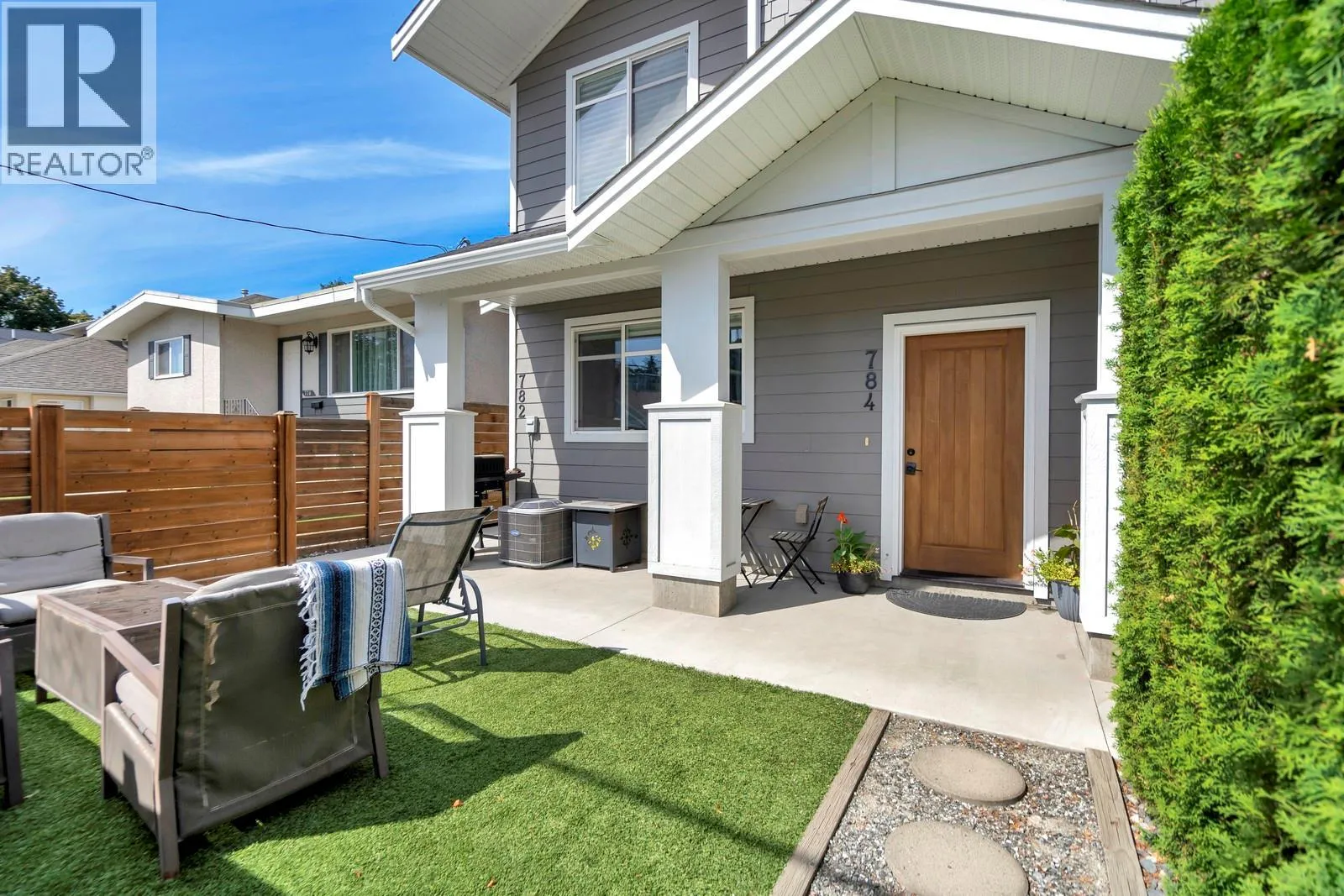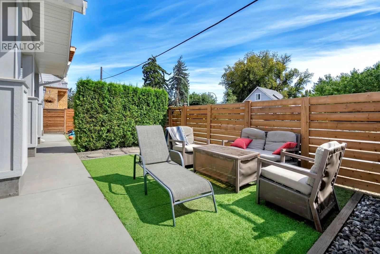 Bright and Affordable Living on Glenwood! Located at the front of the complex, this 2 bedroom 2 bathroom townhome offers 1,208 sq.ft. in one of Kelownaâs most walkable areas. Perfect for first time buyers, small families or investors, this home blends comfort, style and convenience. The kitchen features quartz counters, island seating and stainless steel Samsung appliances. Vinyl flooring flows through the open concept main level, where natural light fills the living and dining areas. Built in 2018, the home has modern finishes, an electric fireplace and smart storage. Upstairs, the primary bedroom includes a walk in closet and 3 piece ensuite with tiled shower. The second bedroom has a built in closet and access to a full bathroom with tub and shower combo. Outside, enjoy a private patio with synthetic turf, gas BBQ hookup and water connection, ideal for entertaining or relaxing. The garage provides covered parking with 10 foot doors and 12 foot ceilings. Just a five minute walk to Kelowna General Hospital and beaches, and minutes to shops, conveniences and downtown. The street is being upgraded with new sidewalks, drainage, trees and added parking, all set for completion this fall. Low strata fees and pet friendly bylaws for both dogs and cats make ownership easy. Also available is 782 Glenwood, a 3 bedroom 2.5 bathroom unit listed at $625,000. Schedule your showing today and see why Glenwood is such a desirable place to call home! (id:27476)
