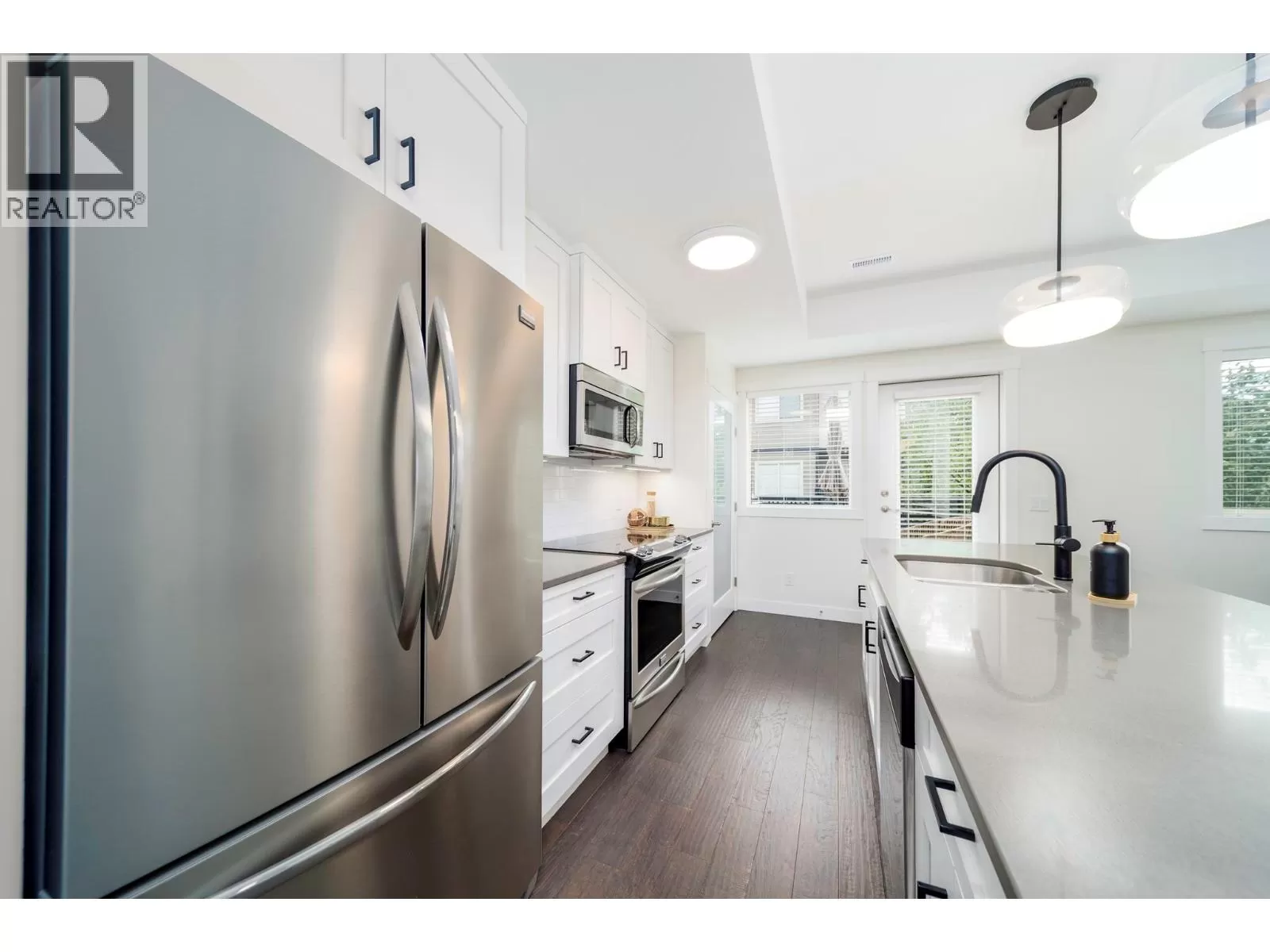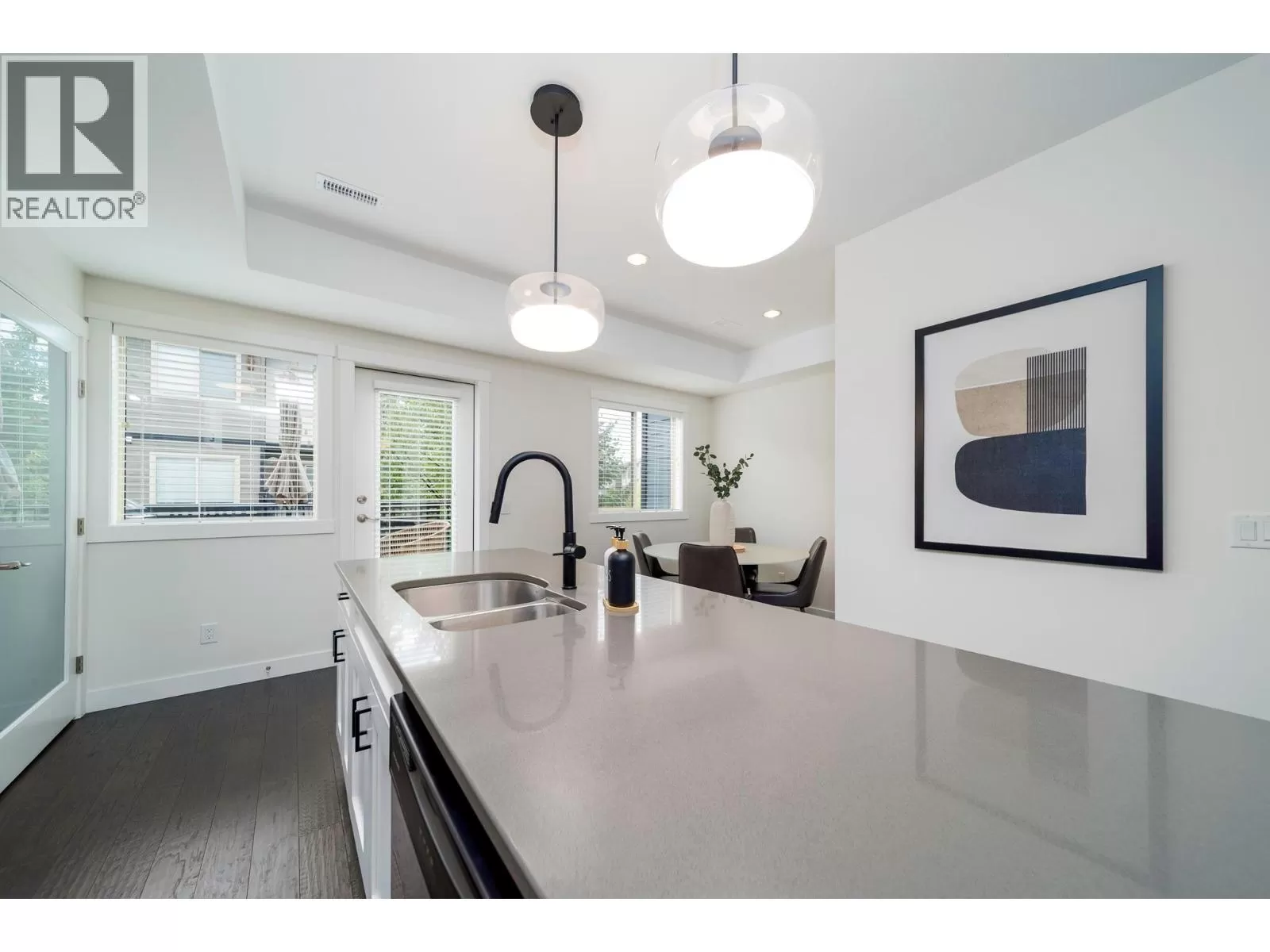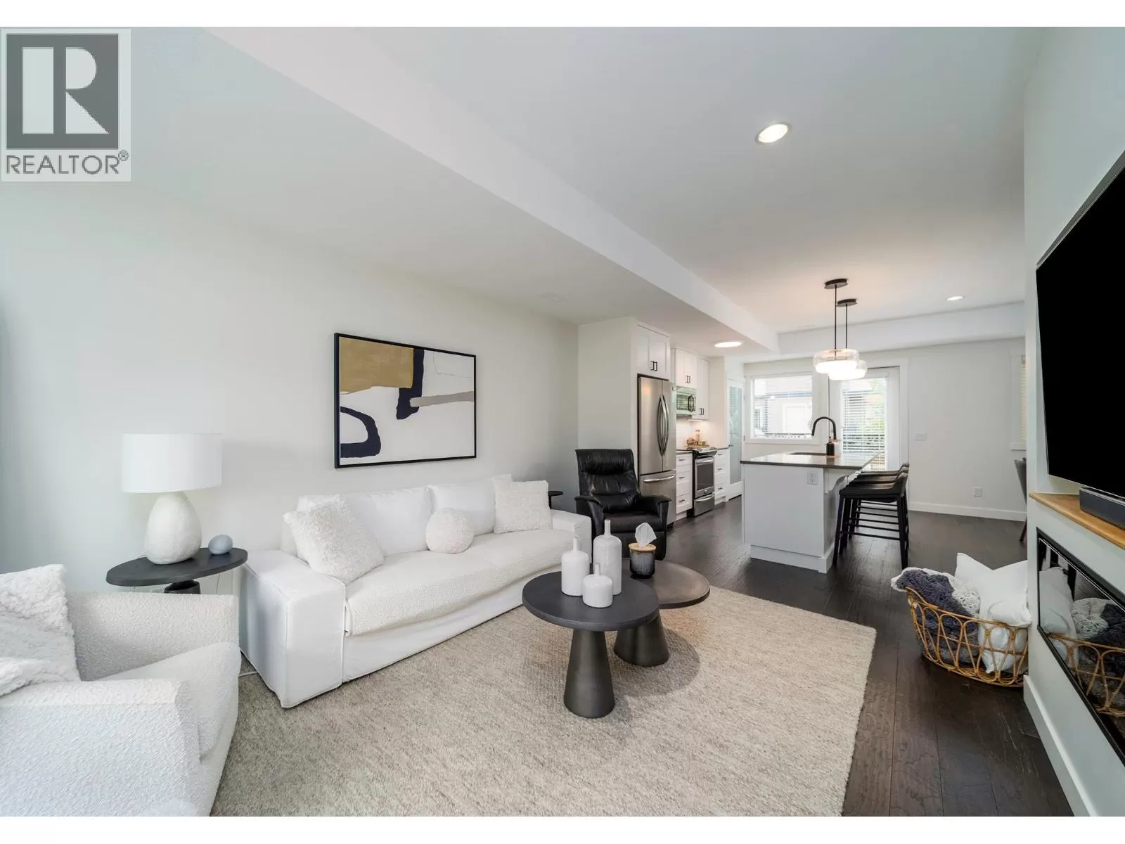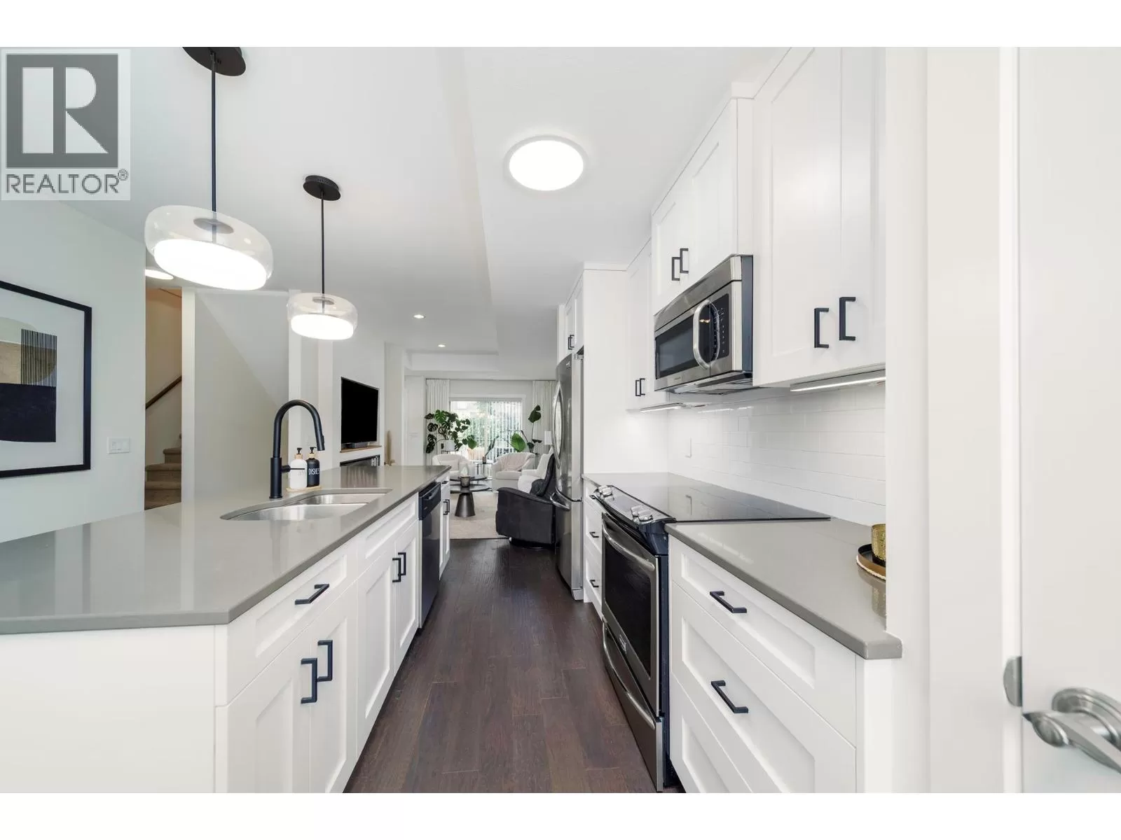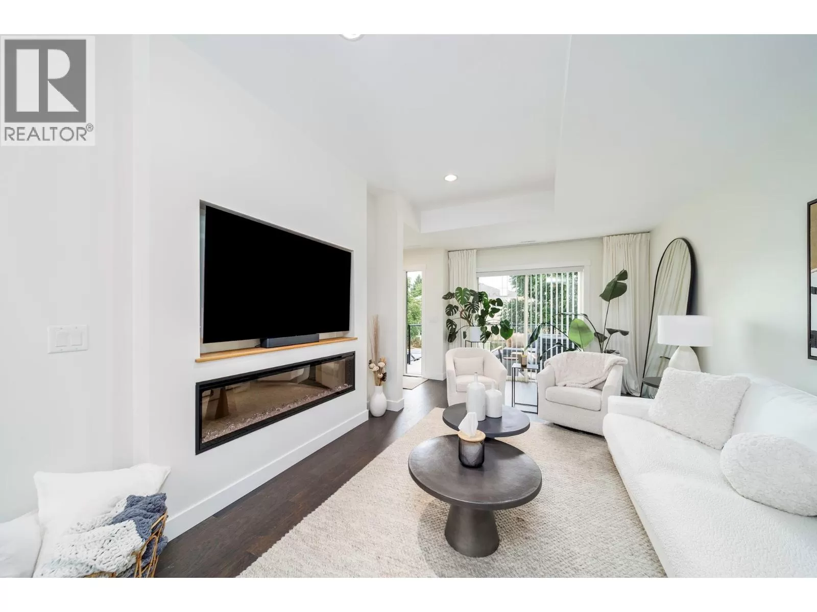 Looking for a showhome-level townhome? This immaculate Green Square residence exudes pride of ownership and shows like a showhome. Lightly lived in and perfectly maintained, it offers one of the best locations in this sought-after Lower Mission community. Featuring 3 bedrooms, 2.5 bathrooms, and open-concept living, this north-facing home blends modern luxury with everyday functionality. An elevated front patio with peaceful views welcomes you home. Inside, 9-foot ceilings on both levels and expansive windows fill the space with natural light. The chef-inspired kitchen boasts a large quartz island with seating for four, sleek cabinetry, and flows seamlessly into the dining area. The inviting living room, complete with a fireplace, opens directly to the front patio for effortless indoor-outdoor living. Upstairs, youâll find 3 bedrooms including a private primary retreat with spa-like ensuite. The tandem garage accommodates two vehicles plus a workshop/fitness area, while residents also enjoy a fully equipped community gym. Just a 5-minute walk to Boyce-Gyro Beach, steps to Casorso Elementary, and close to H2O Fitness Centre, Capital News Centre, and top schools. This pristine home truly checks every boxâdonât miss your chance to own in one of Kelownaâs most desirable neighborhoods! (id:27476)