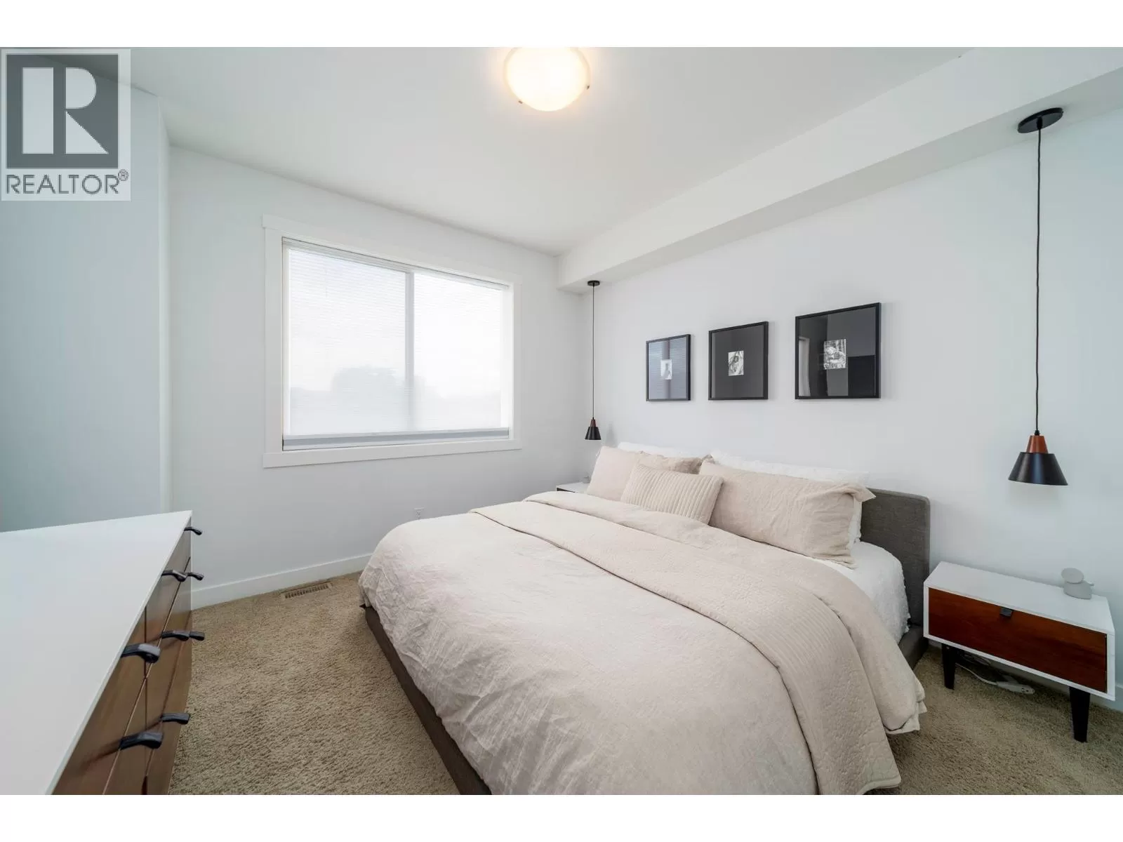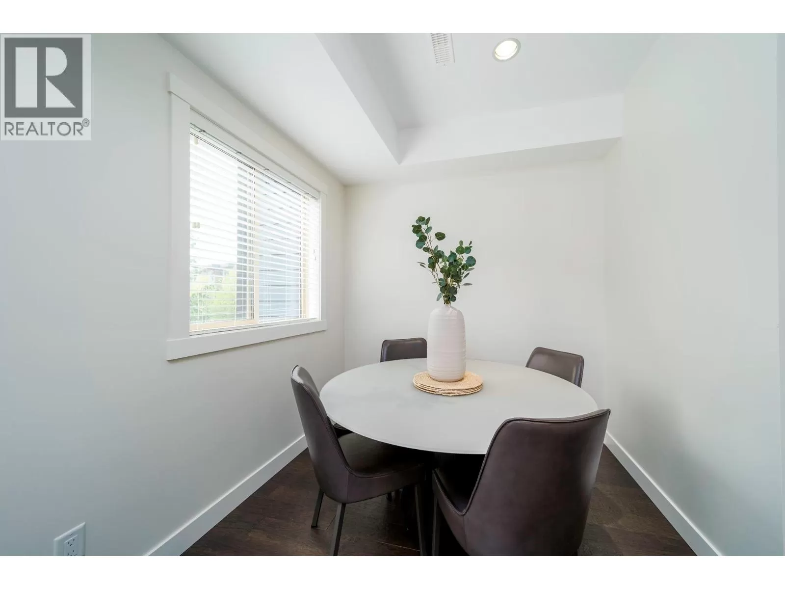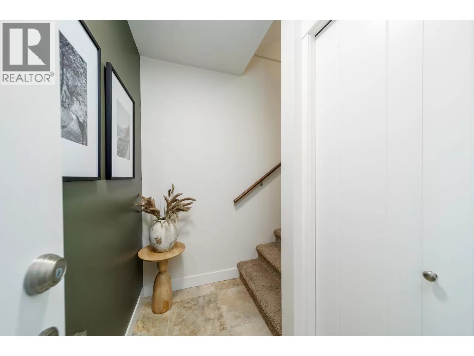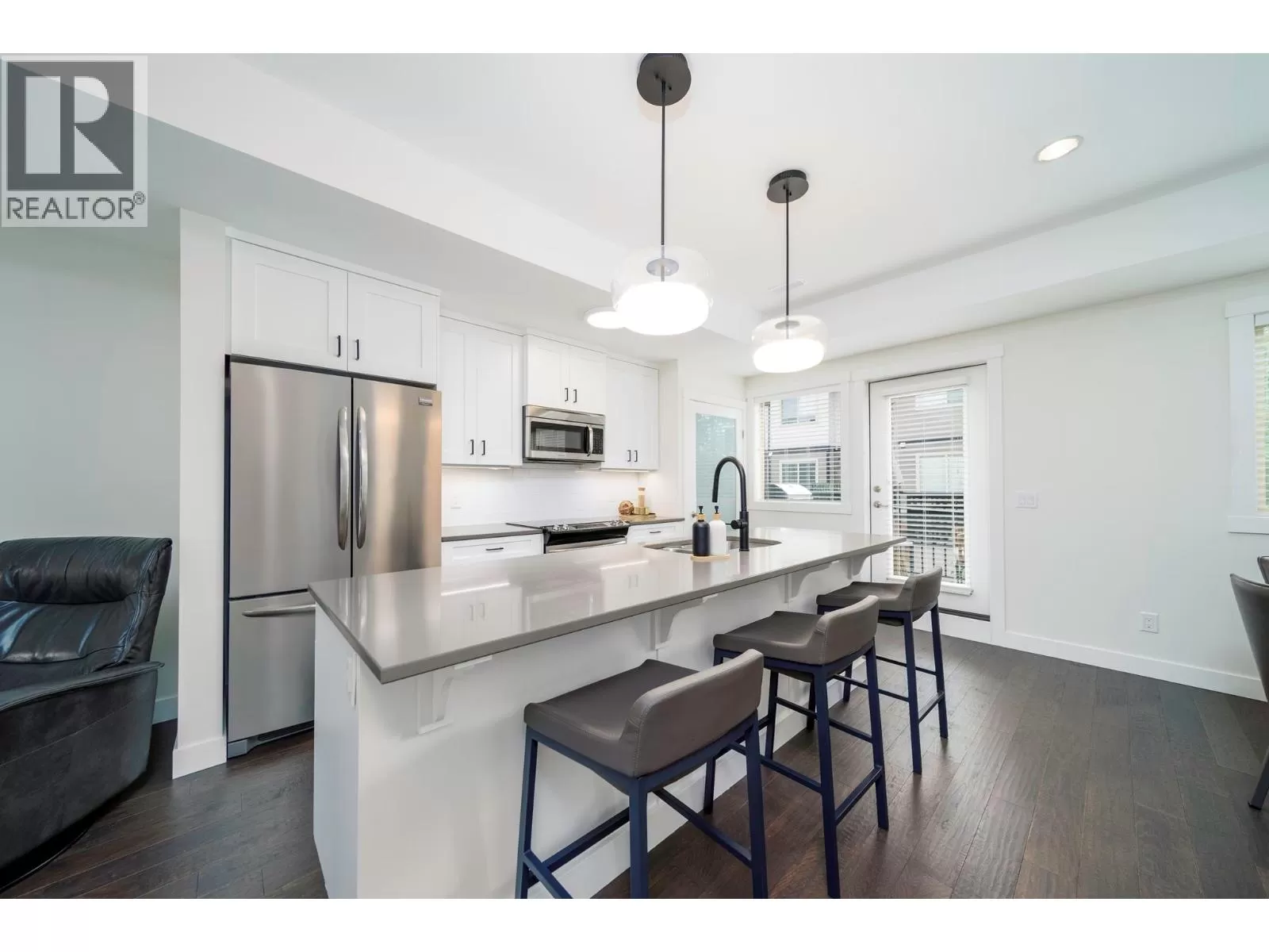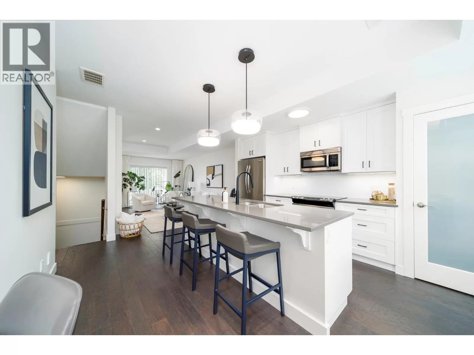 Looking for a showhome-level townhome? This immaculate Green Square residence exudes pride of ownership and shows like a showhome. Lightly lived in and perfectly maintained, it offers one of the best locations in this sought-after Lower Mission community. Featuring 3 bedrooms, 2.5 bathrooms, and open-concept living, this north-facing home blends modern luxury with everyday functionality. An elevated front patio with peaceful views welcomes you home. Inside, 9-foot ceilings on both levels and expansive windows fill the space with natural light. The chef-inspired kitchen boasts a large quartz island with seating for four, sleek cabinetry, and flows seamlessly into the dining area. The inviting living room, complete with a fireplace, opens directly to the front patio for effortless indoor-outdoor living. Upstairs, youâll find 3 bedrooms including a private primary retreat with spa-like ensuite. The tandem garage accommodates two vehicles plus a workshop/fitness area, while residents also enjoy a fully equipped community gym. Just a 5-minute walk to Boyce-Gyro Beach, steps to Casorso Elementary, and close to H2O Fitness Centre, Capital News Centre, and top schools. This pristine home truly checks every boxâdonât miss your chance to own in one of Kelownaâs most desirable neighborhoods! (id:27476)