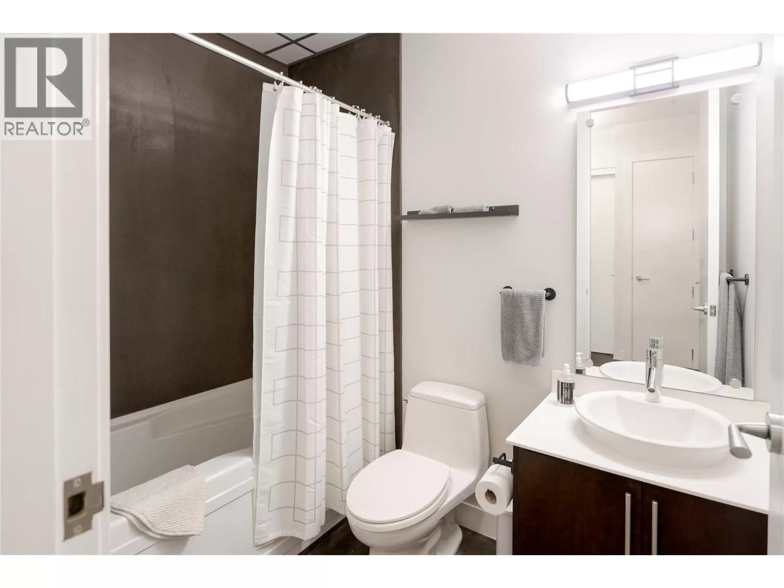 Experience elevated living in this 2-bedroom, 2-bathroom south-facing condo at Fuzionâwhere contemporary design meets resort-style amenities. Inside, the open-concept floor plan features high ceilings, rich hardwood flooring, and oversized windows that fill the home with natural light. The chefâs kitchen is equipped with stainless steel appliances, a built-in Miele coffee system, wine fridge, and a generous island thatâs perfect for entertaining. The primary suite includes a spa-inspired ensuite with a walk-in shower, while the second bedroom offers flexibility for guests, a home office, or hobbies. All carpet in the home has just been replaced, offering a fresh and move-in ready feel. Everyday living is enhanced by in-suite laundry and secured parking with an extra-wide stall. This is a concrete building, ensuring a much quieter living environment. Residents also enjoy access to an outdoor pool & hot tub, a fitness centre, sauna, car wash bay, and meeting room. Perfectly located near shopping, dining, and downtown Kelowna, this home blends sophistication with everyday convenience. (id:27476)