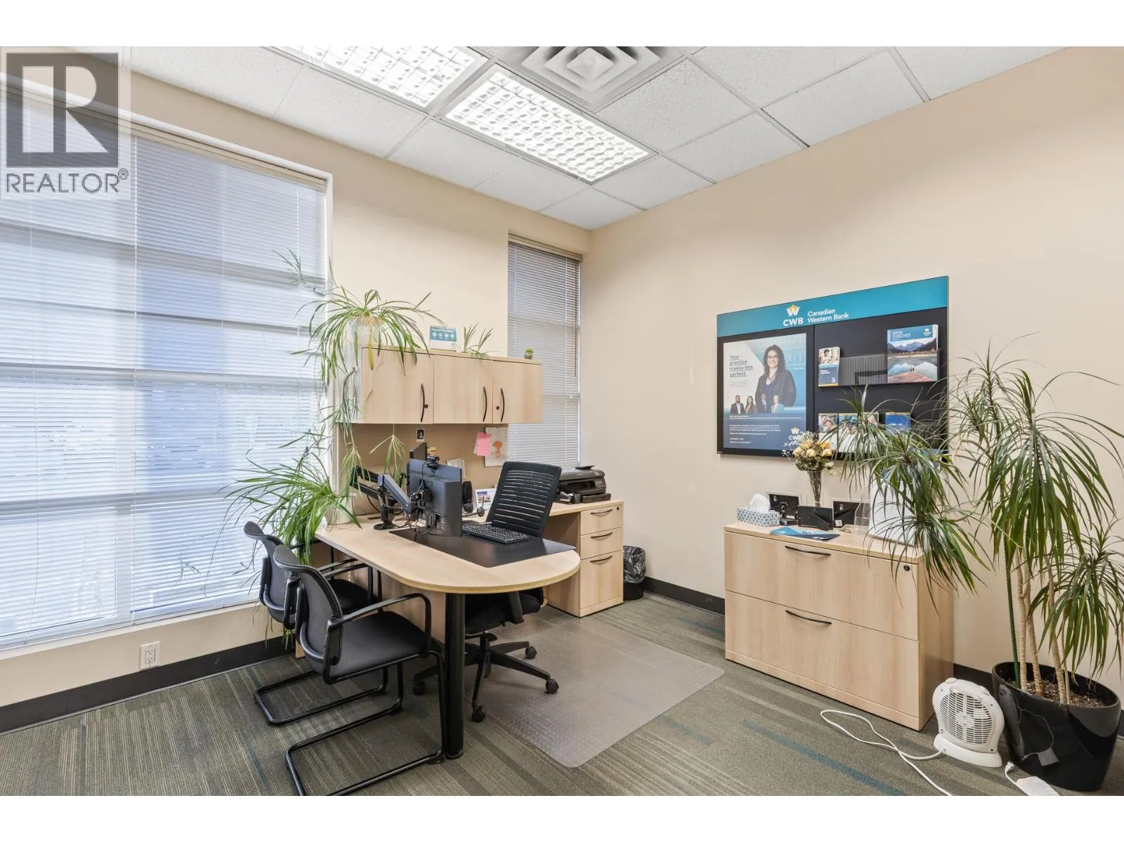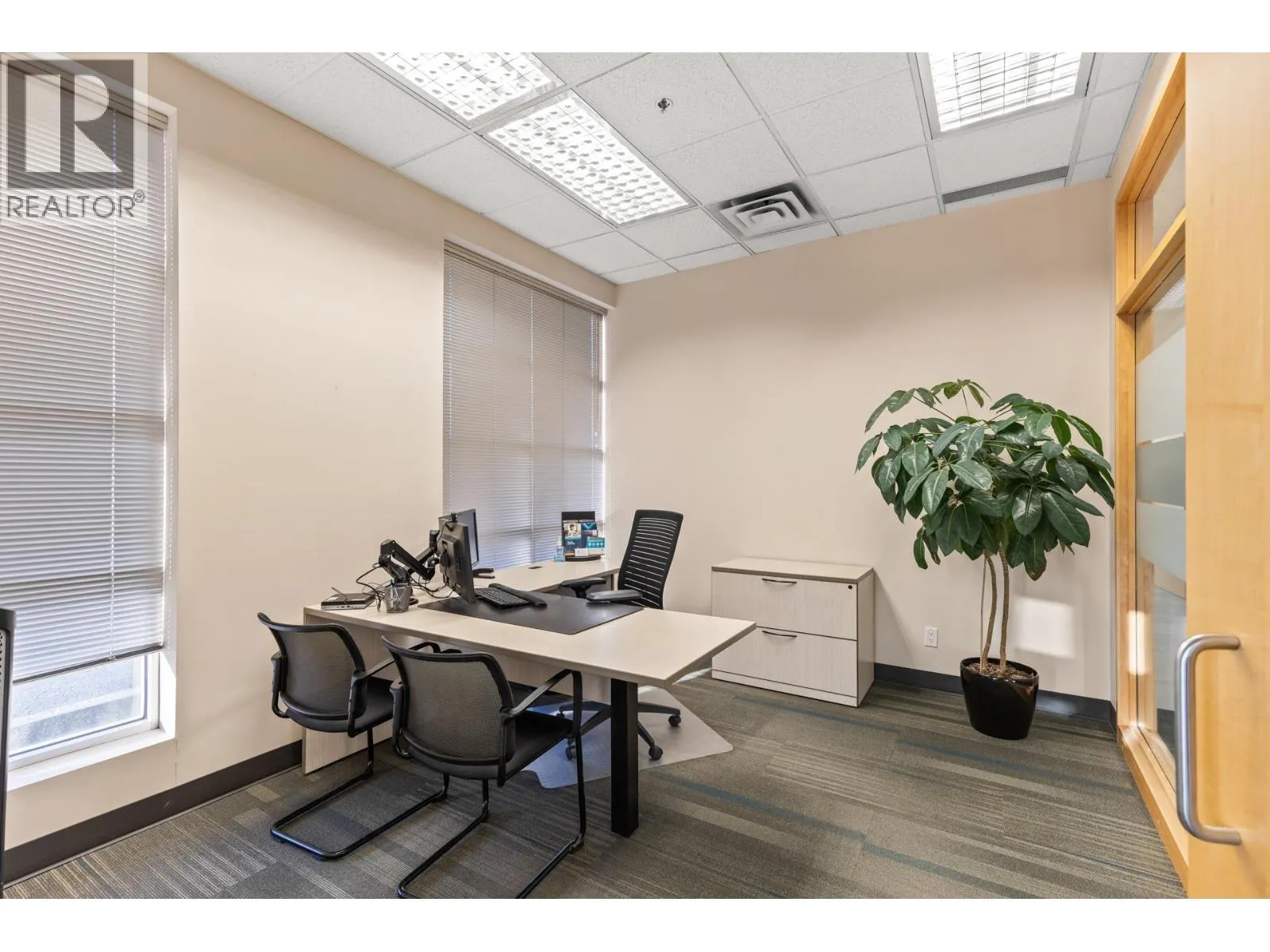 Opportunity to lease a ground level space in a high-profile professional office building in downtown Kelowna with various demising options available. Featuring 5,167 square feet of rentable area, this full floor premises is currently vacant, previously occupied by a bank and includes functional/quality improvements throughout, reception area, open work space, kitchenette, enclosed offices, dedicated boardroom and file/copy room. The building also has the rare offering of exterior signage, with exposure to both downtown and Highway 97. 15+ on site parking stalls available for the entire floor. (id:27476)