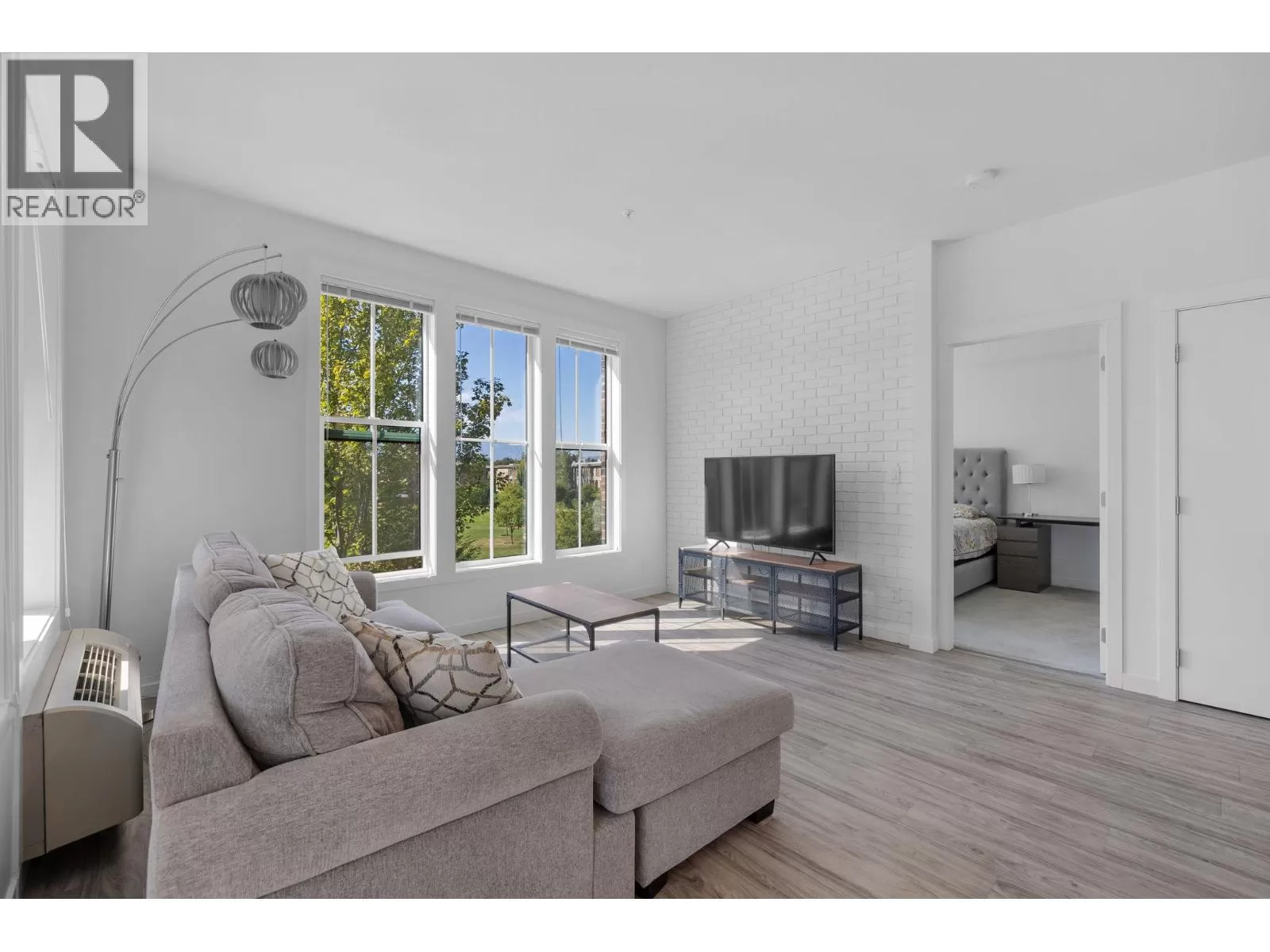 Welcome to this stunning 2-bedroom, 2-bath corner unit perfectly situated beside Rowcliffe Park in the heart of Kelowna. Designed with comfort and style in mind, this home offers a bright, open layout with oversized windows that flood the space with natural light. The living room seamlessly connects to the spacious kitchen, featuring sleek two-toned cabinetry, quartz countertops, a generous breakfast bar, and stainless steel appliances. Step outside to enjoy your own expansive outdoor living area, ideal for entertaining or simply taking in the beautiful mountain views. Inside, the primary bedroom provides plenty of closet space and a luxurious five-piece ensuite, while the second bedroom enjoys private access to a well-appointed bathroom with a walk-in shower, making it perfect for guests or family. Set within a vibrant 5-acre community, residents enjoy access to a dog park, walking track, and community gardens, all while being just a short walk or bike ride from beaches, shops, restaurants, and everything downtown Kelowna has to offer. One parking spaces are included, and pets are welcome, with no height restrictions for dogs. This home is the perfect blend of modern design, convenient location, and outdoor lifestyle. (id:27476)