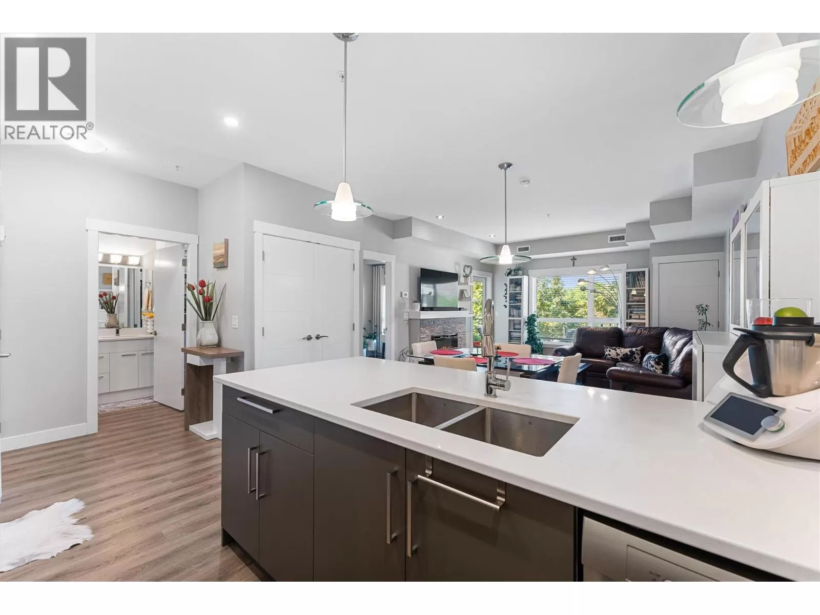 Just a 5-minute walk to the lake, this top-floor condo blends walkability, peace, and convenience in one of Kelownaâs most cherished neighborhoods. Perfectly positioned between the tranquil charm of the historic Abbott Street corridor and the vibrant energy of Bernard Avenue, youâll enjoy the best of both worlds - quiet tree-lined streets and quick access to restaurants, cafés, and the beach. This original-owner home is in pristine condition, filled with natural light and designed with an open-concept layout that separates bedrooms for added privacy. The spacious patio provides a peaceful view of mature greenery and partial glimpses of Okanagan Lake, perfect for morning coffee or evening wine. Inside, features include a highly energy-efficient Magic-Pak HVAC system, on-demand hot water, LED lighting, heated floors in the primary ensuite, and quality finishes throughout. The SmartKlosets system empowers you to reconfigure in countless ways all the shelves and drawers in the closets and kitchen pantry. Enjoy two secure underground parking stalls, plenty of street parking for guests, and premium building amenities including a gym, guest suite, and common patio. Pet-friendly (with restrictions) for up to two cats or two small dogs (14 inches at the shoulder). This well-managed building offers refined urban living; quiet, convenient, and steps from everything that makes Kelowna special. (id:27476)