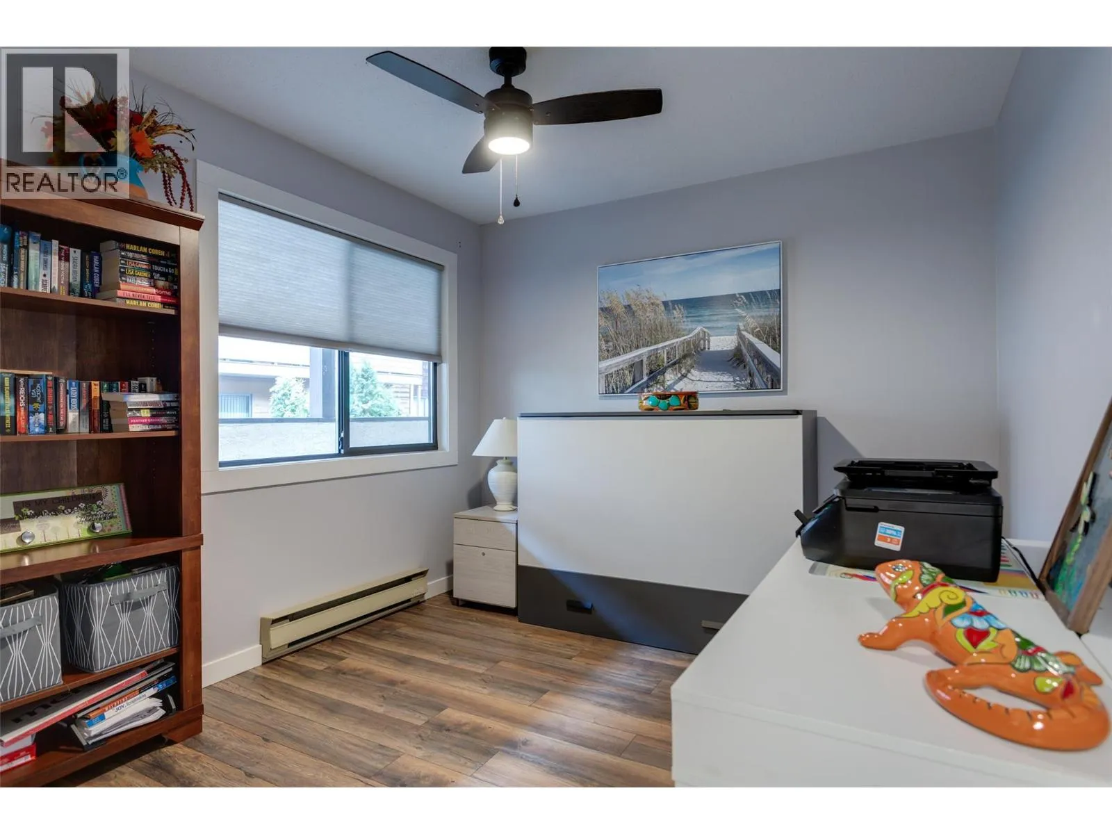 This charming 1006 sq. ft. 2-bedroom, 1-bath condo is in a centrally located 55+ building, ideal for active adults seeking a vibrant community. The smart layout makes the most of the space, blending functionality with comfort. Enjoy recently updated appliances and cabinetry that add both style and practicality to your cooking adventures. The kitchen opens to a spacious living room, creating a warm, connected space for family gatherings or entertaining. With new flooring and fresh paint throughout, itâs truly move-in ready. The primary bedroom features a walk-through closet with direct bathroom access for extra convenience and privacy. Outside, youâll find beautiful green space with a creekâperfect for soaking up sunny Okanagan days. Perks include secure underground parking, two storage lockers (one in the parkade and one right by the unitâs entrance), and exterior-facing corridors for fresh air. Plus, youâre just a short stroll to all amenities, including Capri Centre Mall with its great shopping and dining options. (id:27476)