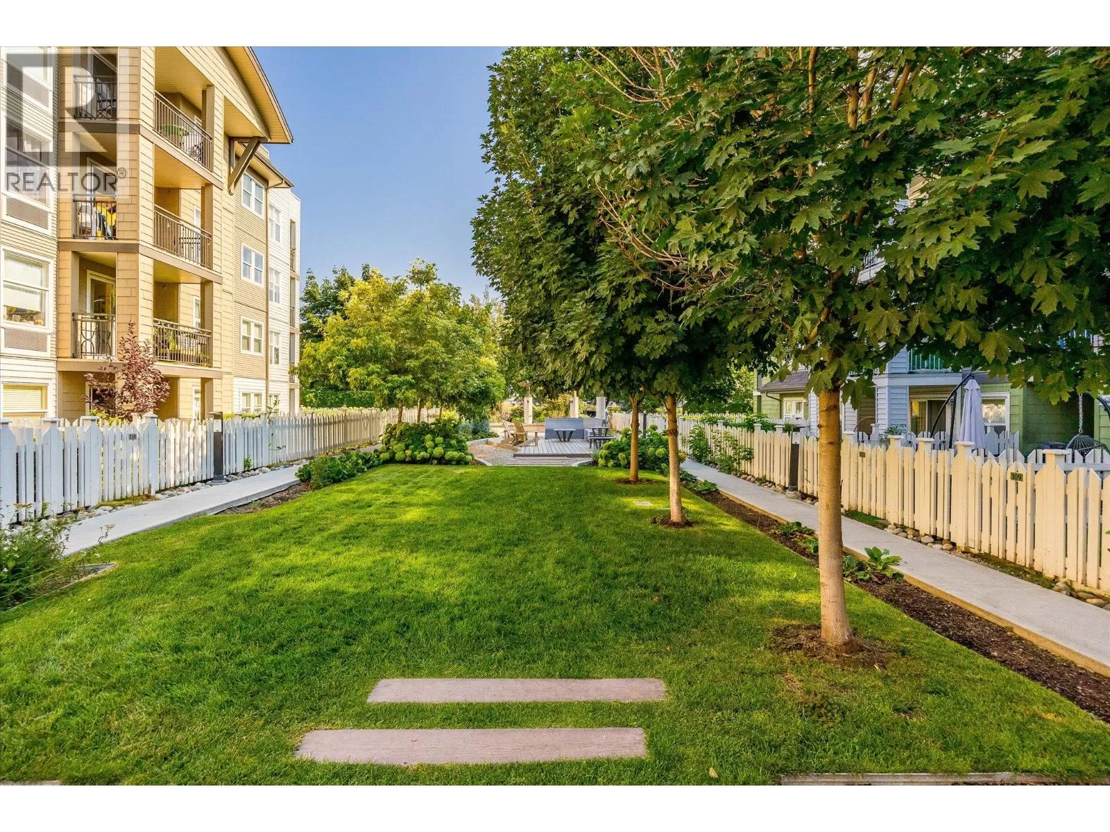 Welcome to The Verve, where convenience, comfort, and lifestyle come together in this ground-floor condo with quick possession available. Offering 1 bedroom and 1 bathroom, this home provides the rare advantage of a fully fenced yard with lush green grass and a partially covered patio, creating an extension of your living space that is perfect for pets or entertaining. Inside, youâll find updated carpeting in the bedroom, in a bright and functional floor plan with a fresh coat of paint that flows seamlessly into the living and dining area, and large windows that fill the space with natural light. Located in the highly sought-after Glenmore neighbourhood, youâll be surrounded by everyday conveniences; grocery stores, shopping, dining, parks, fitness facilities, schools, and public transit are all within walking distance, while downtown Kelowna, UBCO, and the lake are just minutes away, making this location ideal for professionals, students, or those who want to be close to the heart of the city. The Verve is one of Kelownaâs most popular condo communities, known for its resort-style amenities designed to take full advantage of the Okanagan lifestyle, including a large kidney-shaped outdoor pool, a full-sized beach volleyball court, and a communal cookout space with multiple gas BBQs perfect for hosting gatherings with friends and family. This building is both rental- and family-friendly, making it a smart option for investors as well as homeowners, and its generous pet policy allows up to 2 cats or 2 dogs (each up to 40 lbs) or 1 larger dog up to 80 lbs. Additional features include one secure underground parking stall and a private storage locker for your seasonal or extra belongings. Whether you are a first-time buyer eager to get into the Kelowna market, someone looking to downsize into a lock-and-leave property, or an investor seeking a desirable unit in a well-managed complex, this home offers incredible value and versatility. (id:27476)