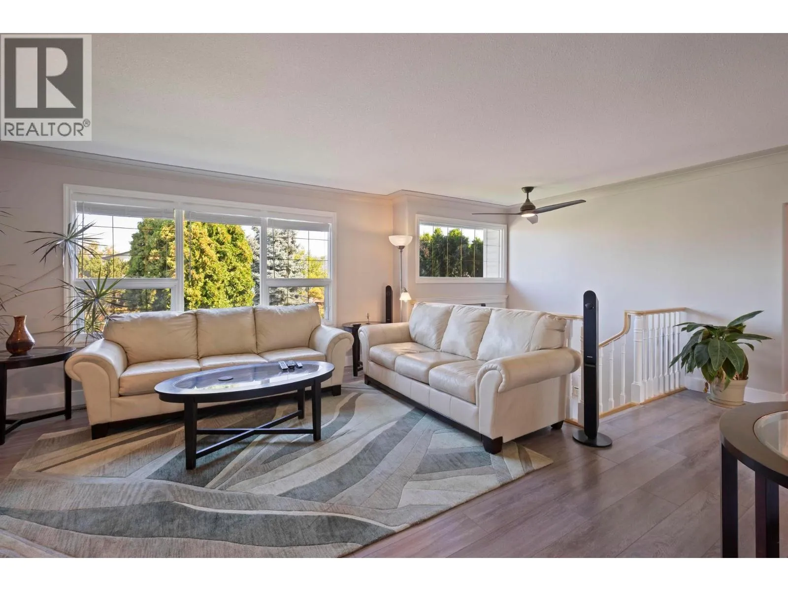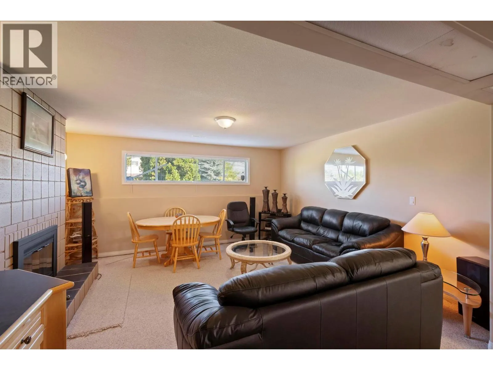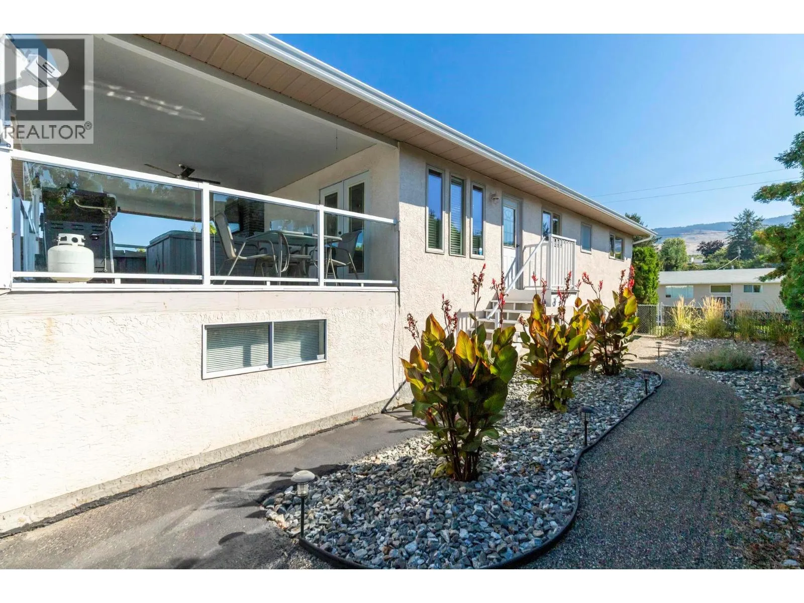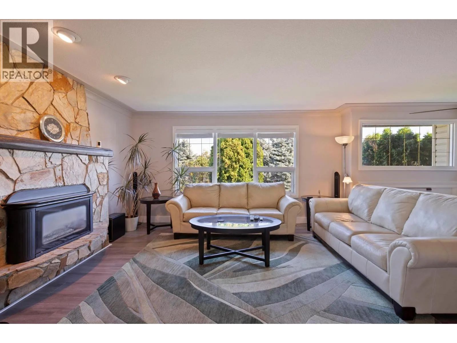 This beautifully maintained home on the Rutland Bench offers 2,190 sqft of versatile living space with a neutral color scheme throughout. The bright main level features large windows, a stone-surround gas fireplace, and an inviting kitchen with updated appliances, built-in pantry, ample counter space, and dine-up bar seating. The dining room opens to a spacious covered deck with hot tub, overlooking the landscaped yard with views of the mountains and city lights below, a perfect place for relaxing and entertaining. Three bedrooms on the main floor, including the primary with access to the main bathroom featuring a shower/tub combo with glass doors and extra vanity area. The lower level offers a generous rec room with cozy wood fireplace, laundry, an additional bedroom, 3-piece bath, and storage room. You also have a single car garage with workshop space, plus a large driveway with plenty of room for an RV and boat! Recent updates include a new roof (2023), newer laminate flooring upstairs, and updated appliances. With great functionality, thoughtful updates, and even the option of included furnishings, this home is move-in ready! (id:27476)