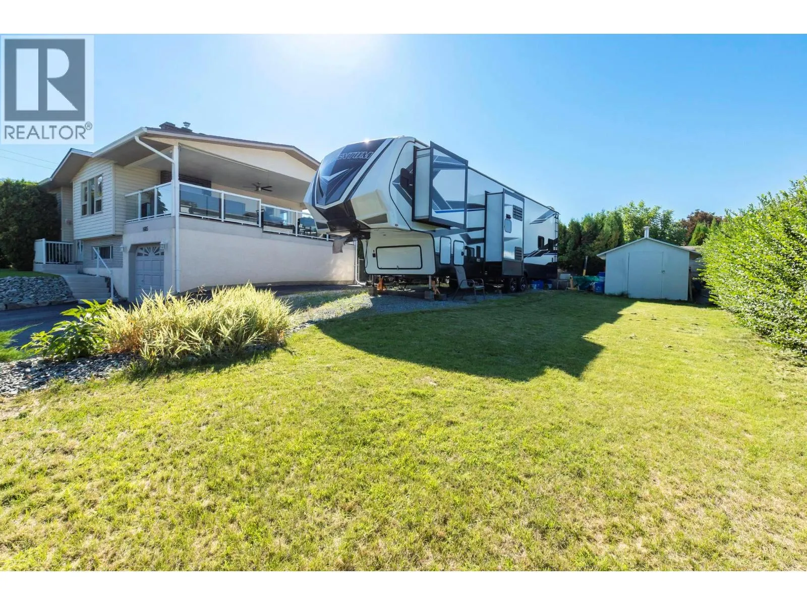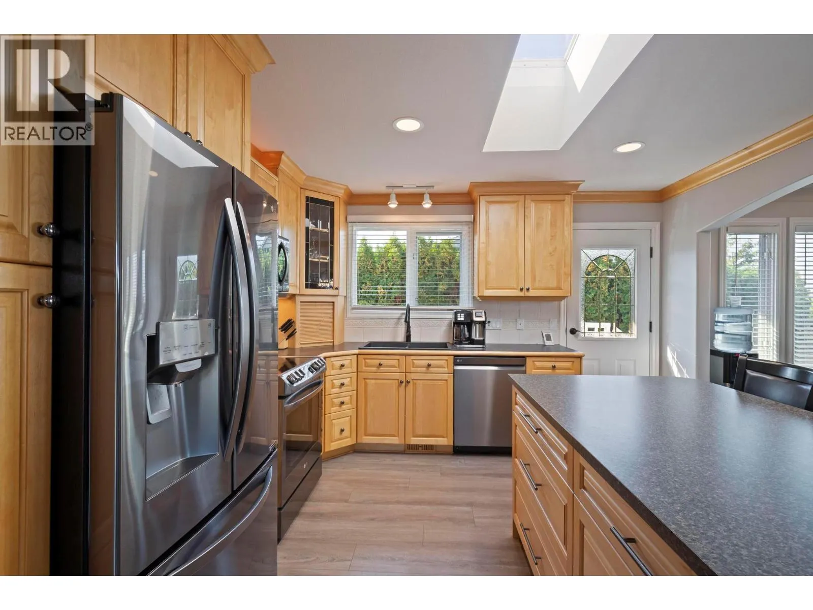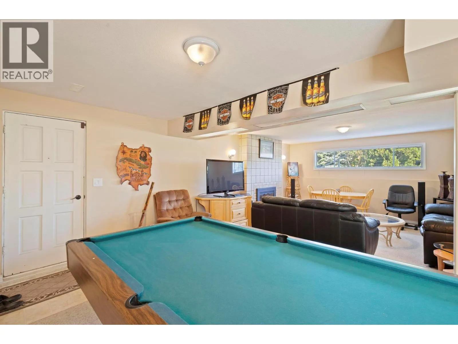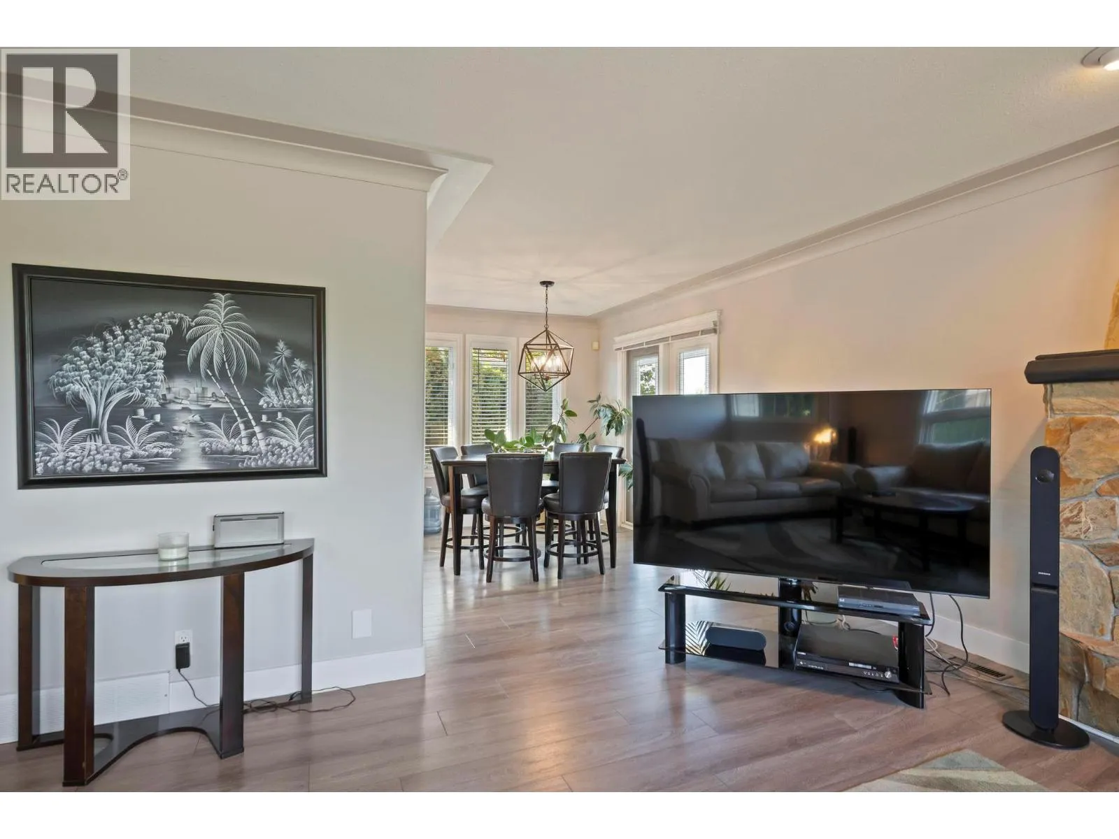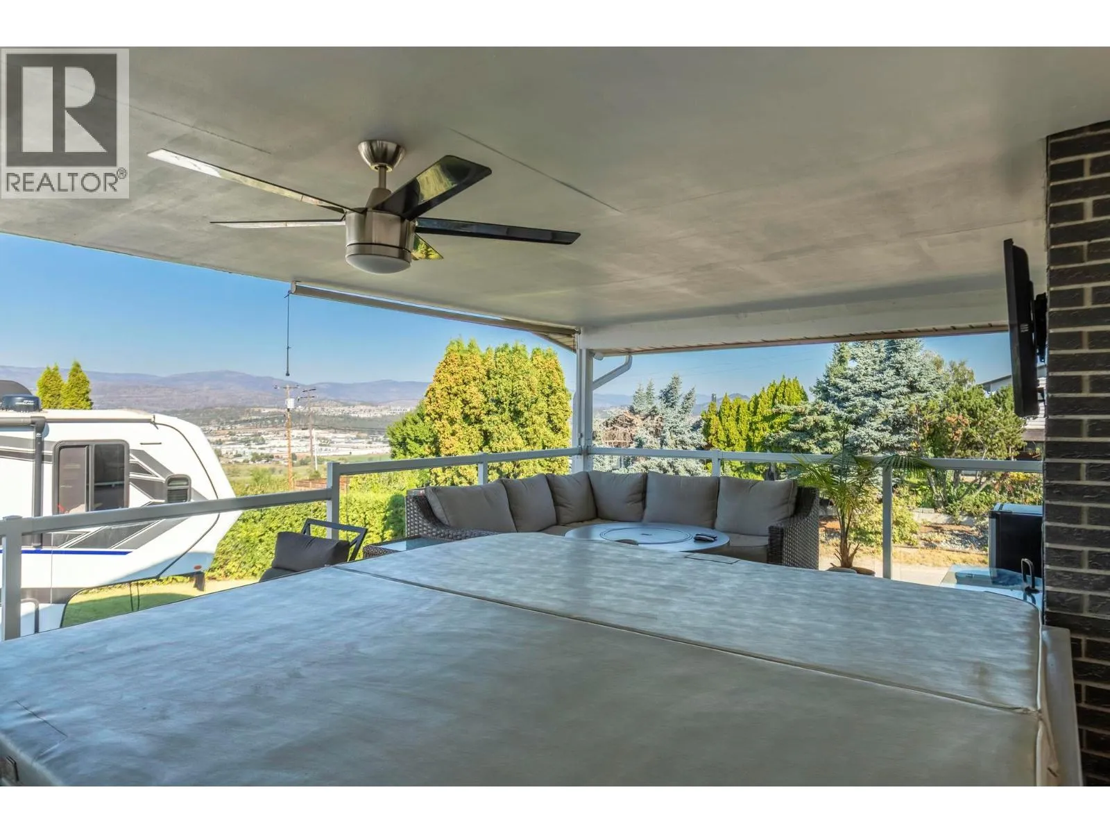 This beautifully maintained home on the Rutland Bench offers 2,190 sqft of versatile living space with a neutral color scheme throughout. The bright main level features large windows, a stone-surround gas fireplace, and an inviting kitchen with updated appliances, built-in pantry, ample counter space, and dine-up bar seating. The dining room opens to a spacious covered deck with hot tub, overlooking the landscaped yard with views of the mountains and city lights below, a perfect place for relaxing and entertaining. Three bedrooms on the main floor, including the primary with access to the main bathroom featuring a shower/tub combo with glass doors and extra vanity area. The lower level offers a generous rec room with cozy wood fireplace, laundry, an additional bedroom, 3-piece bath, and storage room. You also have a single car garage with workshop space, plus a large driveway with plenty of room for an RV and boat! Recent updates include a new roof (2023), newer laminate flooring upstairs, and updated appliances. With great functionality, thoughtful updates, and even the option of included furnishings, this home is move-in ready! (id:27476)
