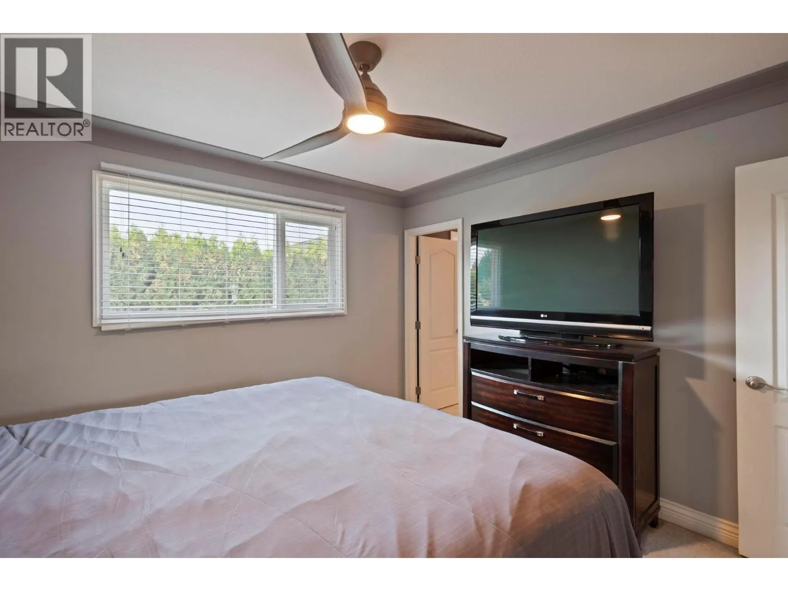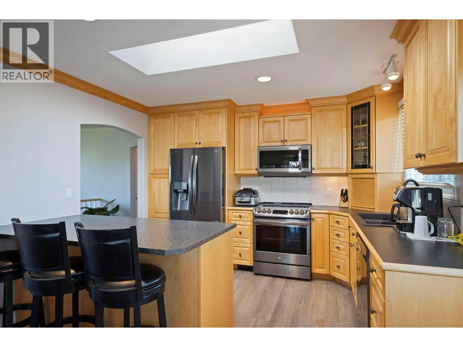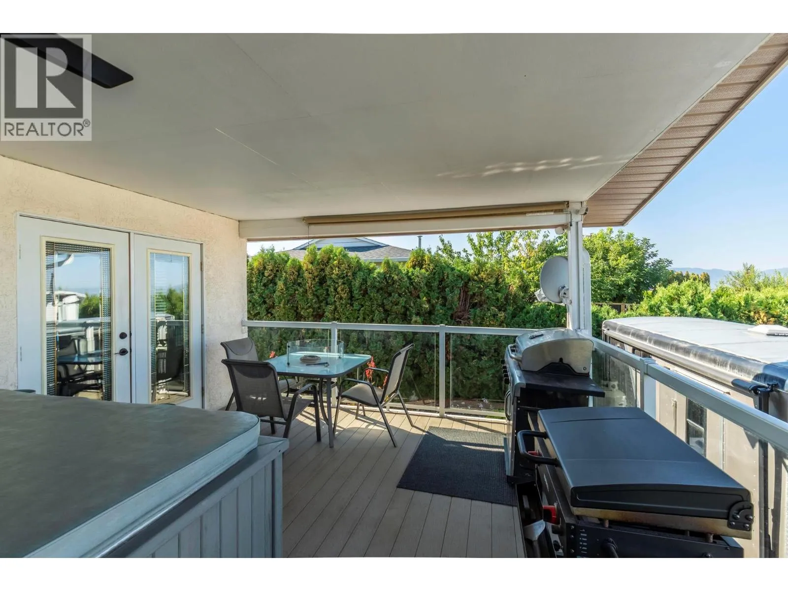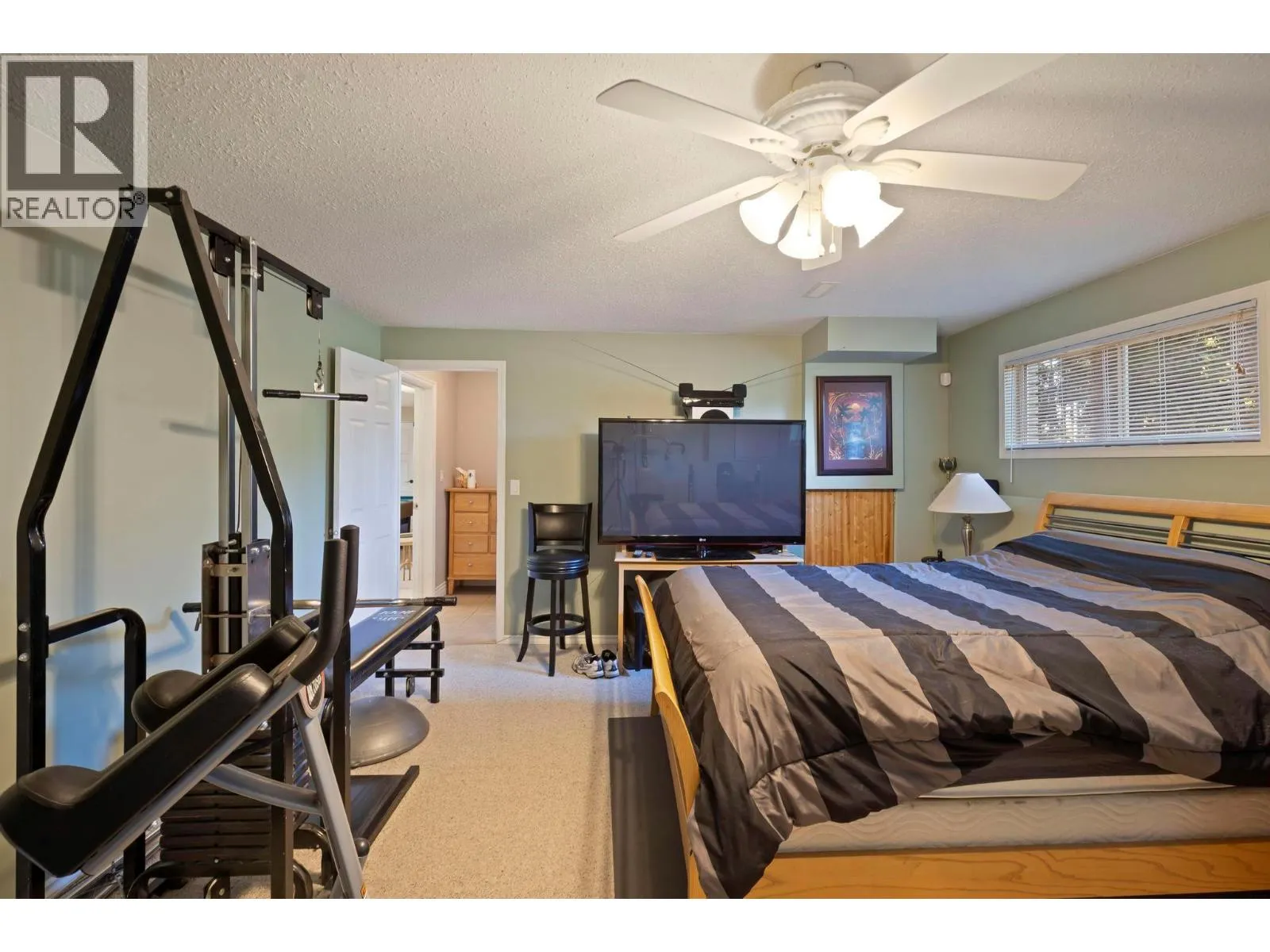 This beautifully maintained home on the Rutland Bench offers 2,190 sqft of versatile living space with a neutral color scheme throughout. The bright main level features large windows, a stone-surround gas fireplace, and an inviting kitchen with updated appliances, built-in pantry, ample counter space, and dine-up bar seating. The dining room opens to a spacious covered deck with hot tub, overlooking the landscaped yard with views of the mountains and city lights below, a perfect place for relaxing and entertaining. Three bedrooms on the main floor, including the primary with access to the main bathroom featuring a shower/tub combo with glass doors and extra vanity area. The lower level offers a generous rec room with cozy wood fireplace, laundry, an additional bedroom, 3-piece bath, and storage room. You also have a single car garage with workshop space, plus a large driveway with plenty of room for an RV and boat! Recent updates include a new roof (2023), newer laminate flooring upstairs, and updated appliances. With great functionality, thoughtful updates, and even the option of included furnishings, this home is move-in ready! (id:27476)