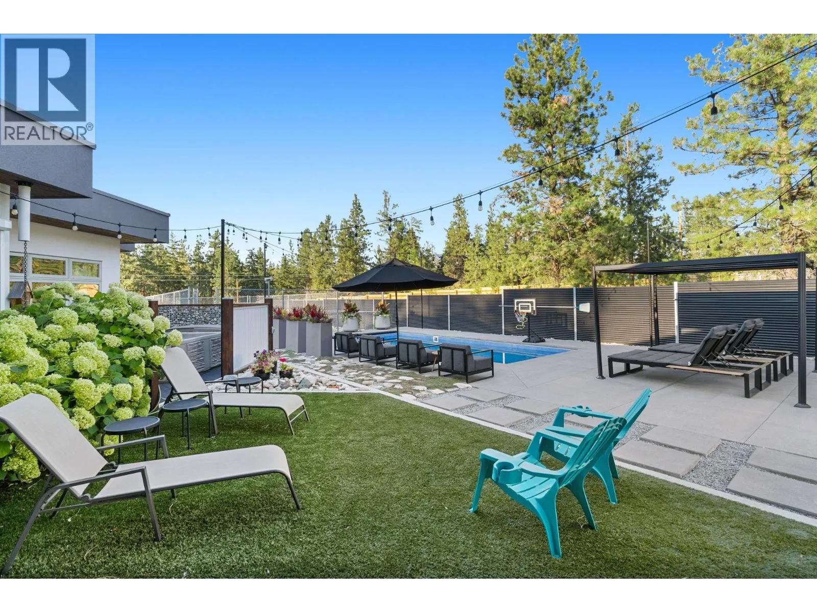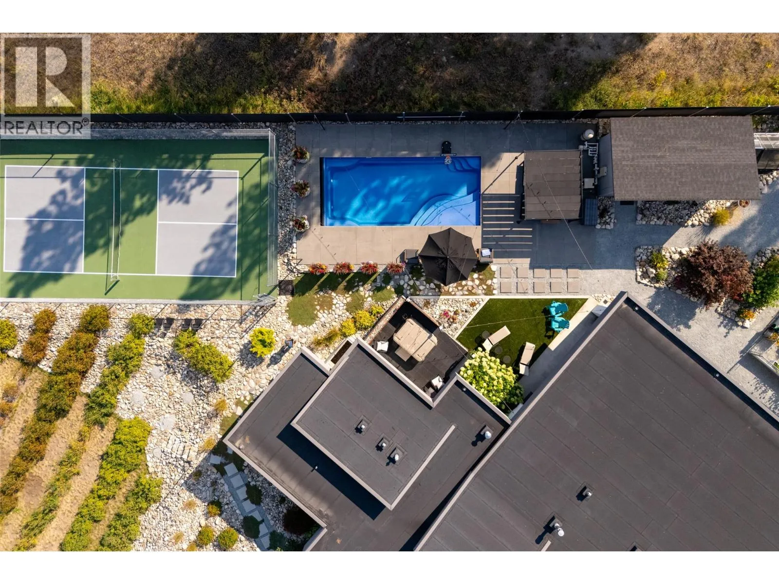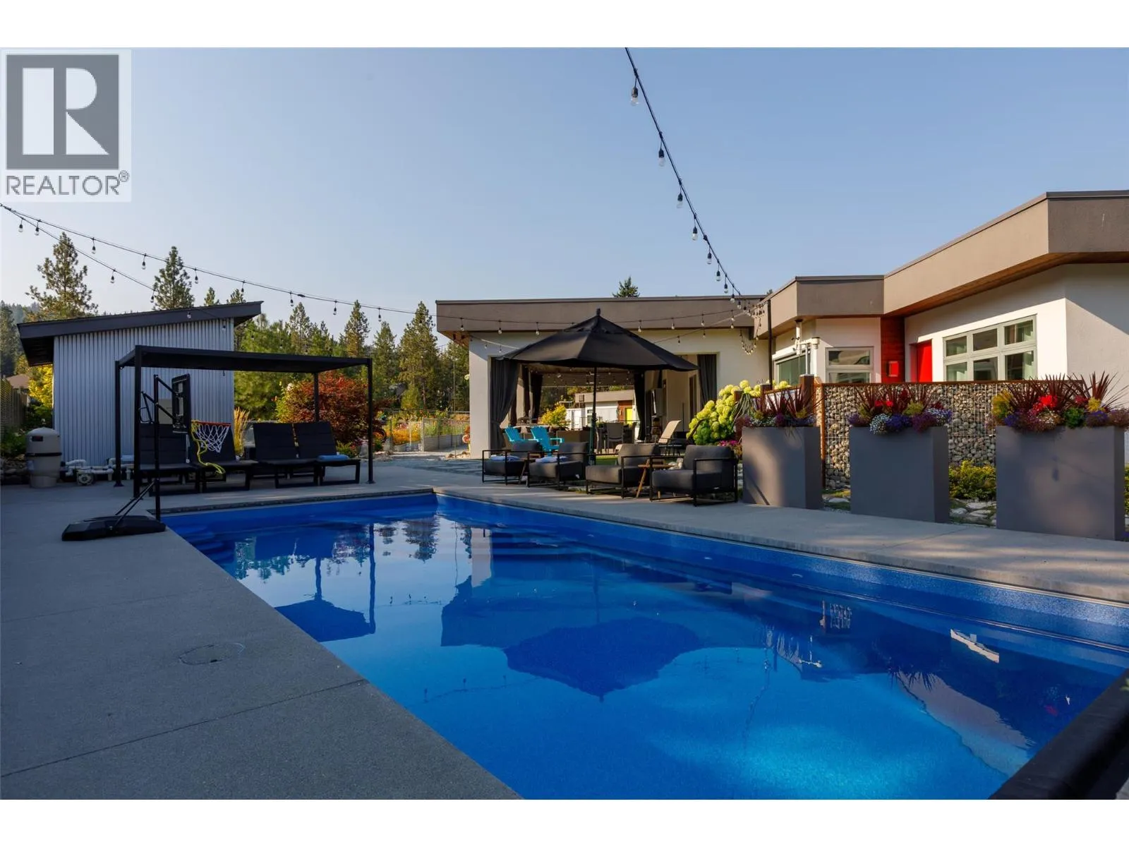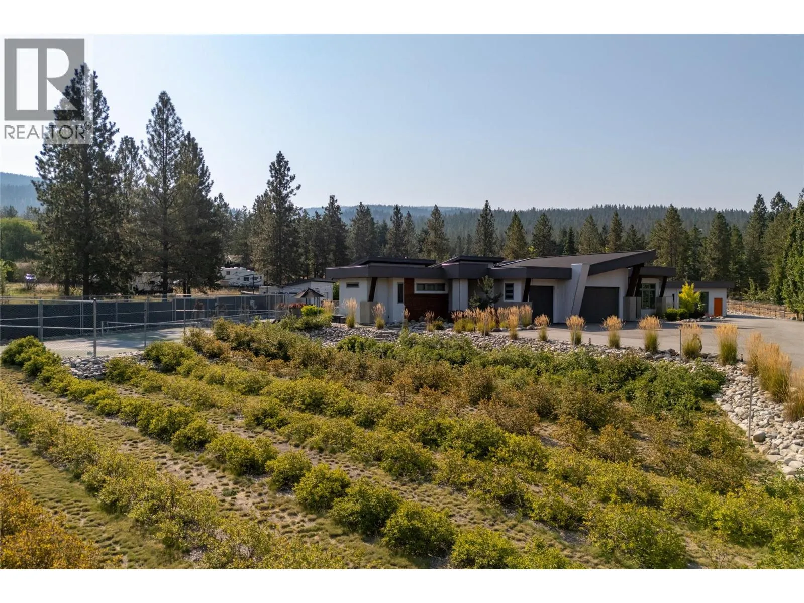 Looking for a premier Southeast Kelowna estate? This estate home rests on 2.47-acre zoned RR1- not ALR- and offers a luxury resort lifestyle! Multiple residences, detached shop, a swimming pool and pickleball court are at your fingertips while you're surrounded by an organic honeyberry /haskap farming crop that you can find in the vibrant Okanagan farm-to-table community. Minutes from Gallaghers Golf Club, this estate offers lifestyle, potential income, and long-term potential. The custom rancher features two separate self-contained residences each with own formal entries, ideal for multigenerational families or income generation. This free flowing floorplan links the main 4-bedroom home with full basement to the legal 1-bedroom suiteâeach finished with polished concrete floors, bamboo cabinetry and premier appliances. Both overlook the resort inspired backyard anchored by elaborate outdoor covered patio / kitchen facing swimming pool fun! Perfect for seamless indoor-outdoor living. An additional detached shop features ample storage, walk-in refrigeration storage, and in-law 1 bed 1 bath office space. Clean architectural lines, abundant natural light, and exceptional craftsmanship define the homeâs airy, modern aesthetic. Non-ALR zoning opens doors for future development potential, making this a rare offering for discerning buyers, boutique farmers, or those seeking upscale rural living with a sustainable twist. Come see this exceptional resort style property! (id:27476)